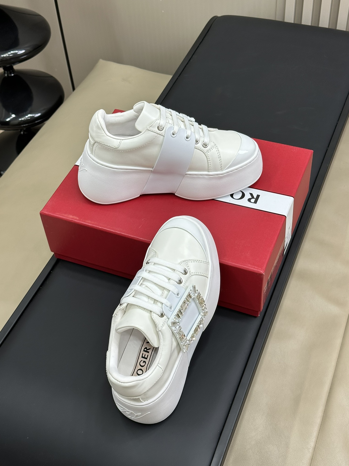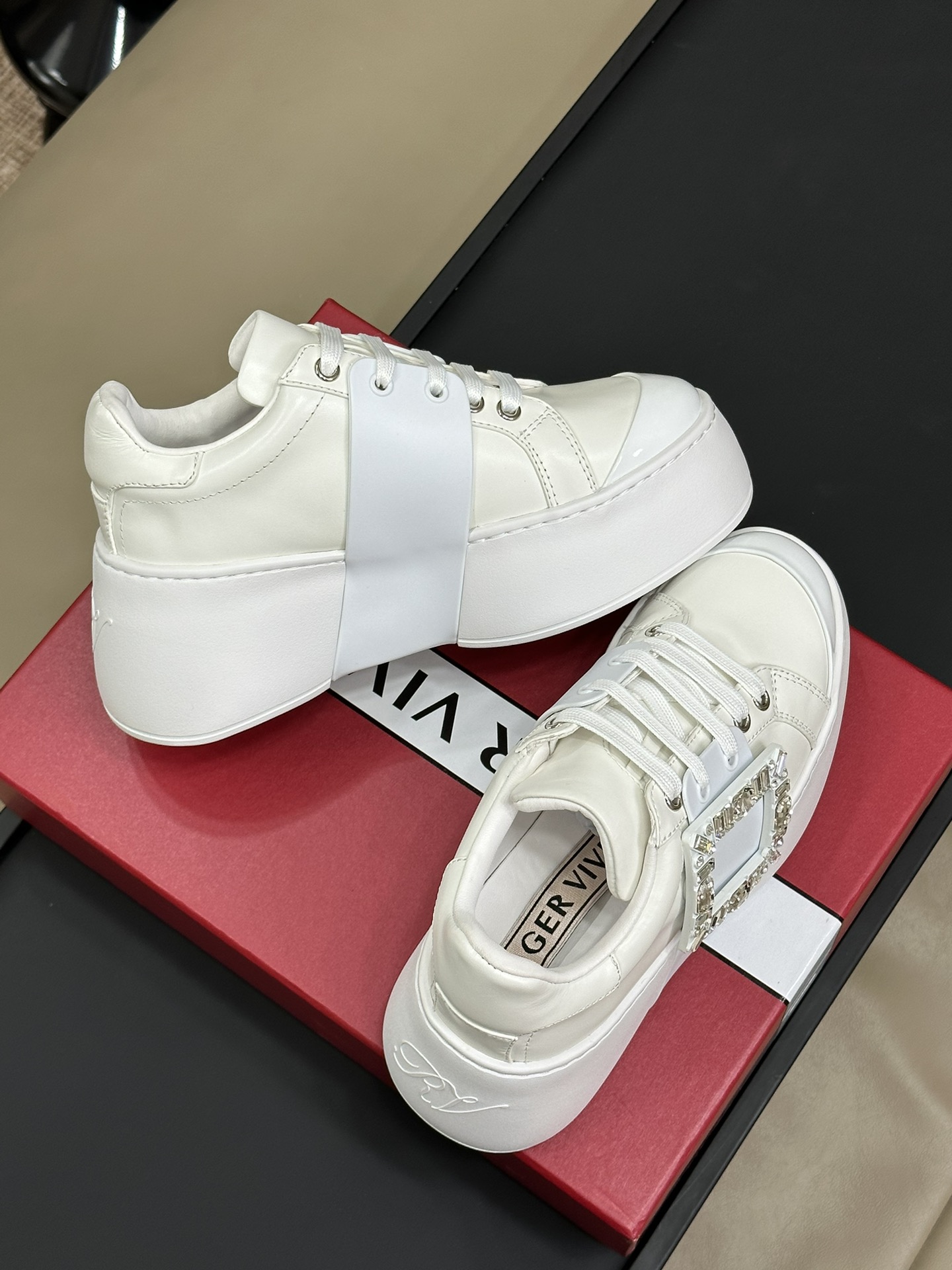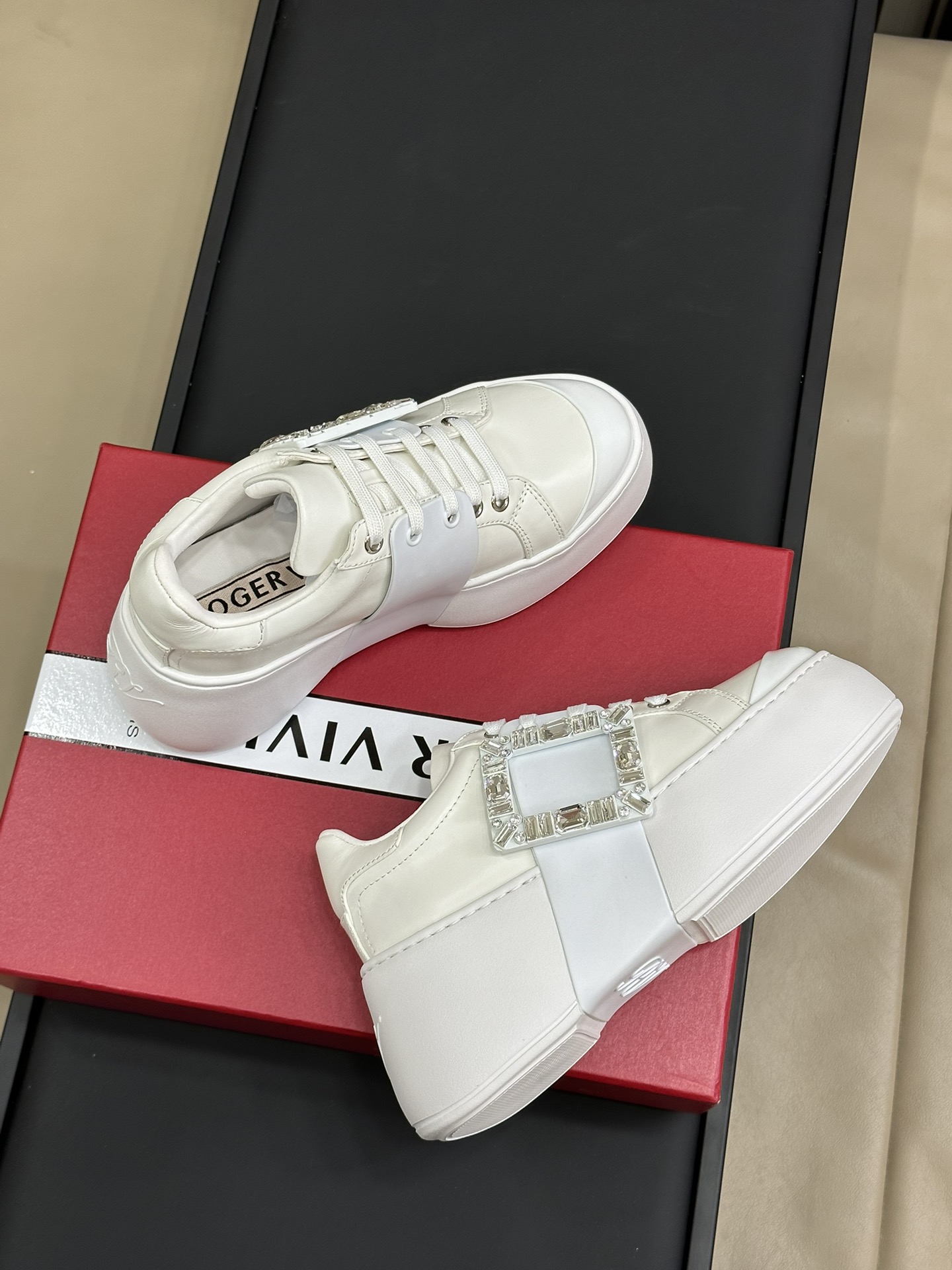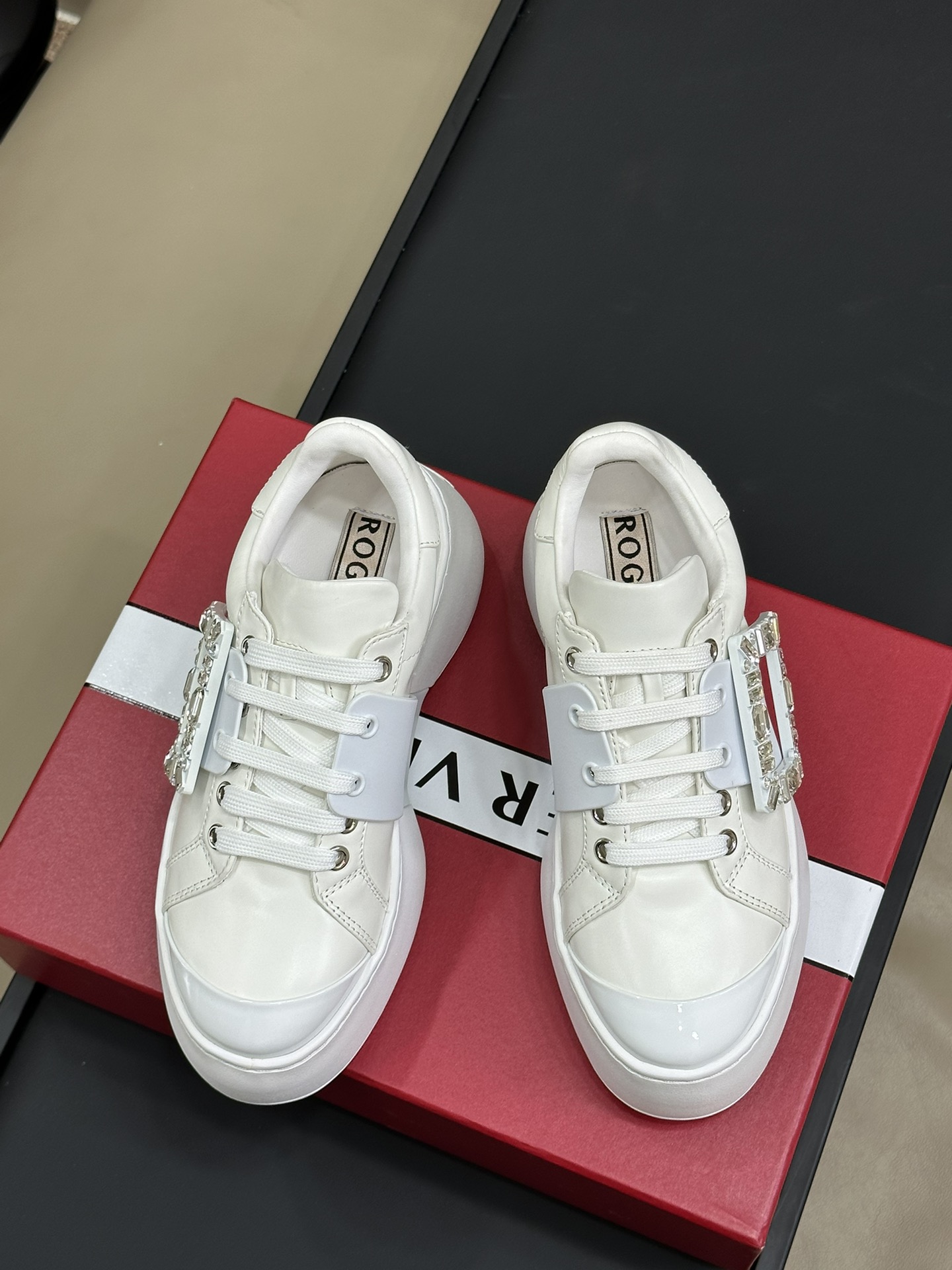 这款鞋子是AAAAA 1:1 质量 (非常棒). 使用了和原版一模一样的材料. 商标部分也保持了和罗杰维维耶/Roger Vivier一样. 图片拍摄是实物鞋子拍摄, 您所收到的实物保证和我们图片一模一样.