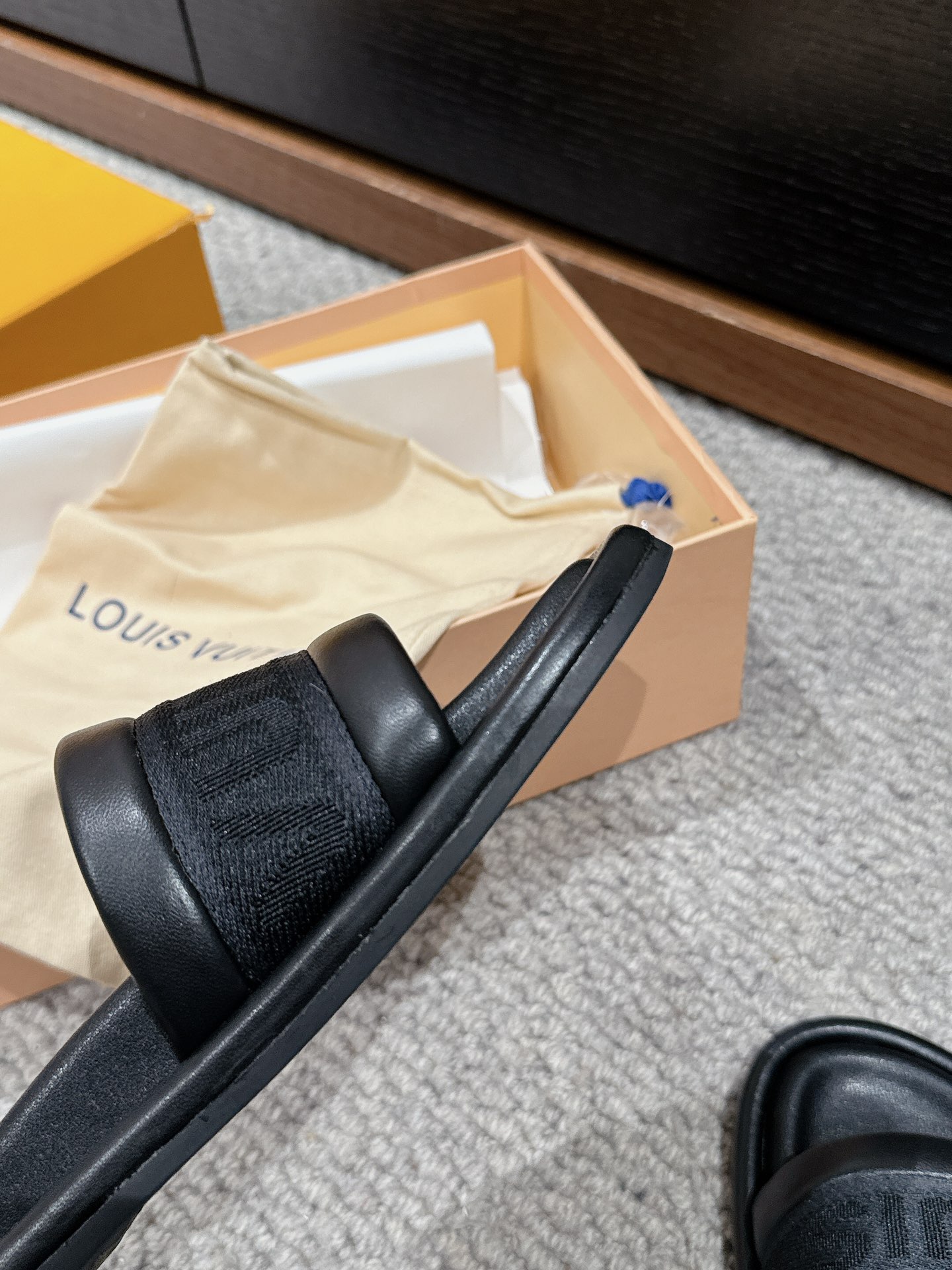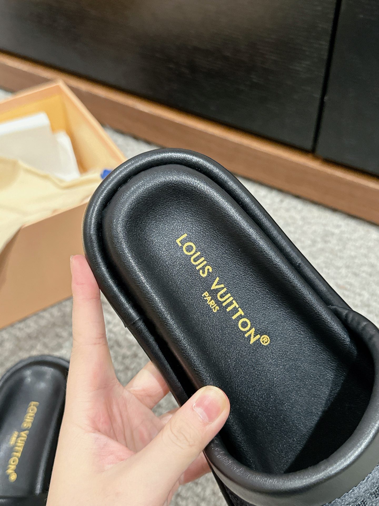 这款鞋子是AAAAA 1:1 质量 (非常棒). 使用了和原版一模一样的材料. 商标部分也保持了和路易威登/Louis Vuitton一样. 图片拍摄是实物鞋子拍摄, 您所收到的实物保证和我们图片一模一样.
