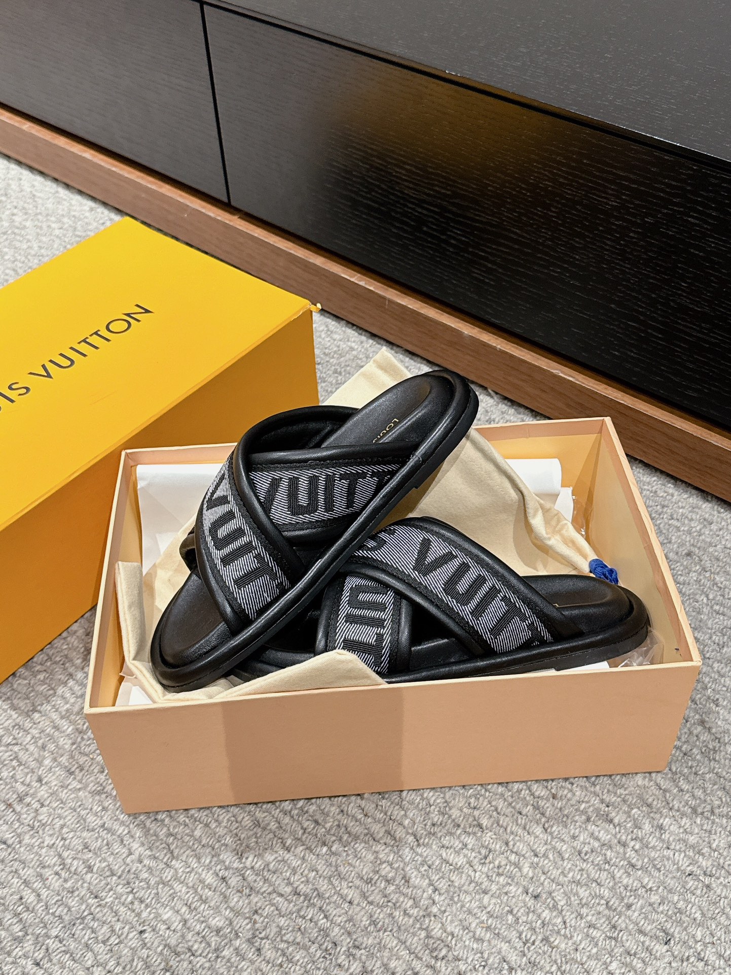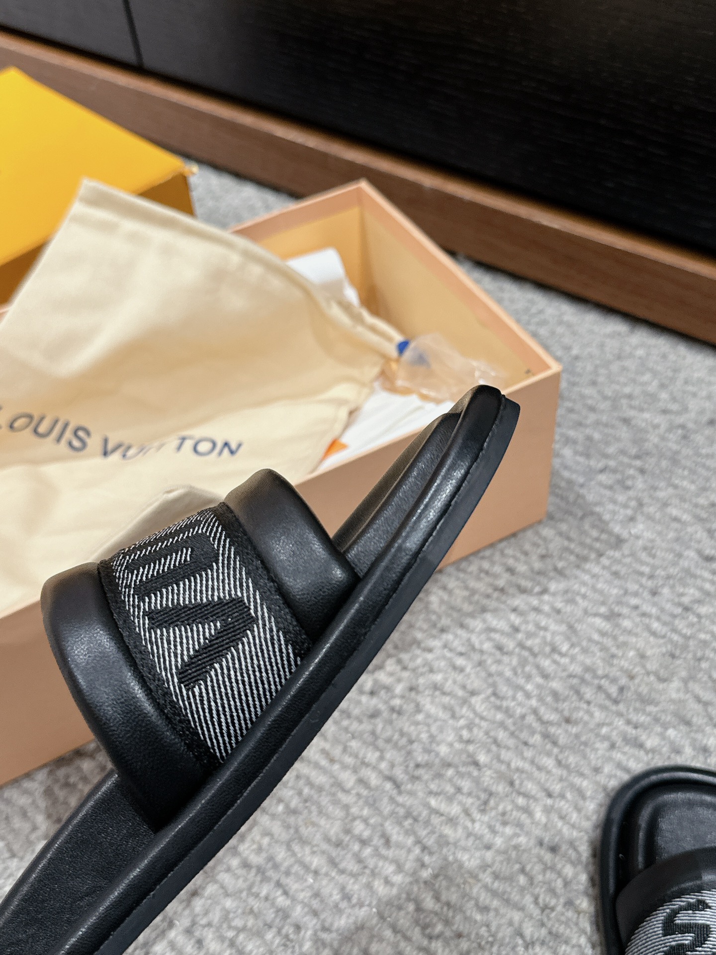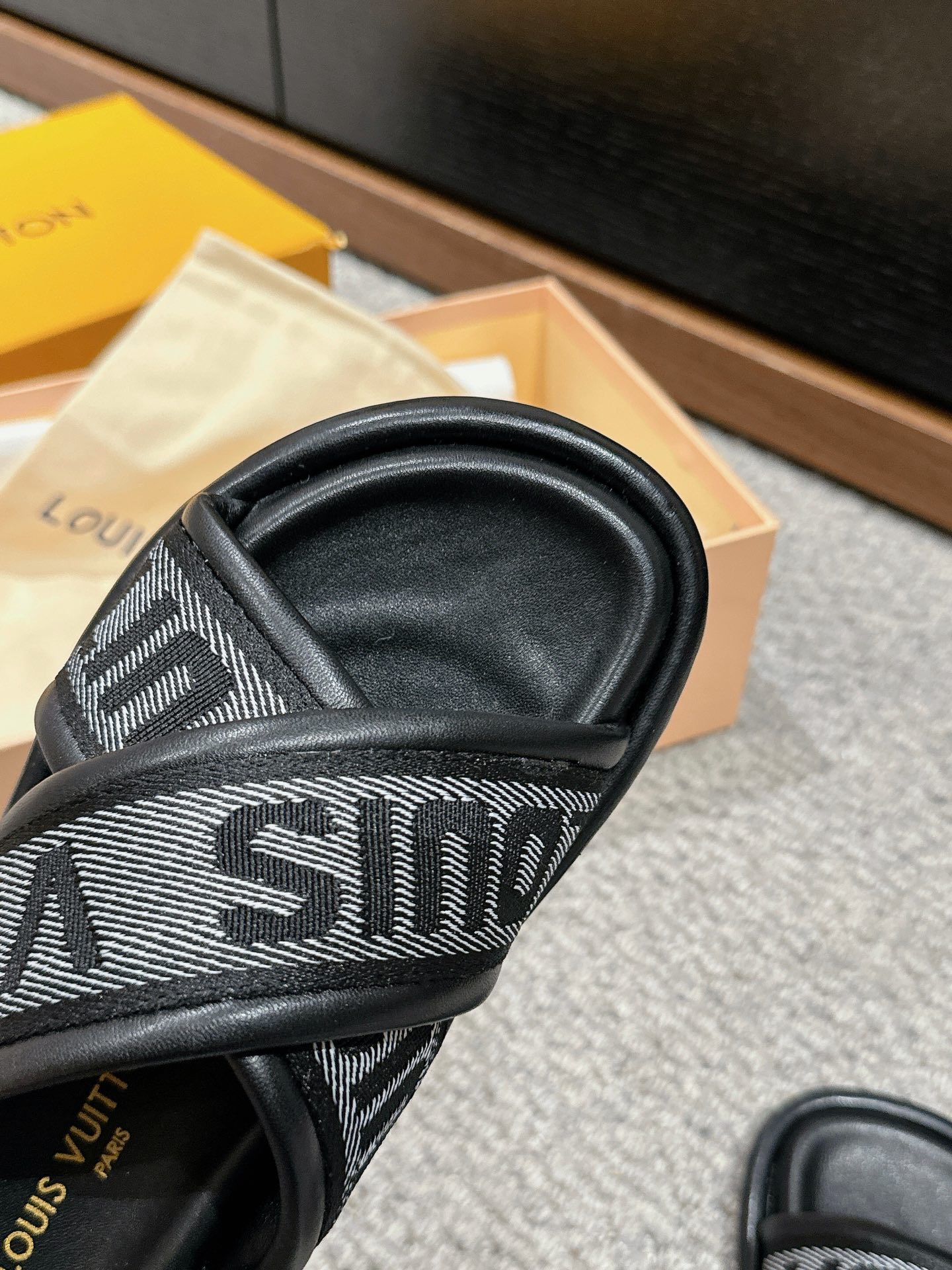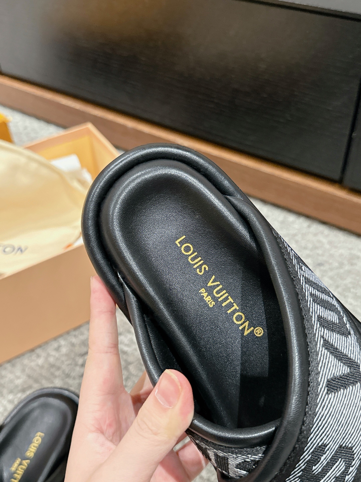 这款鞋子是AAAAA 1:1 质量 (非常棒). 使用了和原版一模一样的材料. 商标部分也保持了和路易威登/Louis Vuitton一样. 图片拍摄是实物鞋子拍摄, 您所收到的实物保证和我们图片一模一样.
