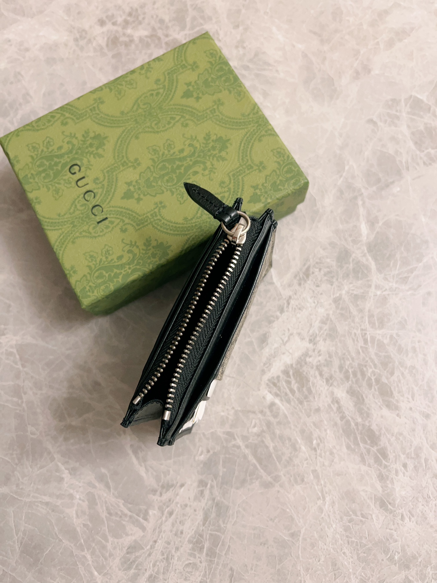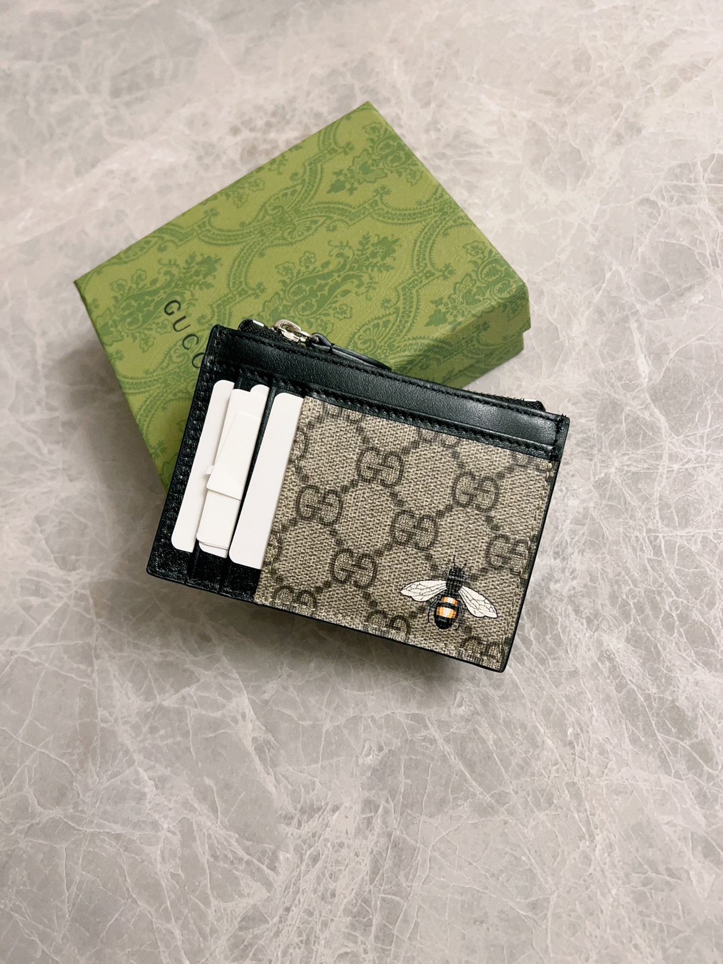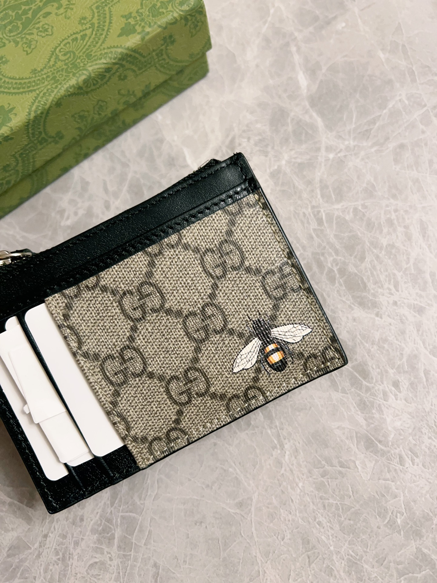 这款钱包是AAAAA 1:1 质量 (非常棒). 使用了和原版一模一样的材料. 商标部分也保持了和古奇/Gucci一样. 图片拍摄是实物钱包拍摄, 您所收到的实物保证和我们图片一模一样.