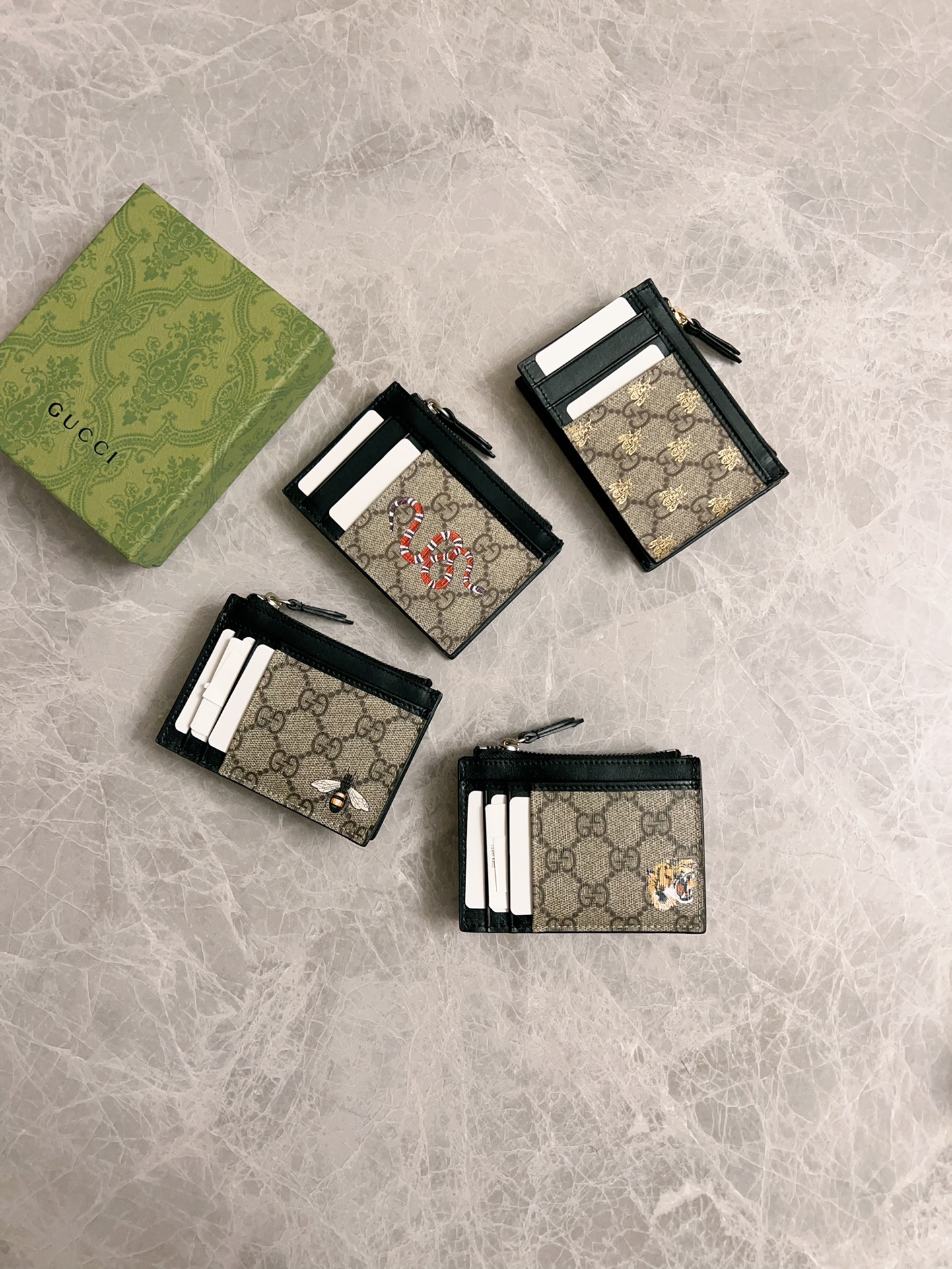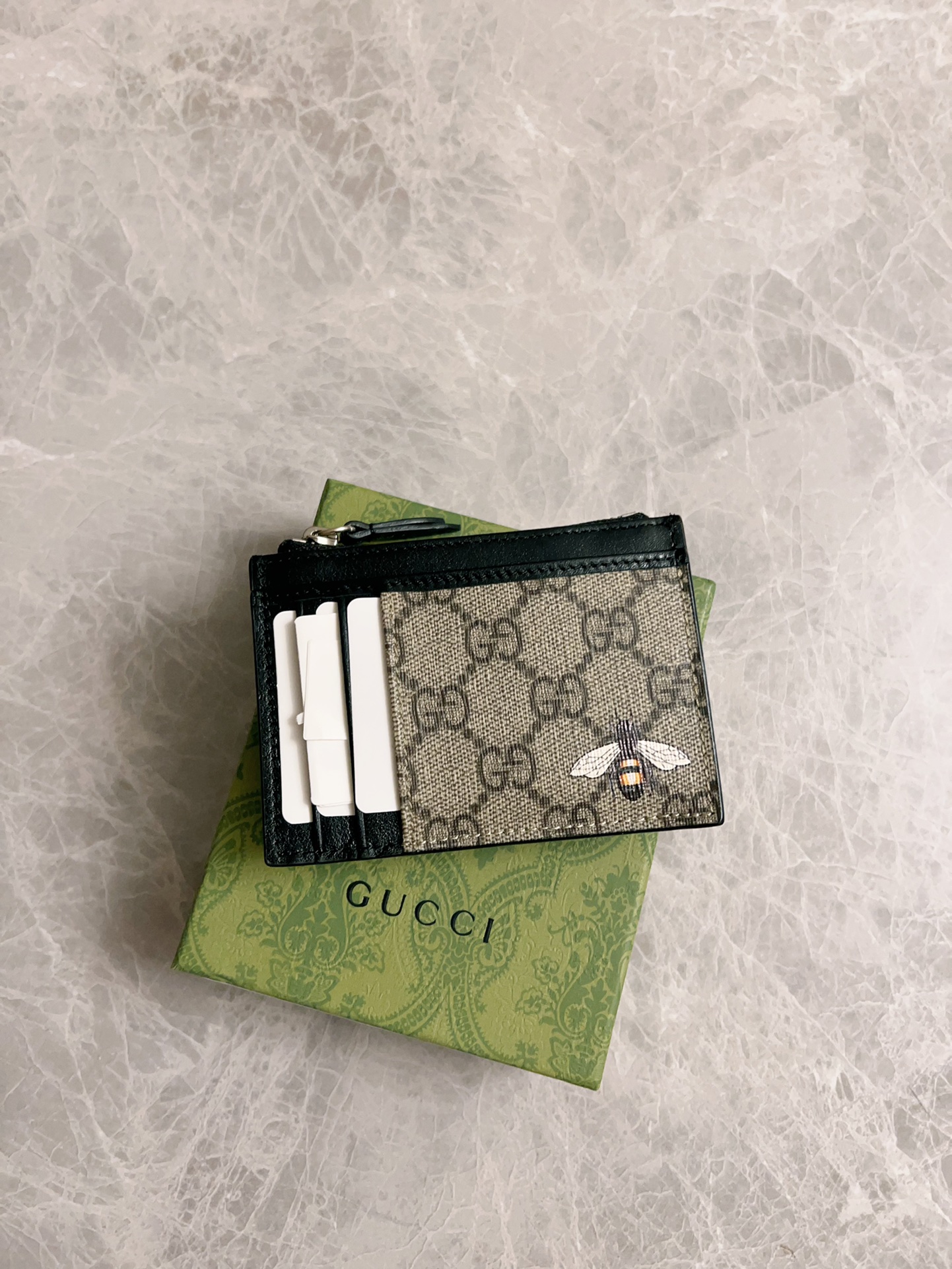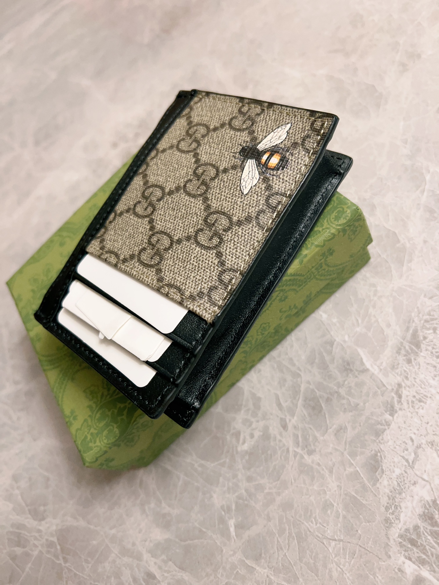 这款钱包是AAAAA 1:1 质量 (非常棒). 使用了和原版一模一样的材料. 商标部分也保持了和古奇/Gucci一样. 图片拍摄是实物钱包拍摄, 您所收到的实物保证和我们图片一模一样.