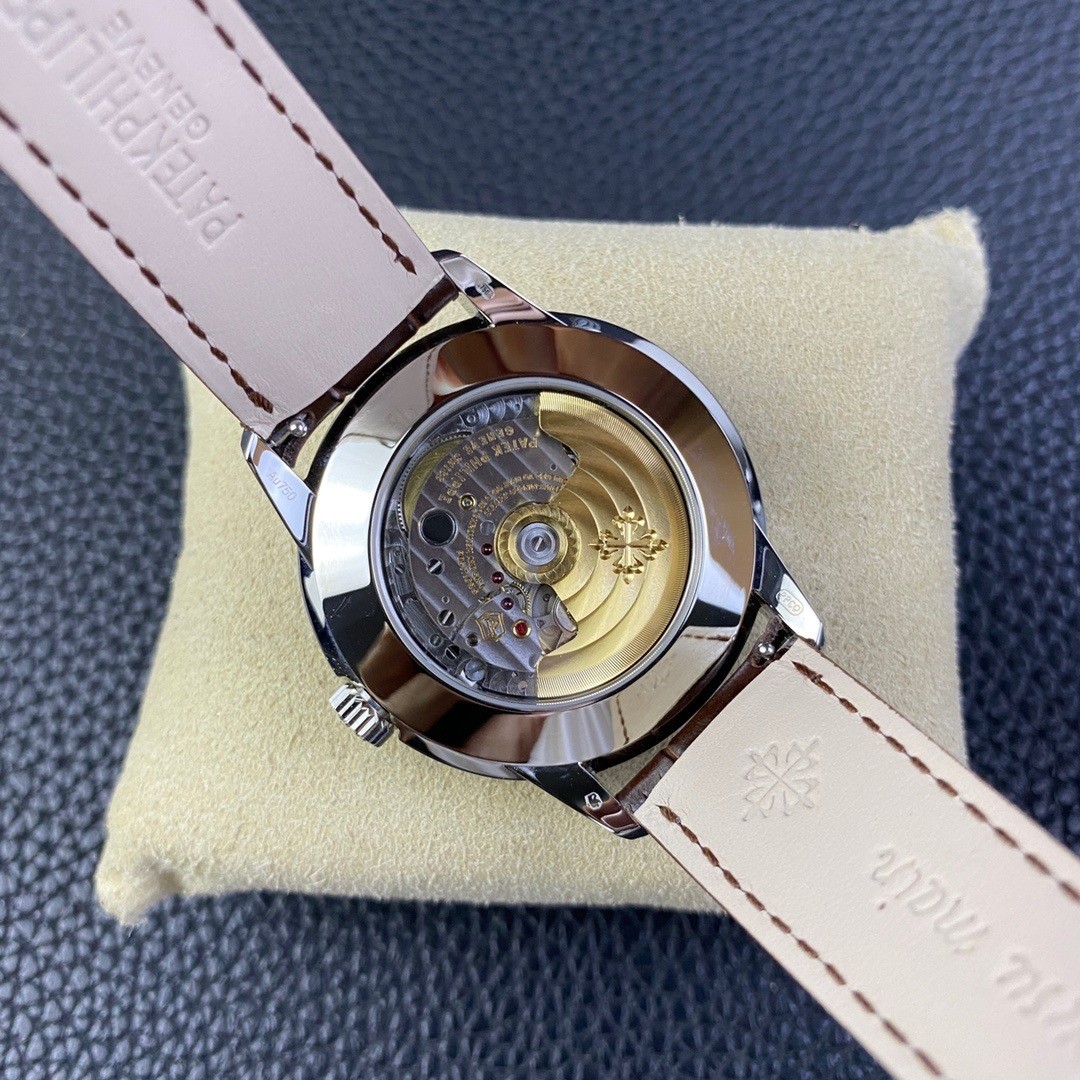 这款手表是AAAAA 1:1 质量 (非常棒). 使用了和原版一模一样的材料. 商标部分也保持了和百达翡丽/Patek Philippe一样. 图片拍摄是实物手表拍摄, 您所收到的实物保证和我们图片一模一样.