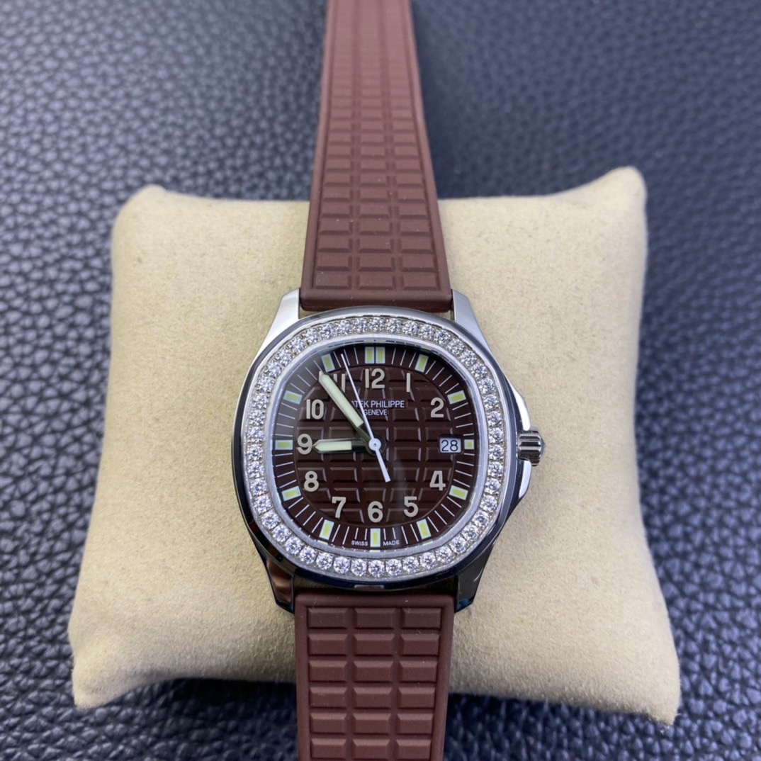 这款手表是AAAAA 1:1 质量 (非常棒). 使用了和原版一模一样的材料. 商标部分也保持了和百达翡丽/Patek Philippe一样. 图片拍摄是实物手表拍摄, 您所收到的实物保证和我们图片一模一样.
