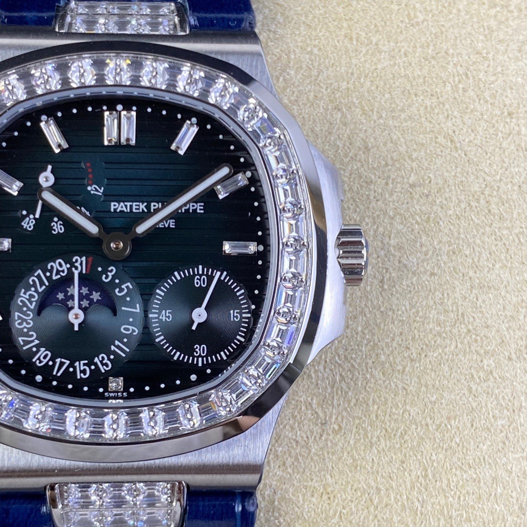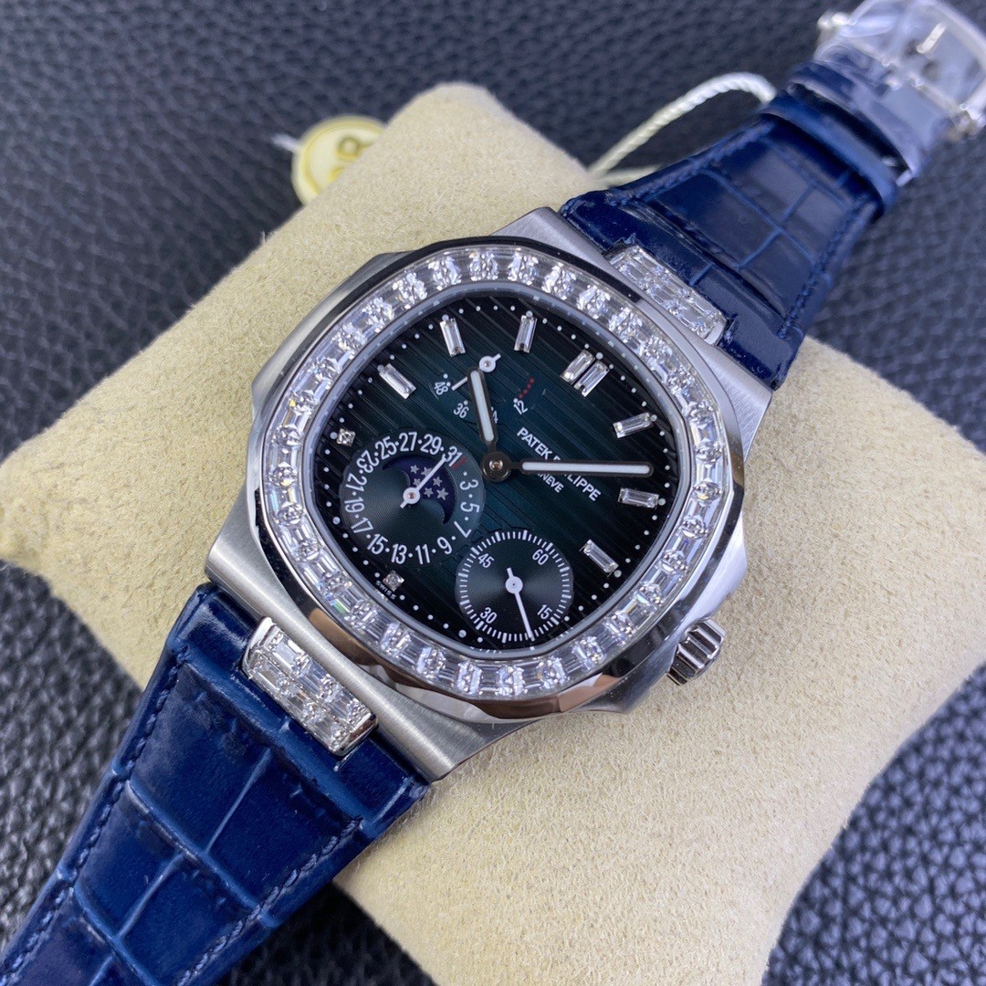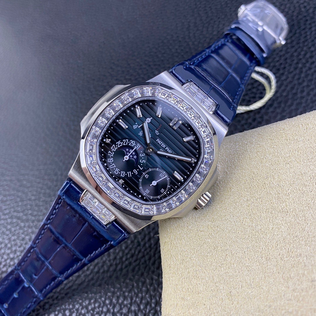 这款手表是AAAAA 1:1 质量 (非常棒). 使用了和原版一模一样的材料. 商标部分也保持了和百达翡丽/Patek Philippe一样. 图片拍摄是实物手表拍摄, 您所收到的实物保证和我们图片一模一样.