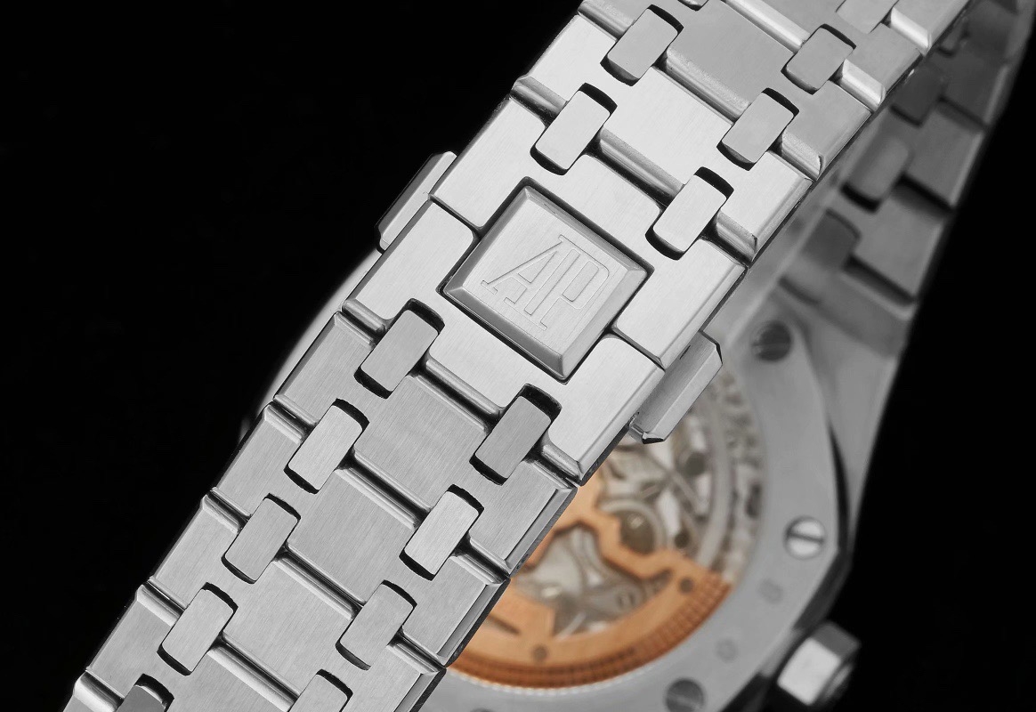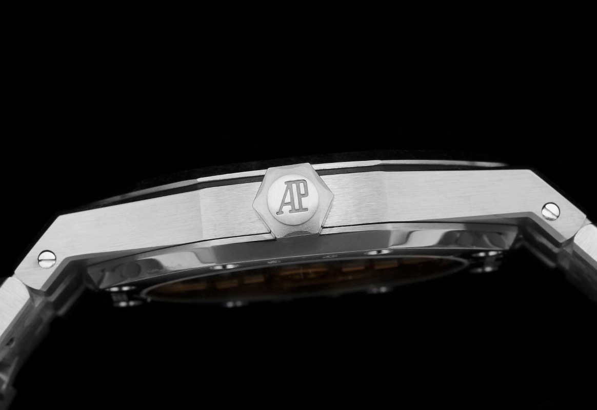 这款手表是AAAAA 1:1 质量 (非常棒). 使用了和原版一模一样的材料. 商标部分也保持了和爱彼/Audemars Piguet一样. 图片拍摄是实物手表拍摄, 您所收到的实物保证和我们图片一模一样.