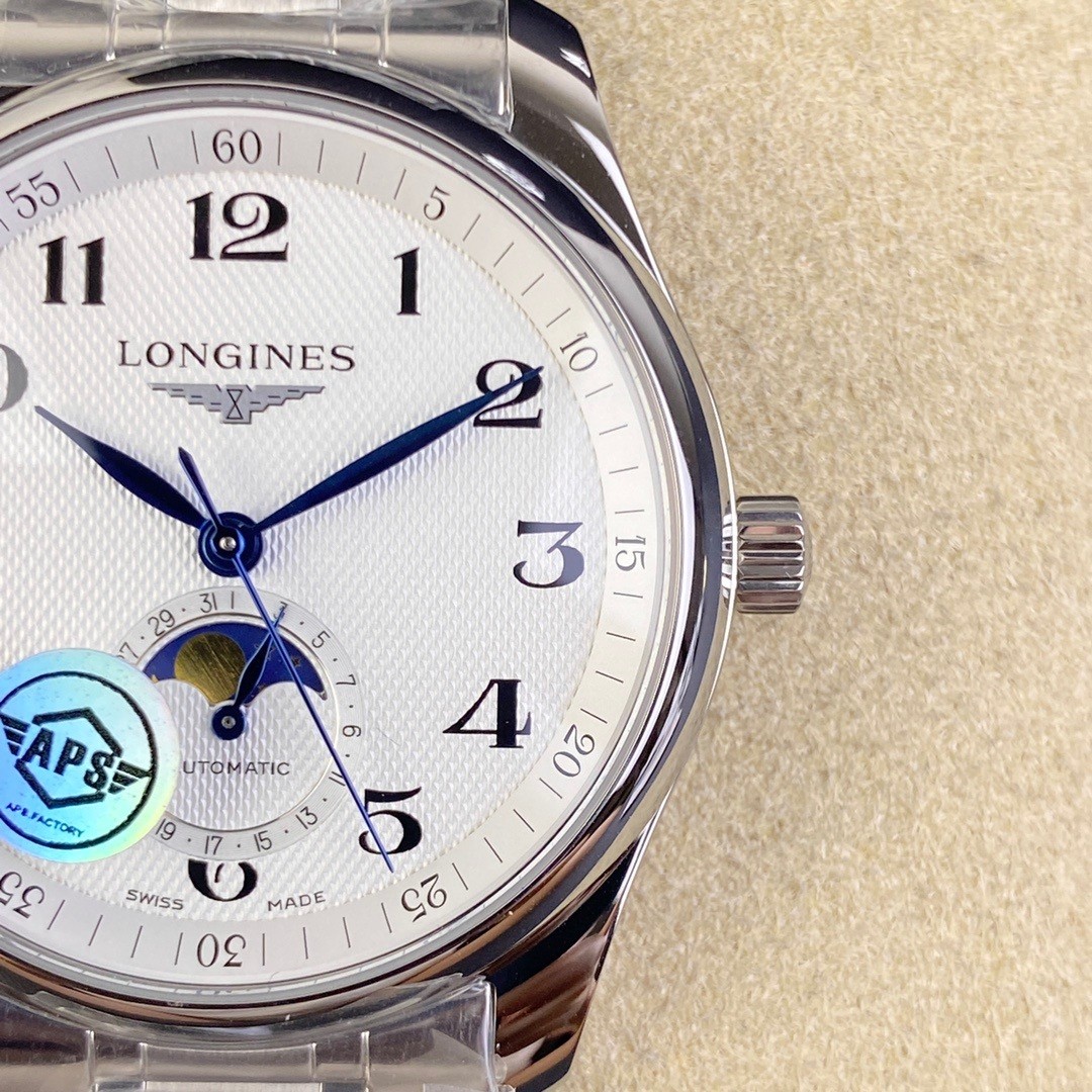 这款手表是AAAAA 1:1 质量 (非常棒). 使用了和原版一模一样的材料. 商标部分也保持了和浪琴/Longines一样. 图片拍摄是实物手表拍摄, 您所收到的实物保证和我们图片一模一样.