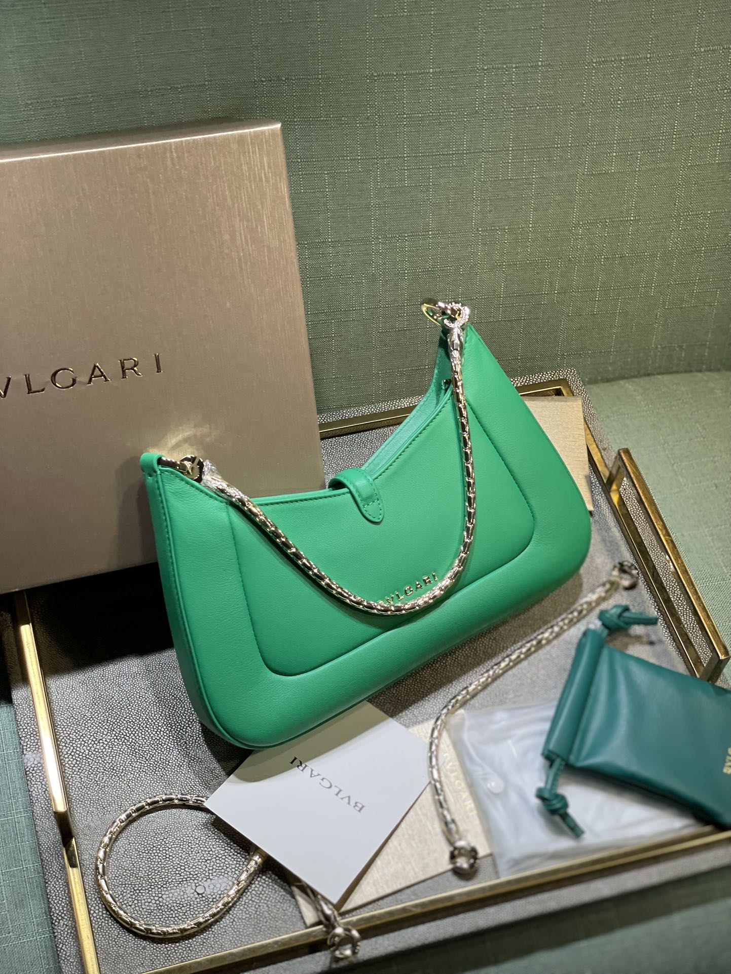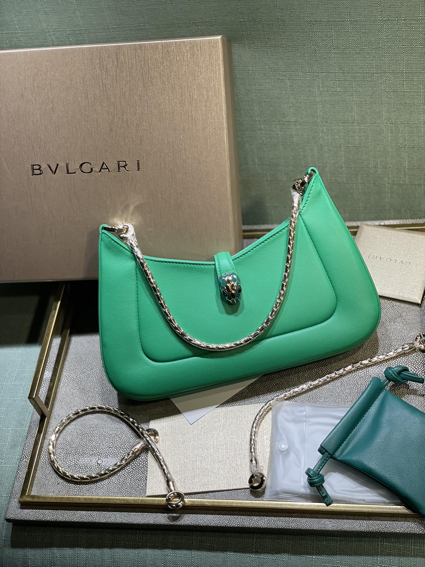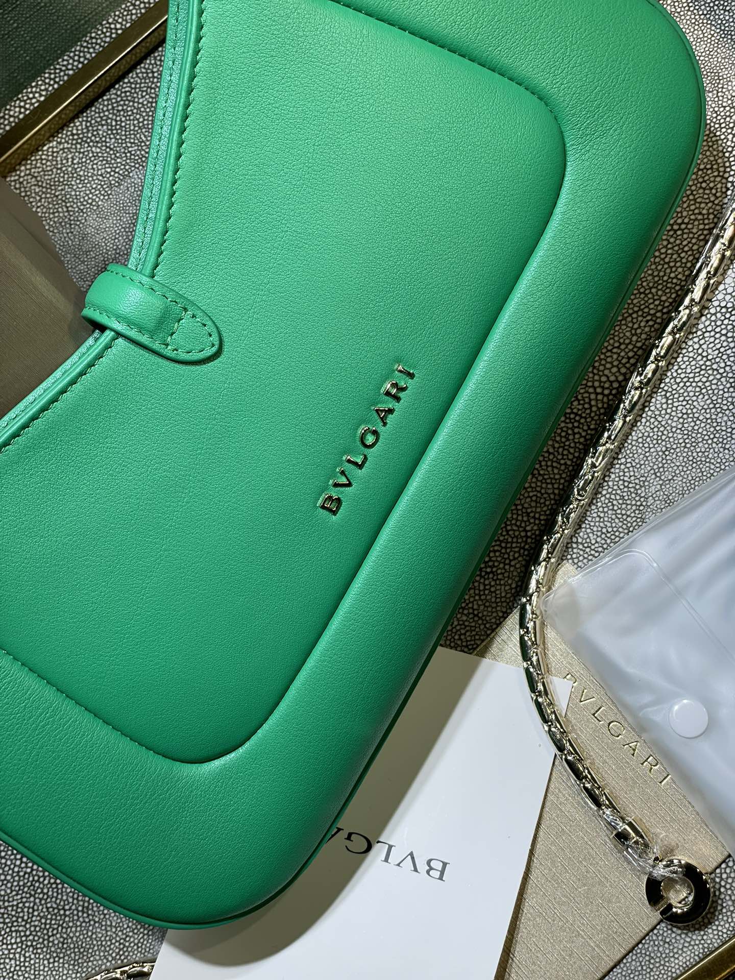 这款包包是AAAAA 1:1 质量 (非常棒). 使用了和原版一模一样的材料. 商标部分也保持了和宝格丽/Bulgari一样. 图片拍摄是实物包包拍摄, 您所收到的实物保证和我们图片一模一样.