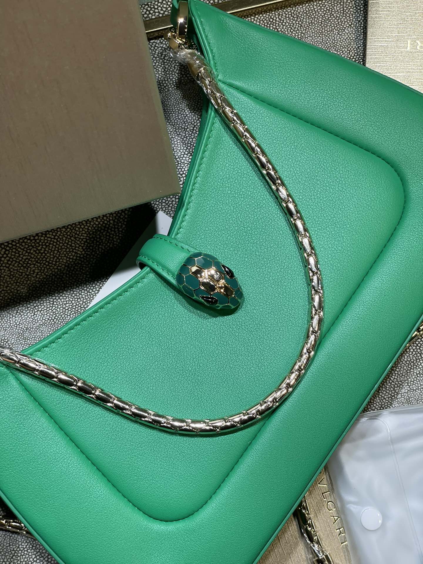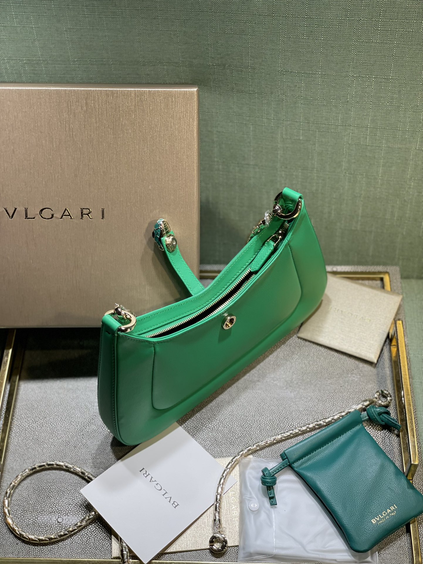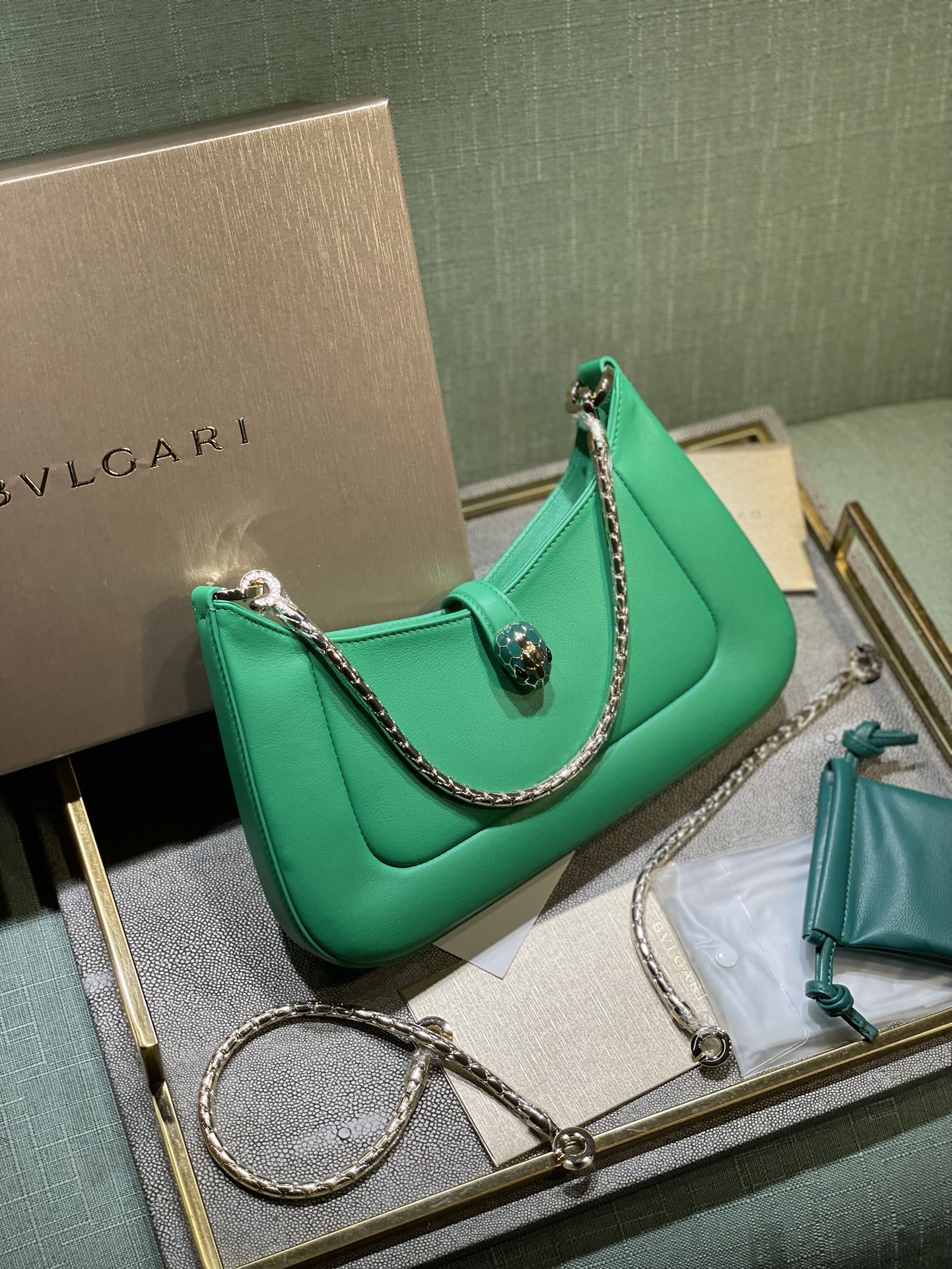 这款包包是AAAAA 1:1 质量 (非常棒). 使用了和原版一模一样的材料. 商标部分也保持了和宝格丽/Bulgari一样. 图片拍摄是实物包包拍摄, 您所收到的实物保证和我们图片一模一样.