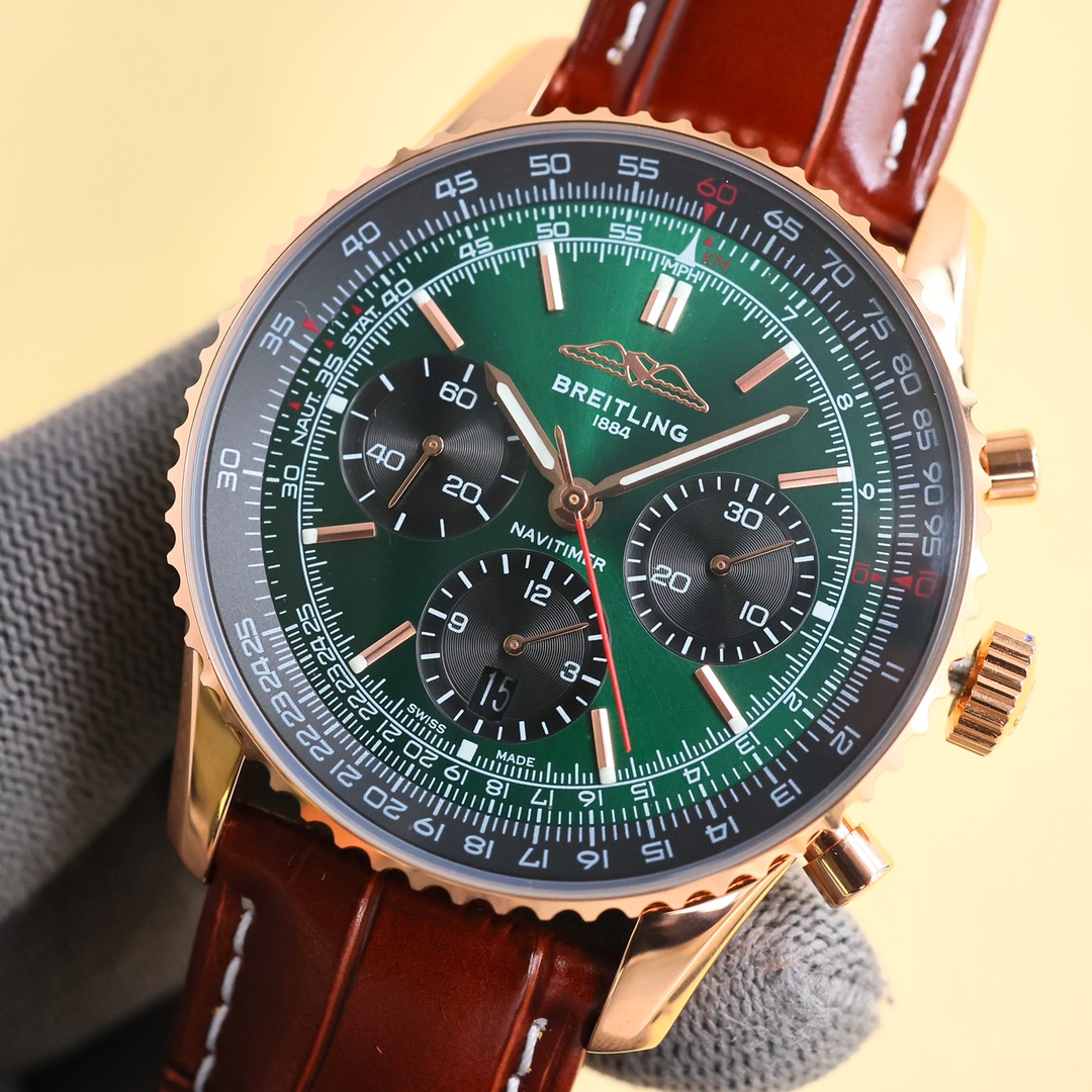这款手表是AAAAA 1:1 质量 (非常棒). 使用了和原版一模一样的材料. 商标部分也保持了和Breitling一样. 图片拍摄是实物手表拍摄, 您所收到的实物保证和我们图片一模一样.