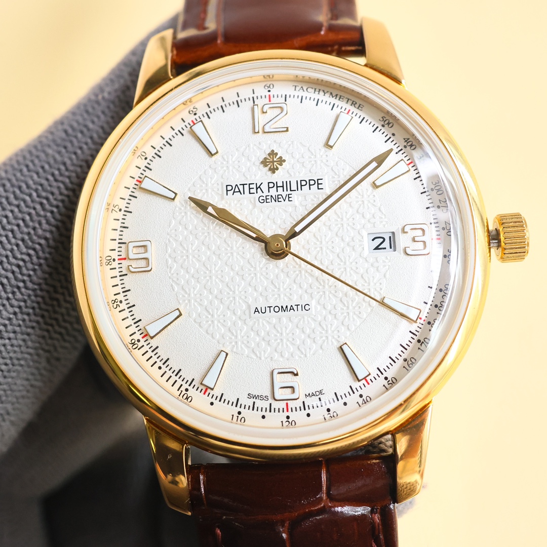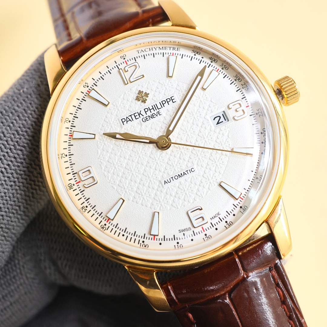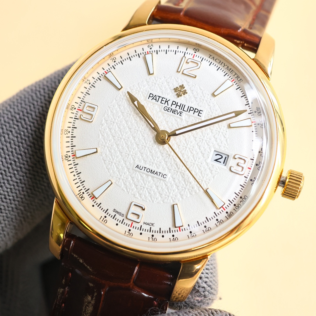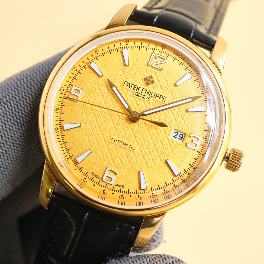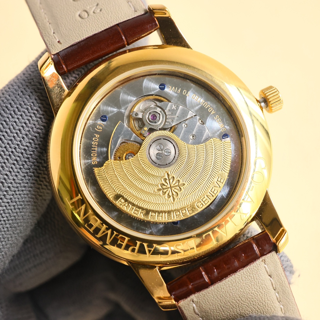 这款手表是AAAAA 1:1 质量 (非常棒). 使用了和原版一模一样的材料. 商标部分也保持了和百达翡丽/Patek Philippe一样. 图片拍摄是实物手表拍摄, 您所收到的实物保证和我们图片一模一样.