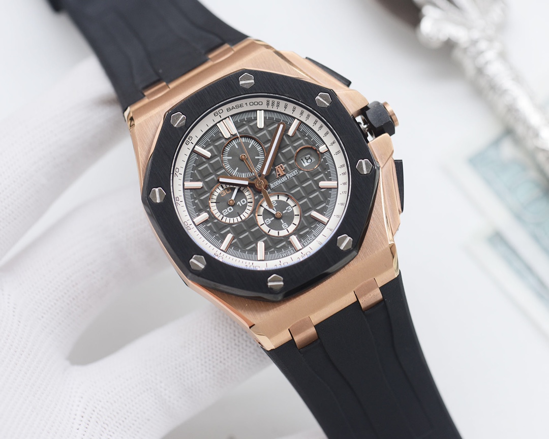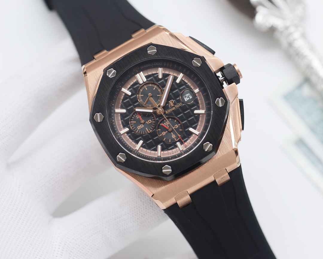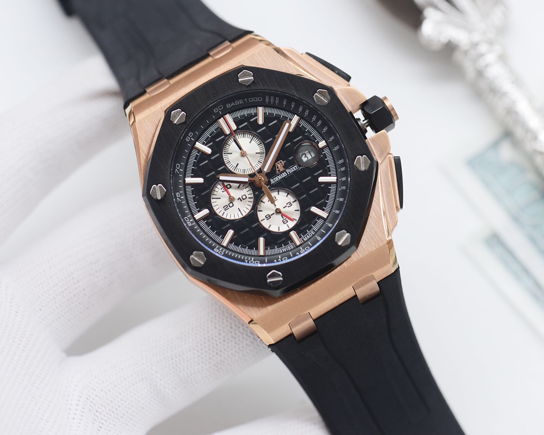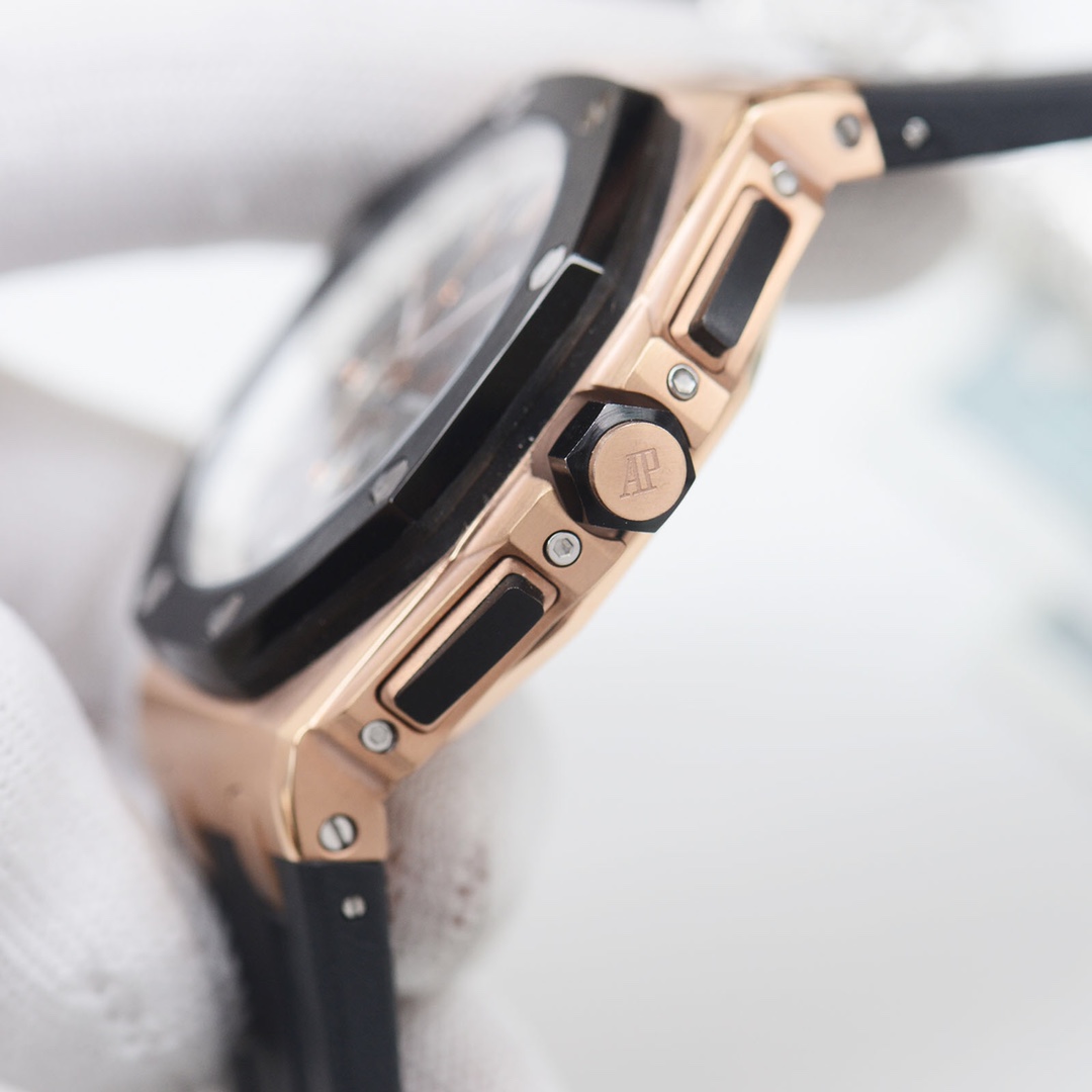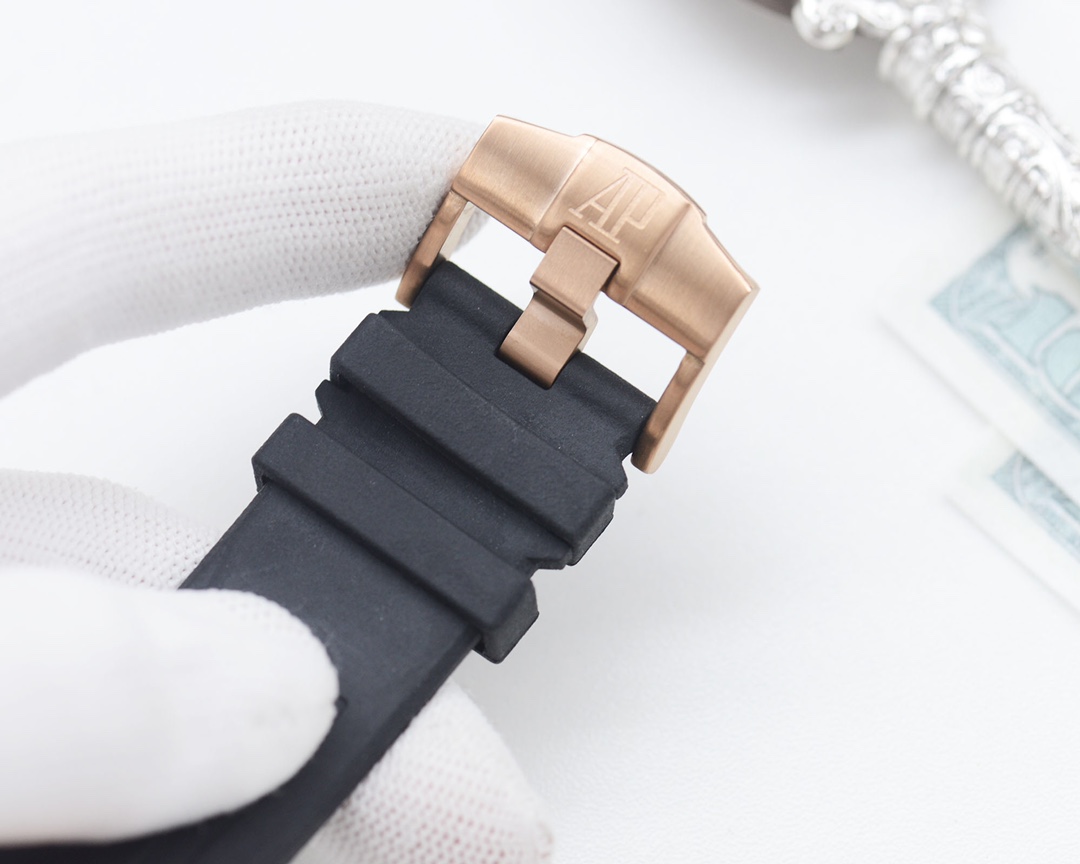 这款手表是AAAAA 1:1 质量 (非常棒). 使用了和原版一模一样的材料. 商标部分也保持了和爱彼/Audemars Piguet一样. 图片拍摄是实物手表拍摄, 您所收到的实物保证和我们图片一模一样.