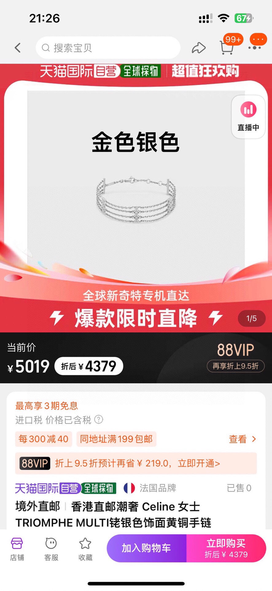 这款首饰是AAAAA 1:1 质量 (非常棒). 使用了和原版一模一样的材料. 商标部分也保持了和思琳/Celine一样. 图片拍摄是实物首饰拍摄, 您所收到的实物保证和我们图片一模一样.
