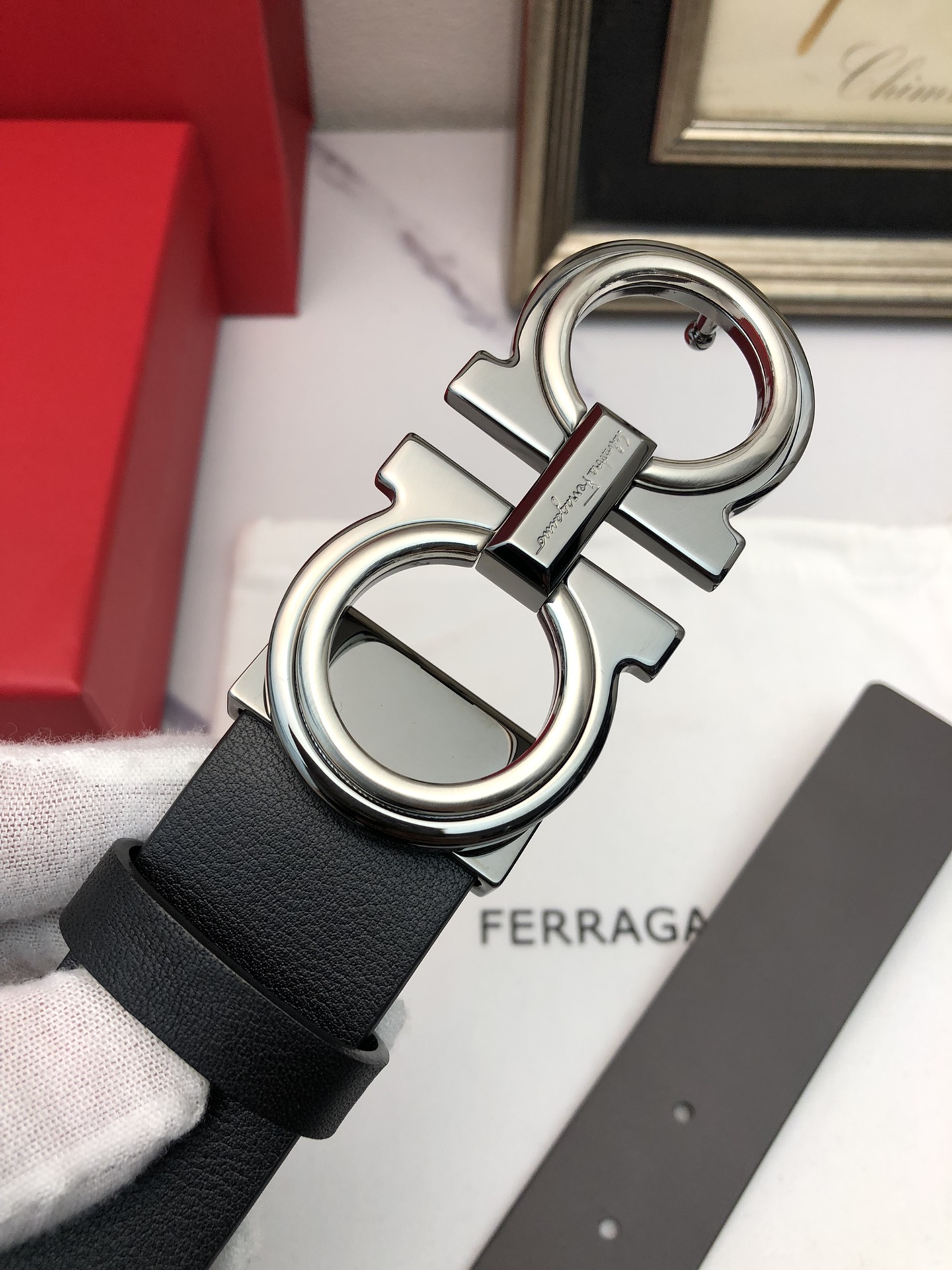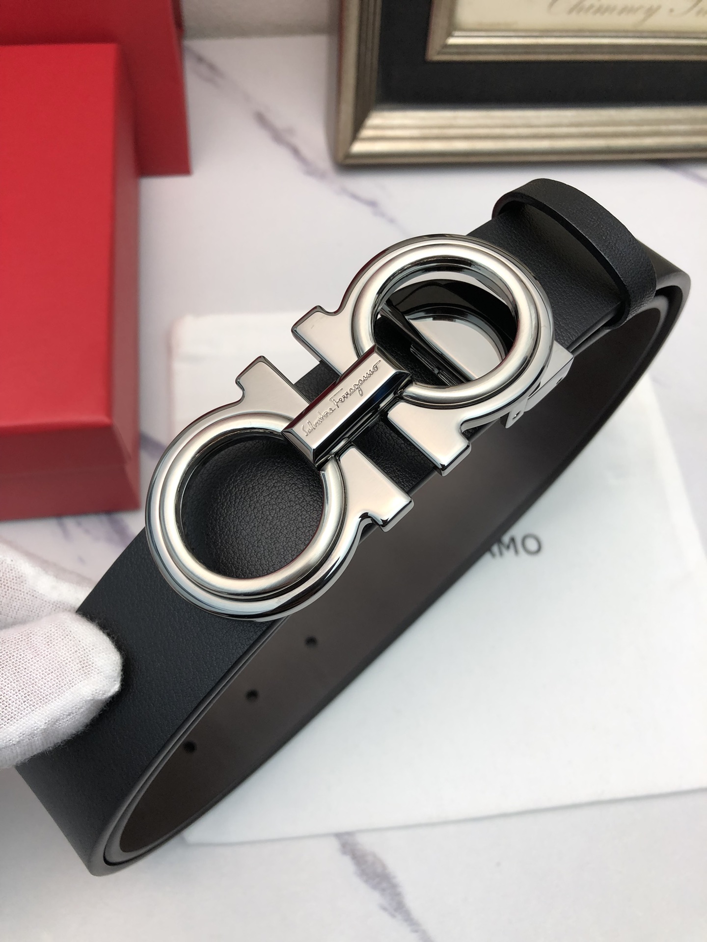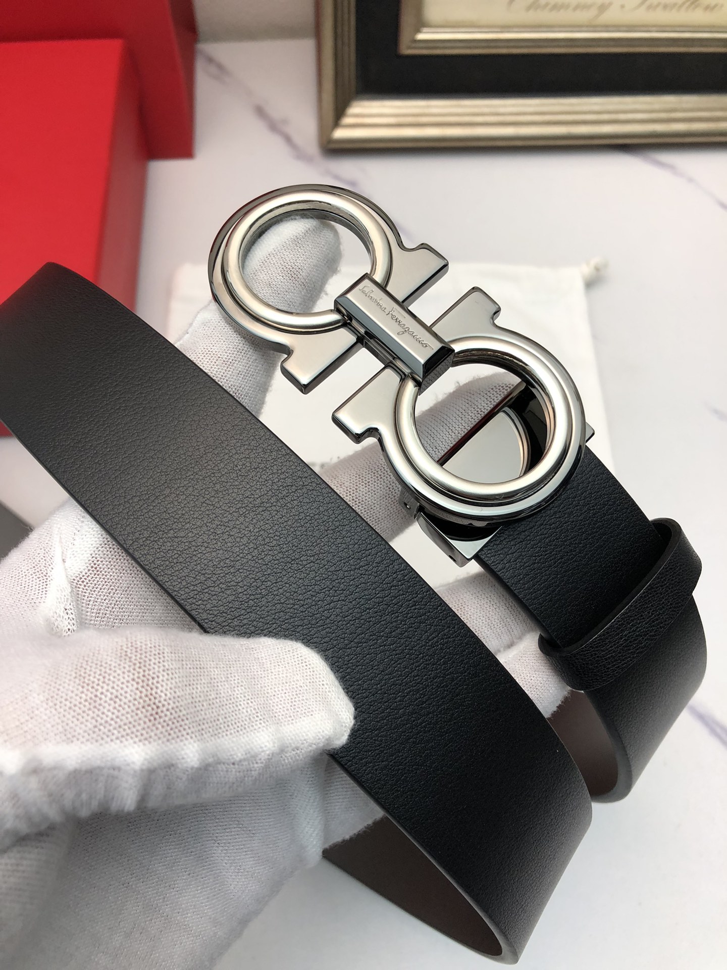 这款皮带是AAAAA 1:1 质量 (非常棒). 使用了和原版一模一样的材料. 商标部分也保持了和菲拉格慕/Salvatore Ferragamo一样. 图片拍摄是实物皮带拍摄, 您所收到的实物保证和我们图片一模一样.