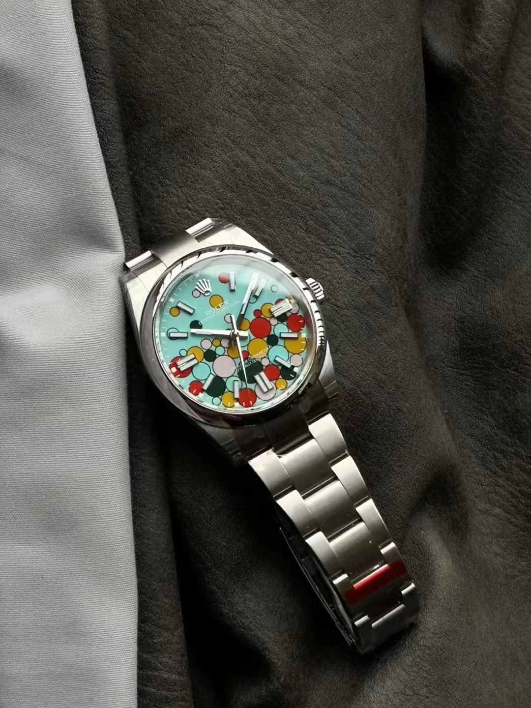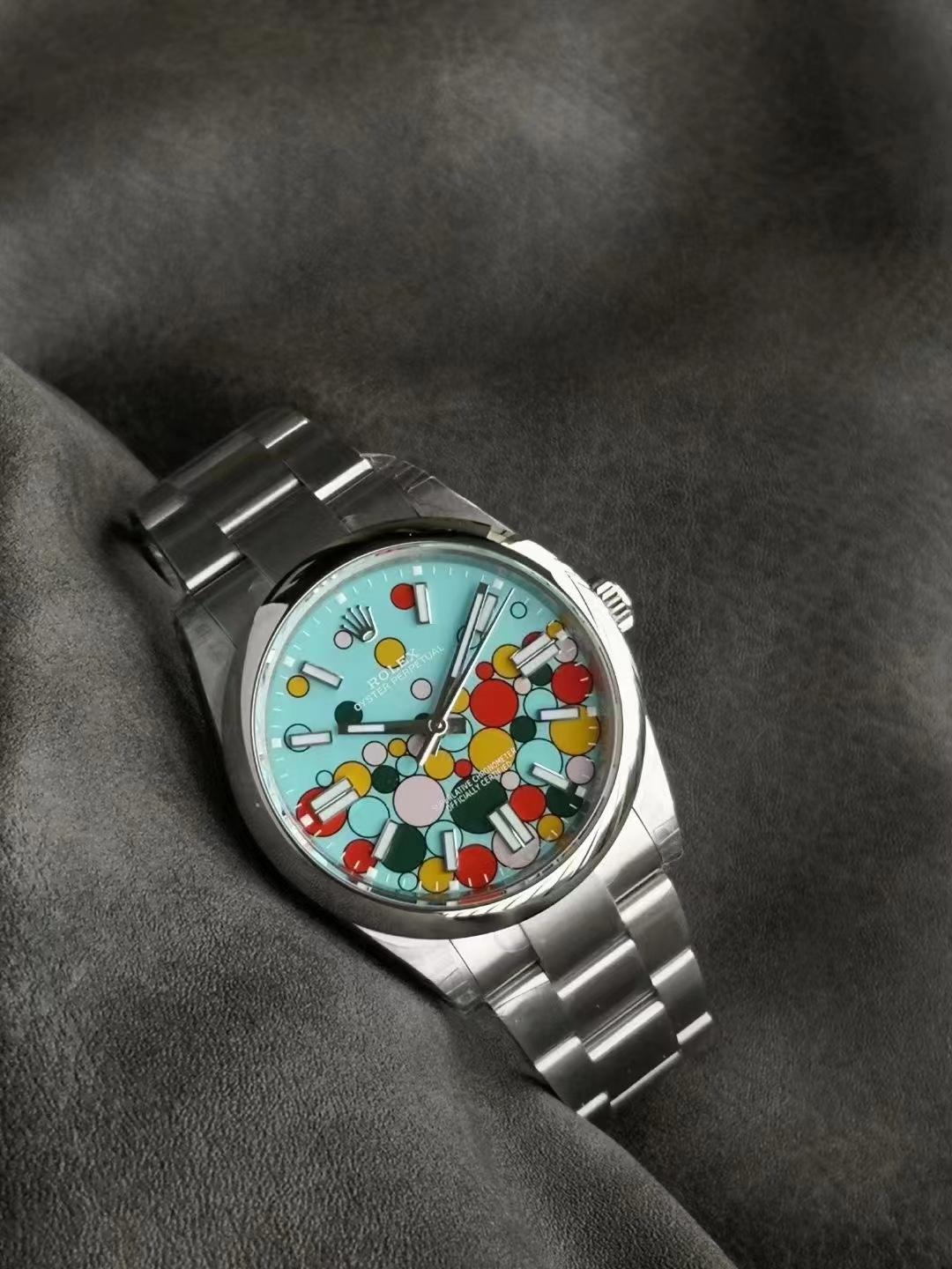 这款手表是AAAAA 1:1 质量 (非常棒). 使用了和原版一模一样的材料. 商标部分也保持了和劳力士/Rolex一样. 图片拍摄是实物手表拍摄, 您所收到的实物保证和我们图片一模一样.
