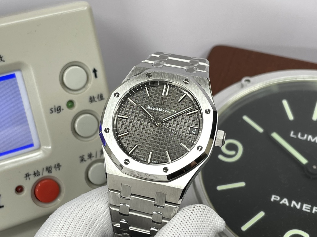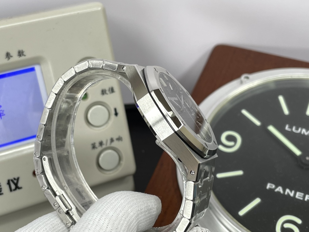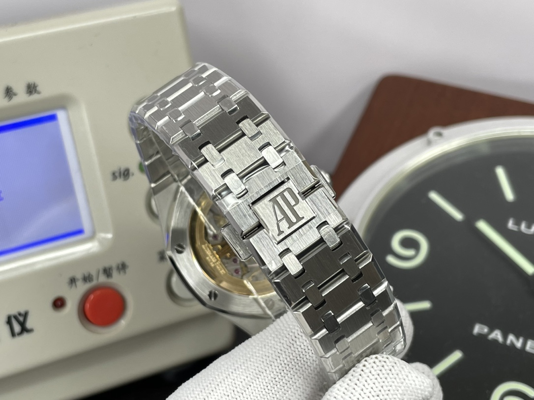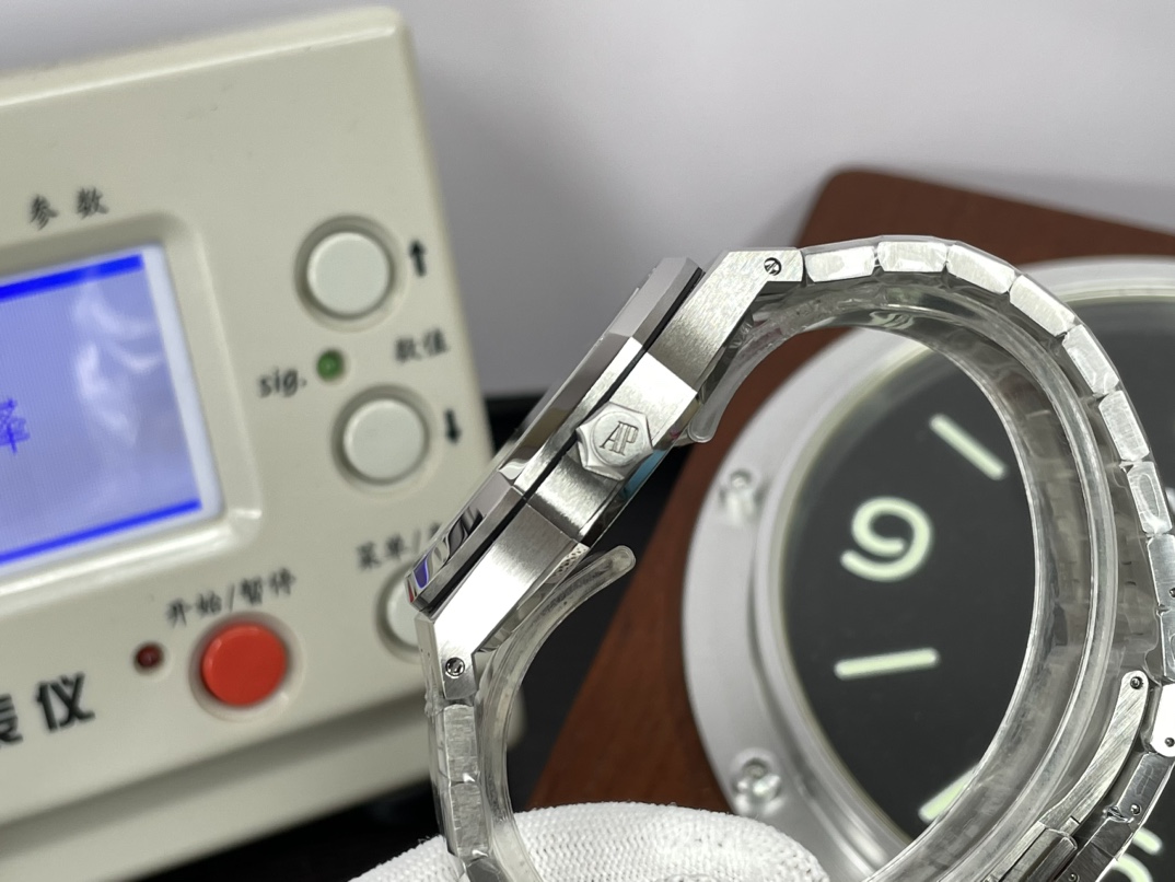 这款手表是AAAAA 1:1 质量 (非常棒). 使用了和原版一模一样的材料. 商标部分也保持了和爱彼/Audemars Piguet一样. 图片拍摄是实物手表拍摄, 您所收到的实物保证和我们图片一模一样.