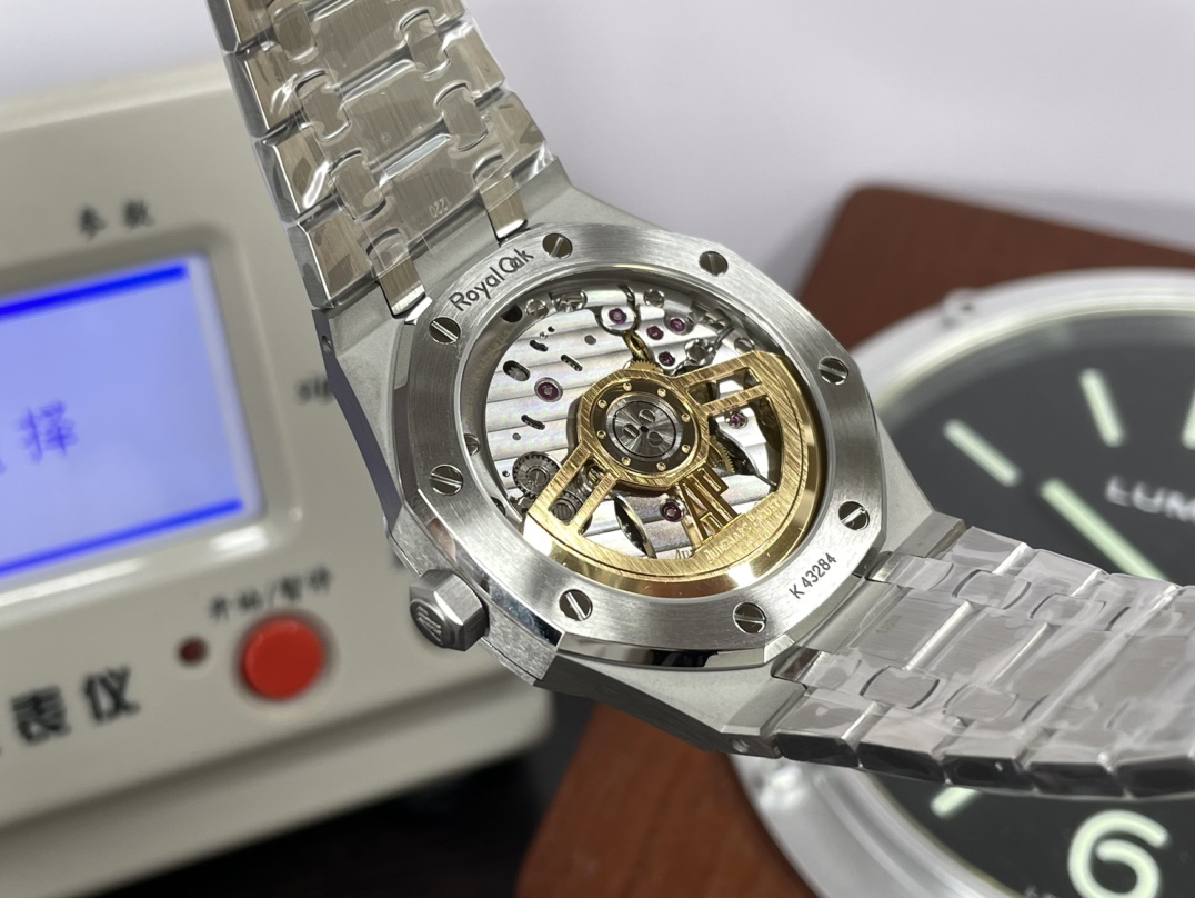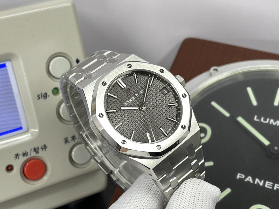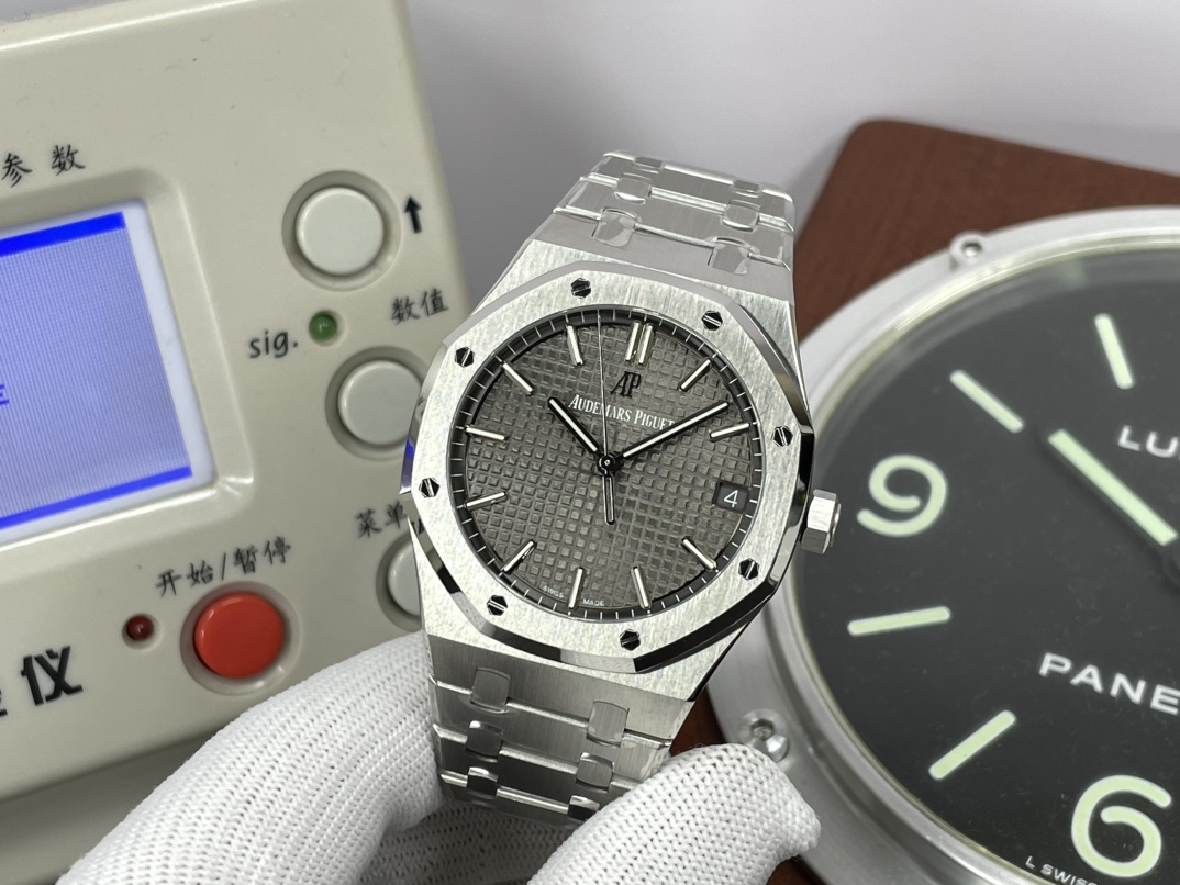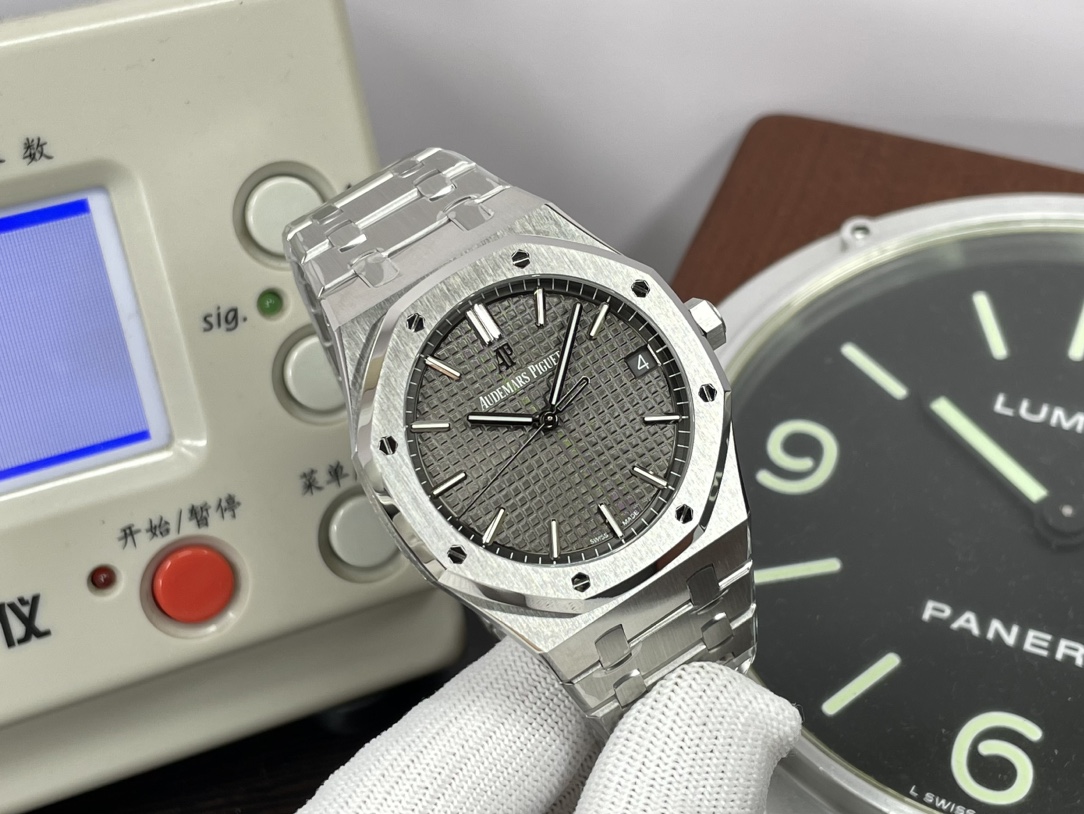 这款手表是AAAAA 1:1 质量 (非常棒). 使用了和原版一模一样的材料. 商标部分也保持了和爱彼/Audemars Piguet一样. 图片拍摄是实物手表拍摄, 您所收到的实物保证和我们图片一模一样.