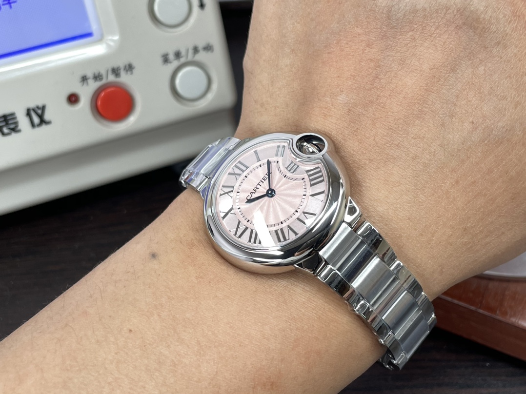 这款手表是AAAAA 1:1 质量 (非常棒). 使用了和原版一模一样的材料. 商标部分也保持了和卡地亚/Cartier一样. 图片拍摄是实物手表拍摄, 您所收到的实物保证和我们图片一模一样.