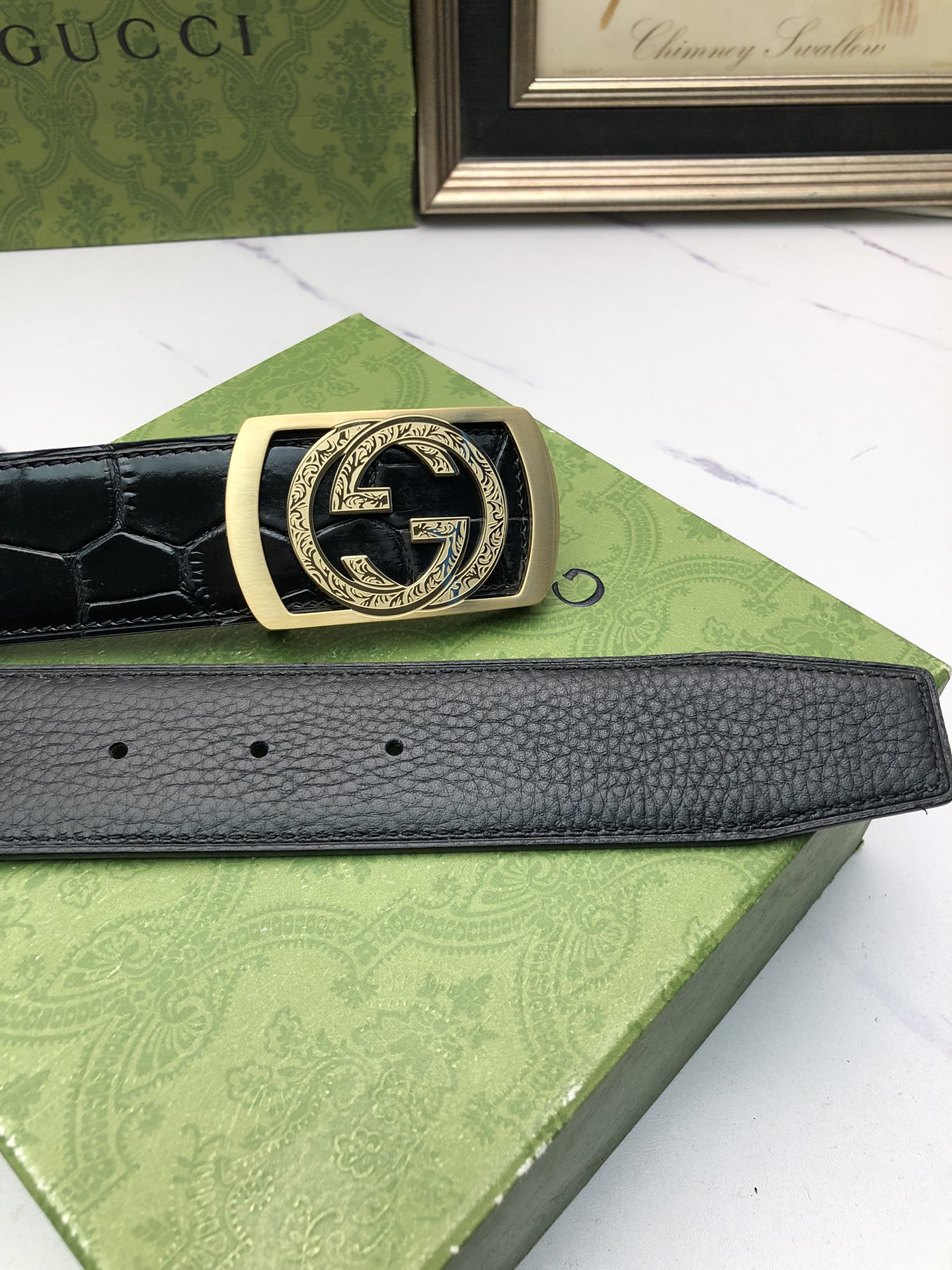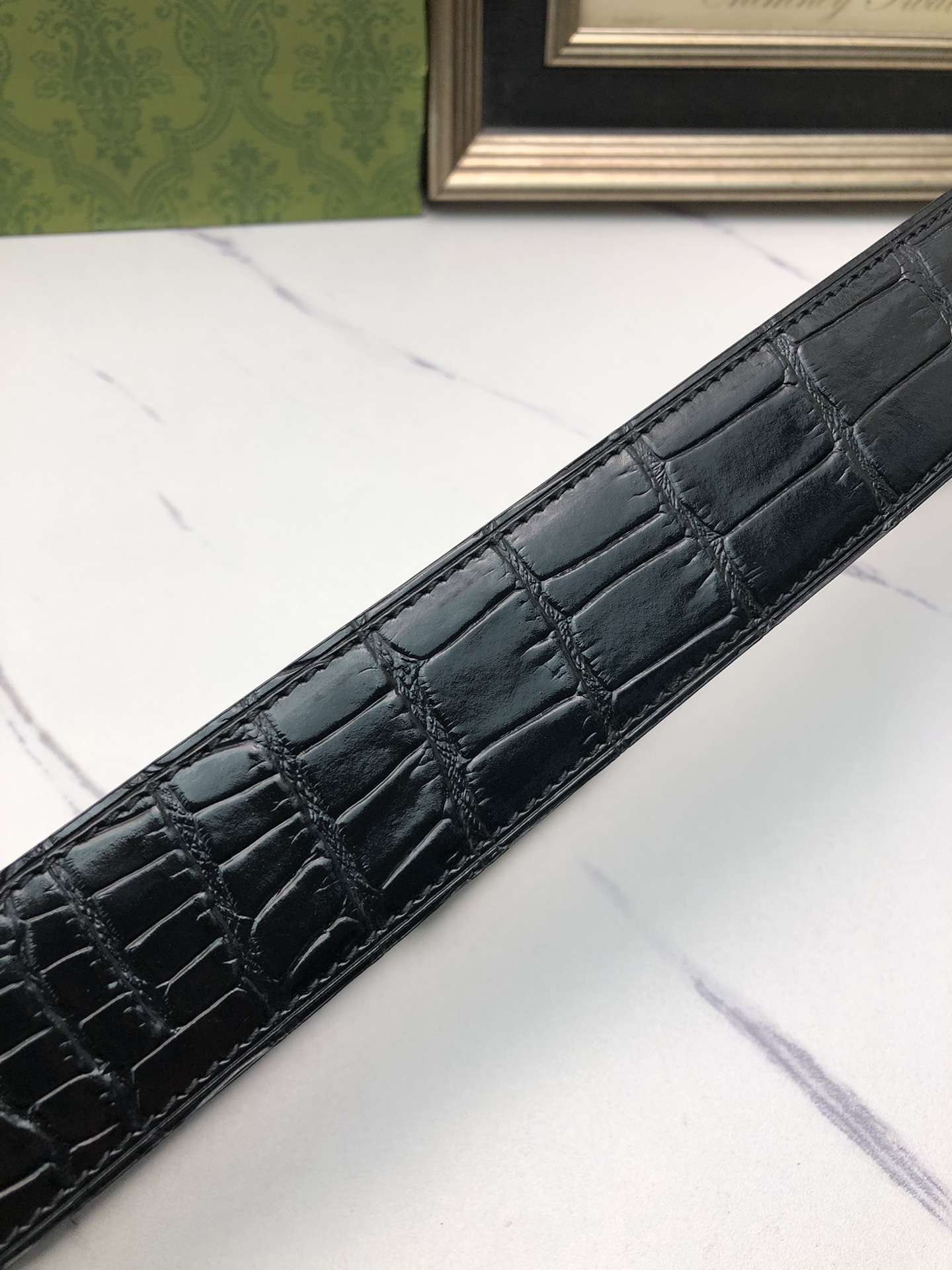 这款皮带是AAAAA 1:1 质量 (非常棒). 使用了和原版一模一样的材料. 商标部分也保持了和古奇/Gucci一样. 图片拍摄是实物皮带拍摄, 您所收到的实物保证和我们图片一模一样.