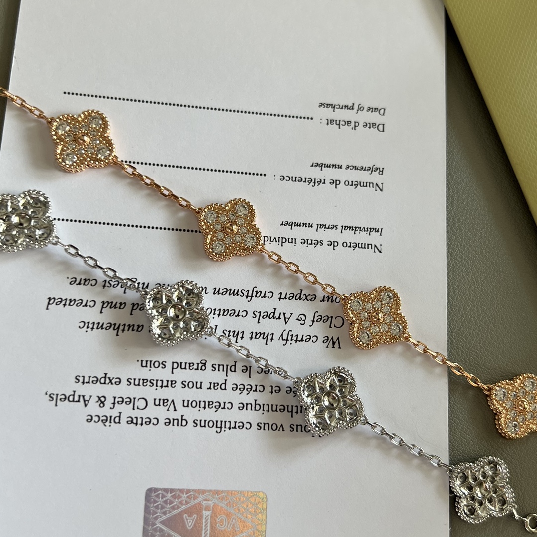 这款首饰是AAAAA 1:1 质量 (非常棒). 使用了和原版一模一样的材料. 商标部分也保持了和梵克雅宝/Van Cleef & Arpels一样. 图片拍摄是实物首饰拍摄, 您所收到的实物保证和我们图片一模一样.
