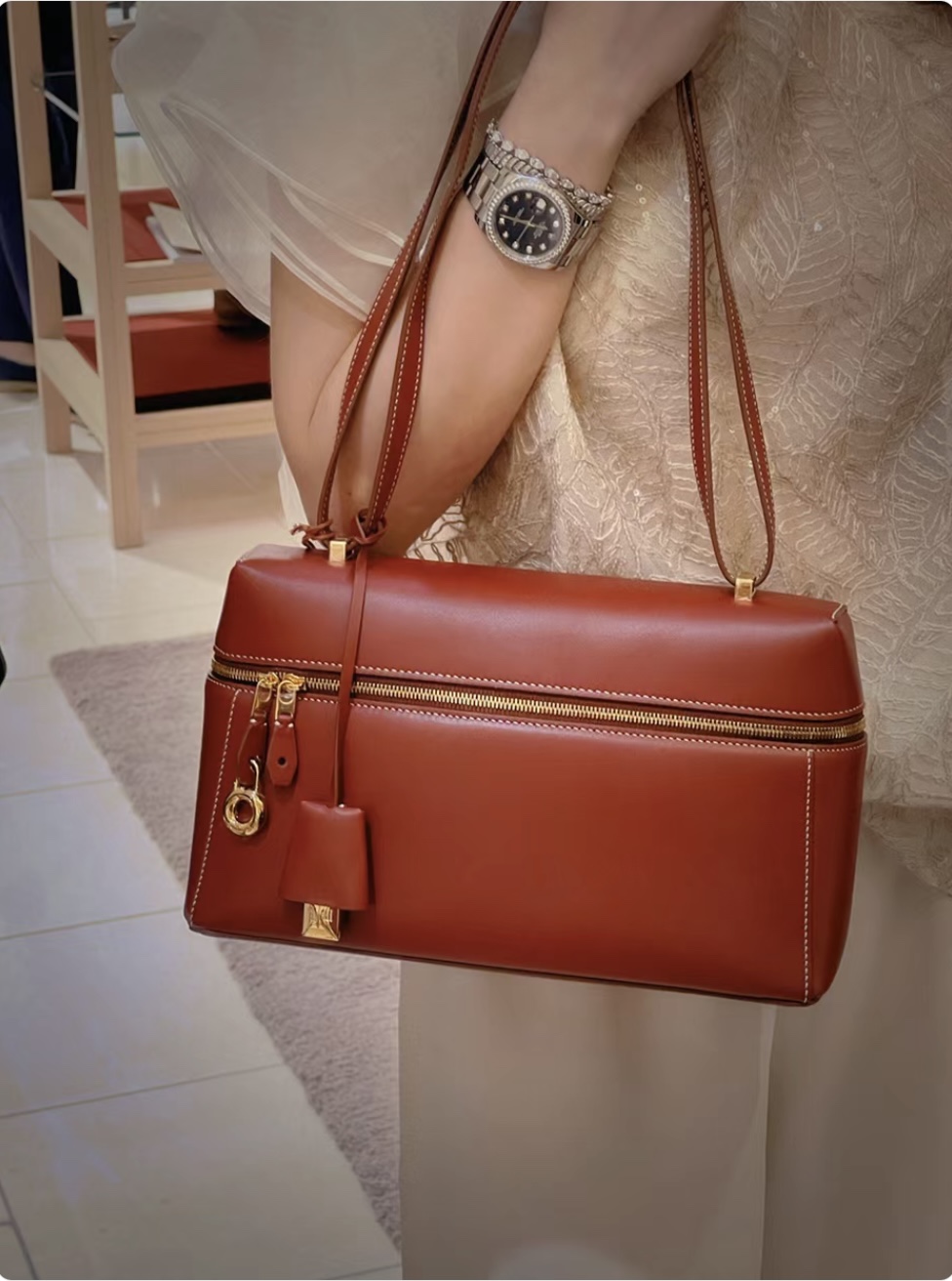 这款包包是AAAAA 1:1 质量 (非常棒). 使用了和原版一模一样的材料. 商标部分也保持了和洛罗皮亚纳/Loro Piana一样. 图片拍摄是实物包包拍摄, 您所收到的实物保证和我们图片一模一样.