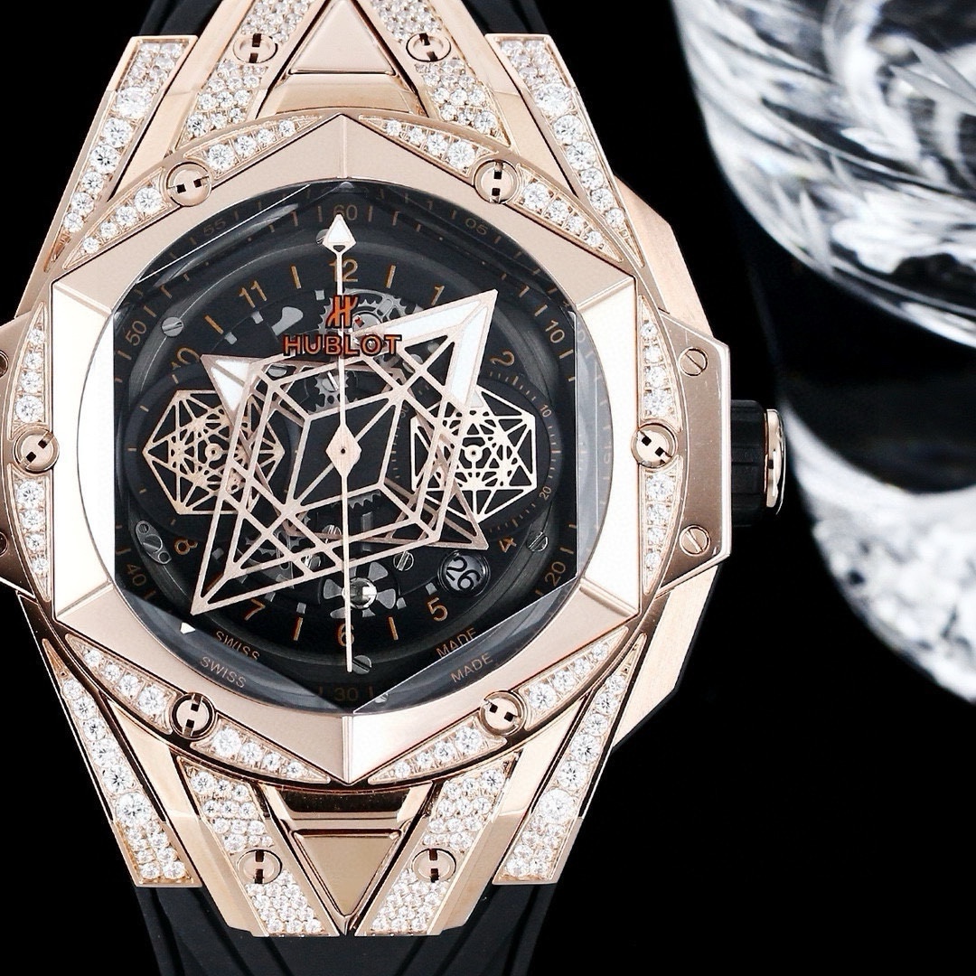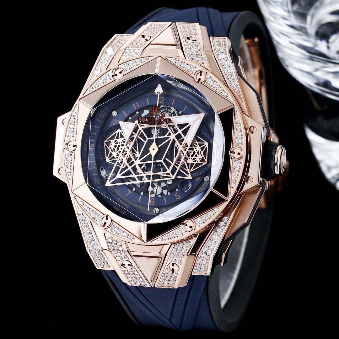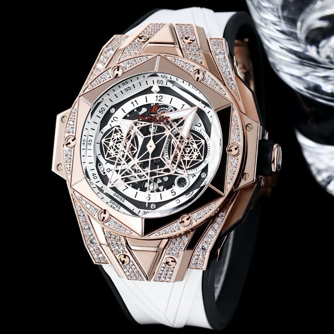 这款手表是AAAAA 1:1 质量 (非常棒). 使用了和原版一模一样的材料. 商标部分也保持了和Hublot一样. 图片拍摄是实物手表拍摄, 您所收到的实物保证和我们图片一模一样.