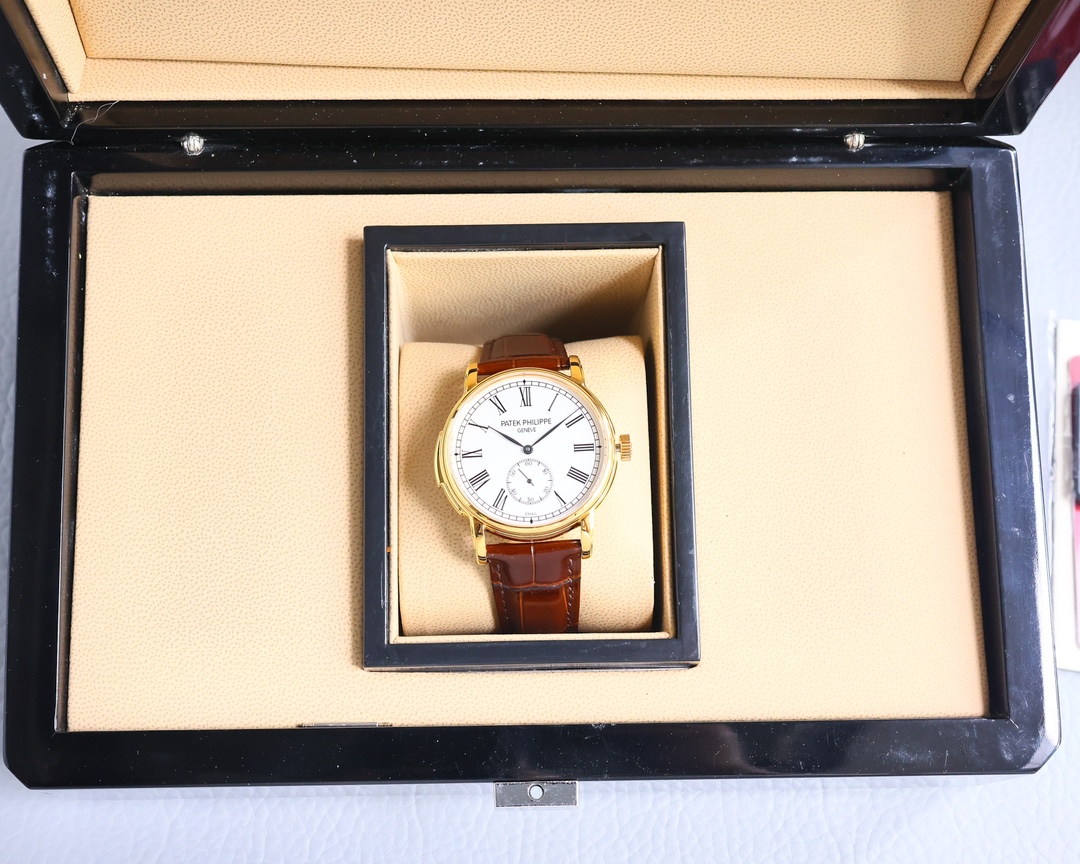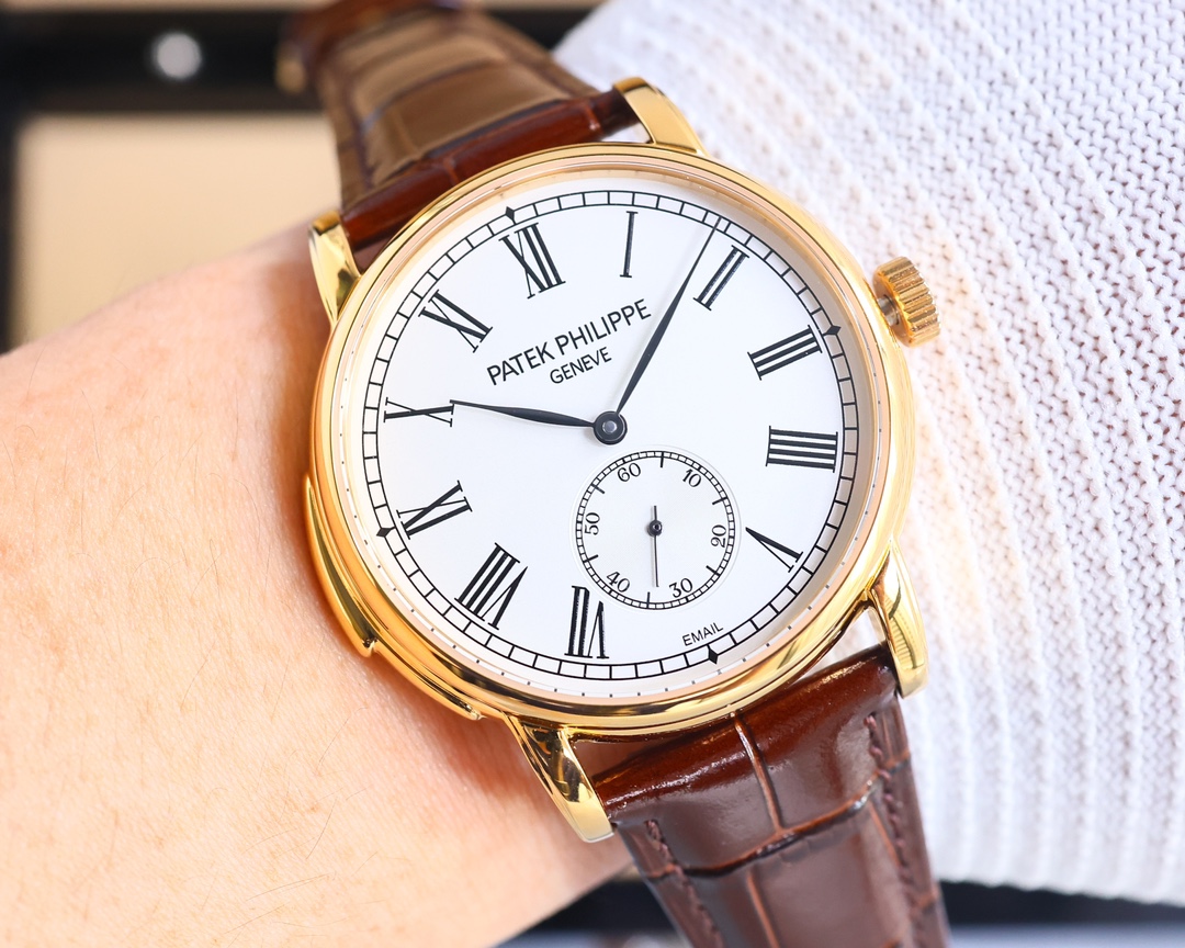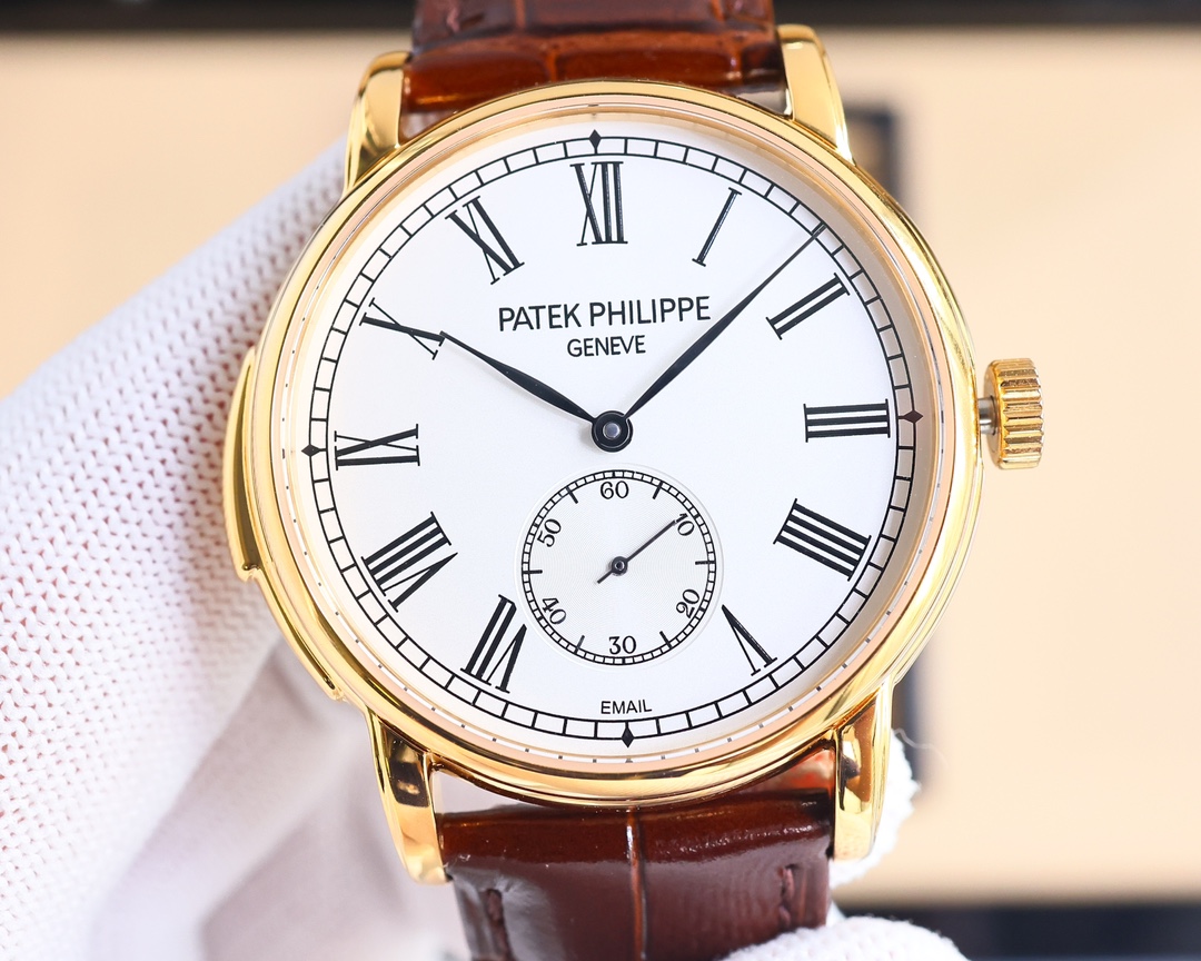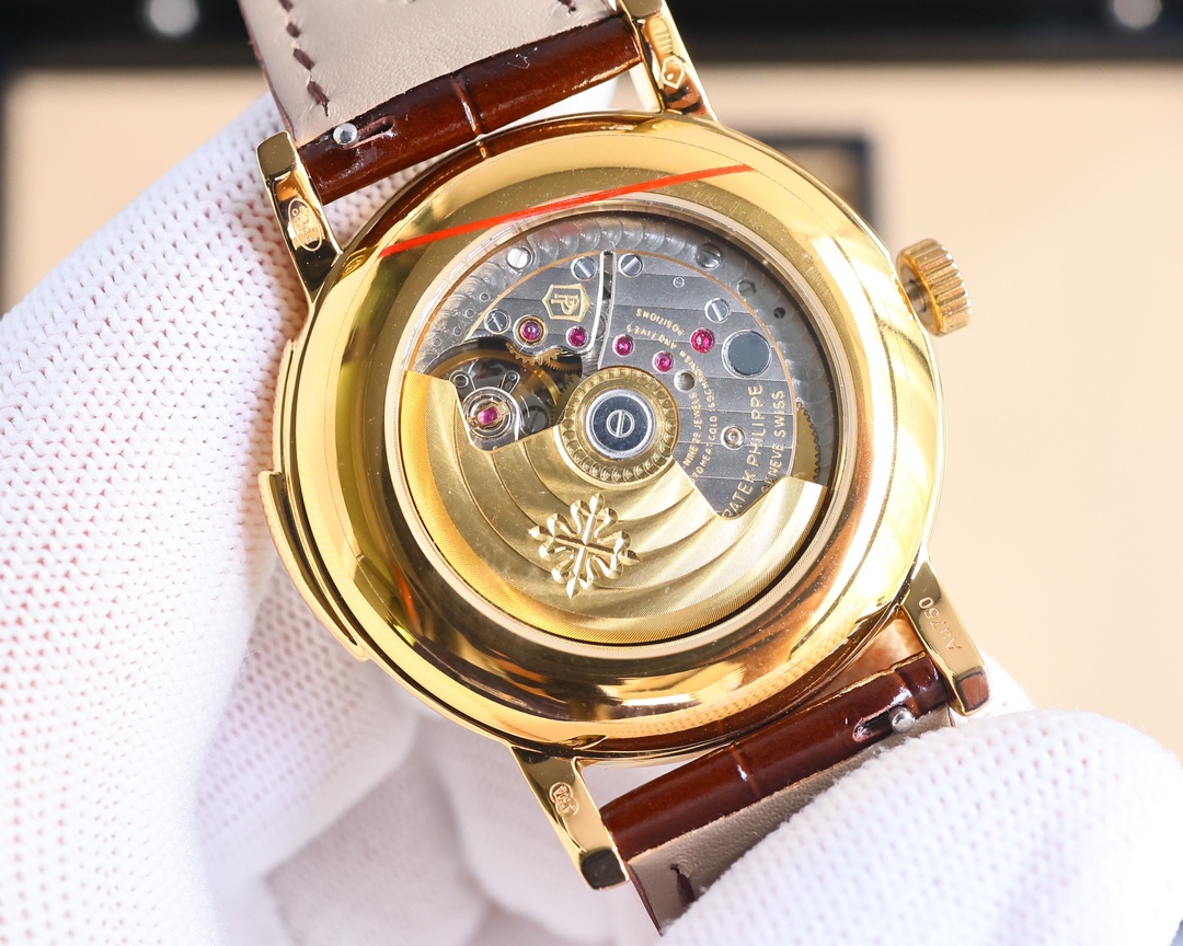 这款手表是AAAAA 1:1 质量 (非常棒). 使用了和原版一模一样的材料. 商标部分也保持了和百达翡丽/Patek Philippe一样. 图片拍摄是实物手表拍摄, 您所收到的实物保证和我们图片一模一样.