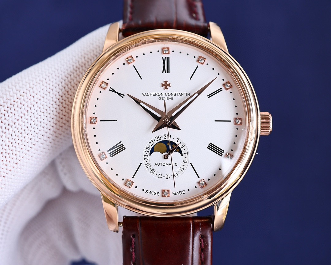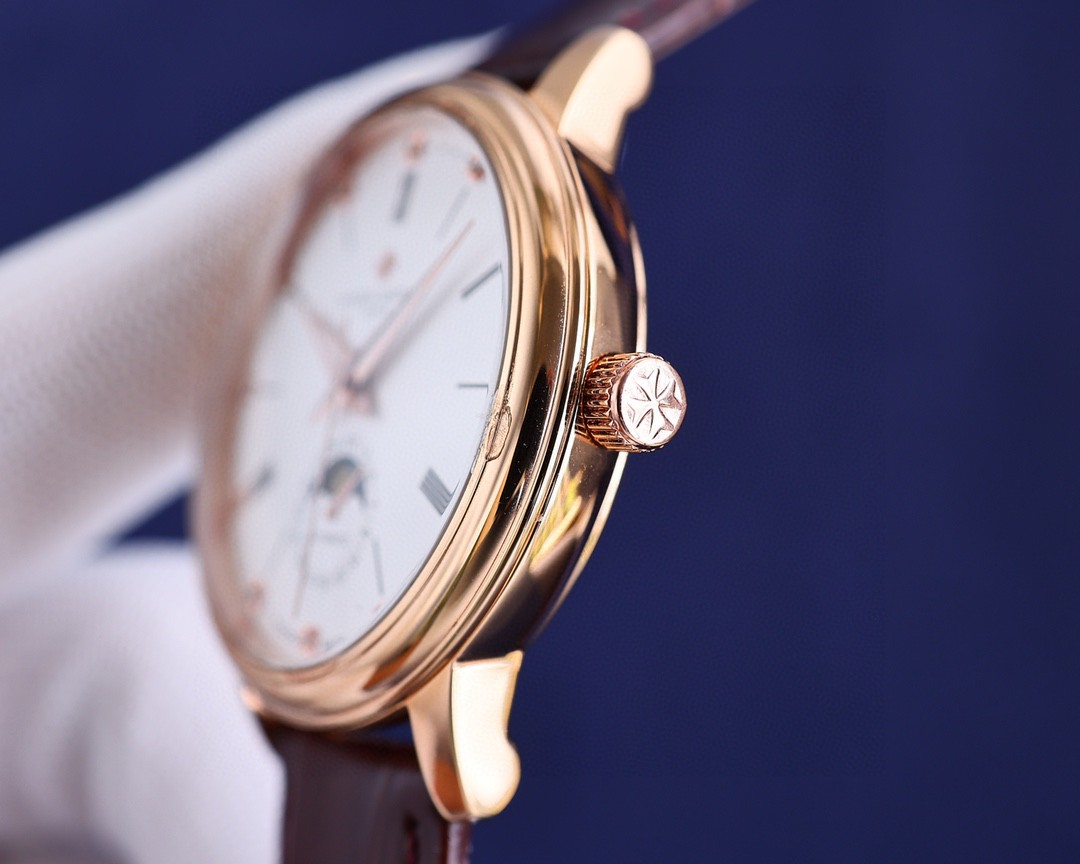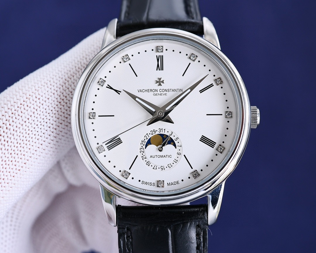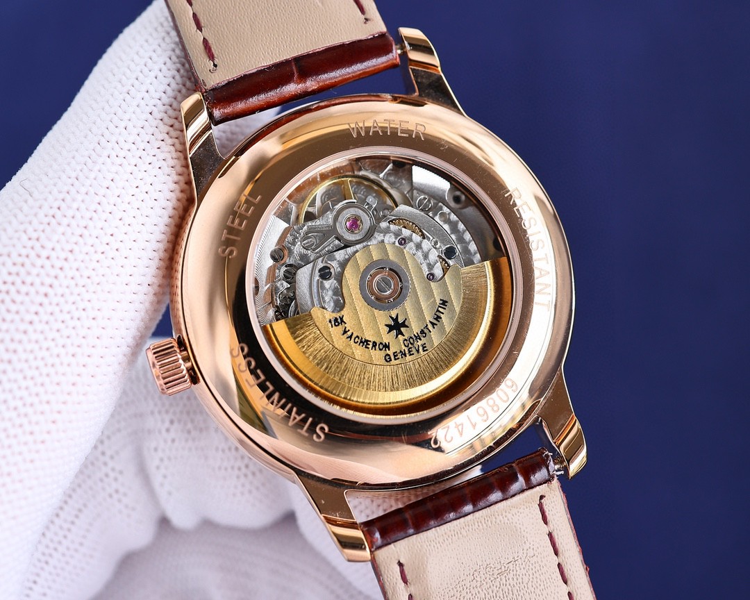 这款手表是AAAAA 1:1 质量 (非常棒). 使用了和原版一模一样的材料. 商标部分也保持了和江诗丹顿/Vacheron Constantin一样. 图片拍摄是实物手表拍摄, 您所收到的实物保证和我们图片一模一样.