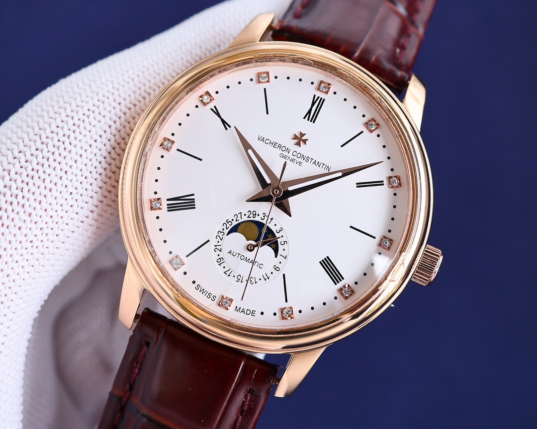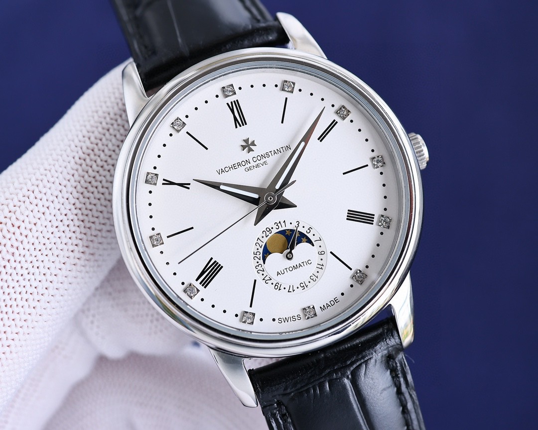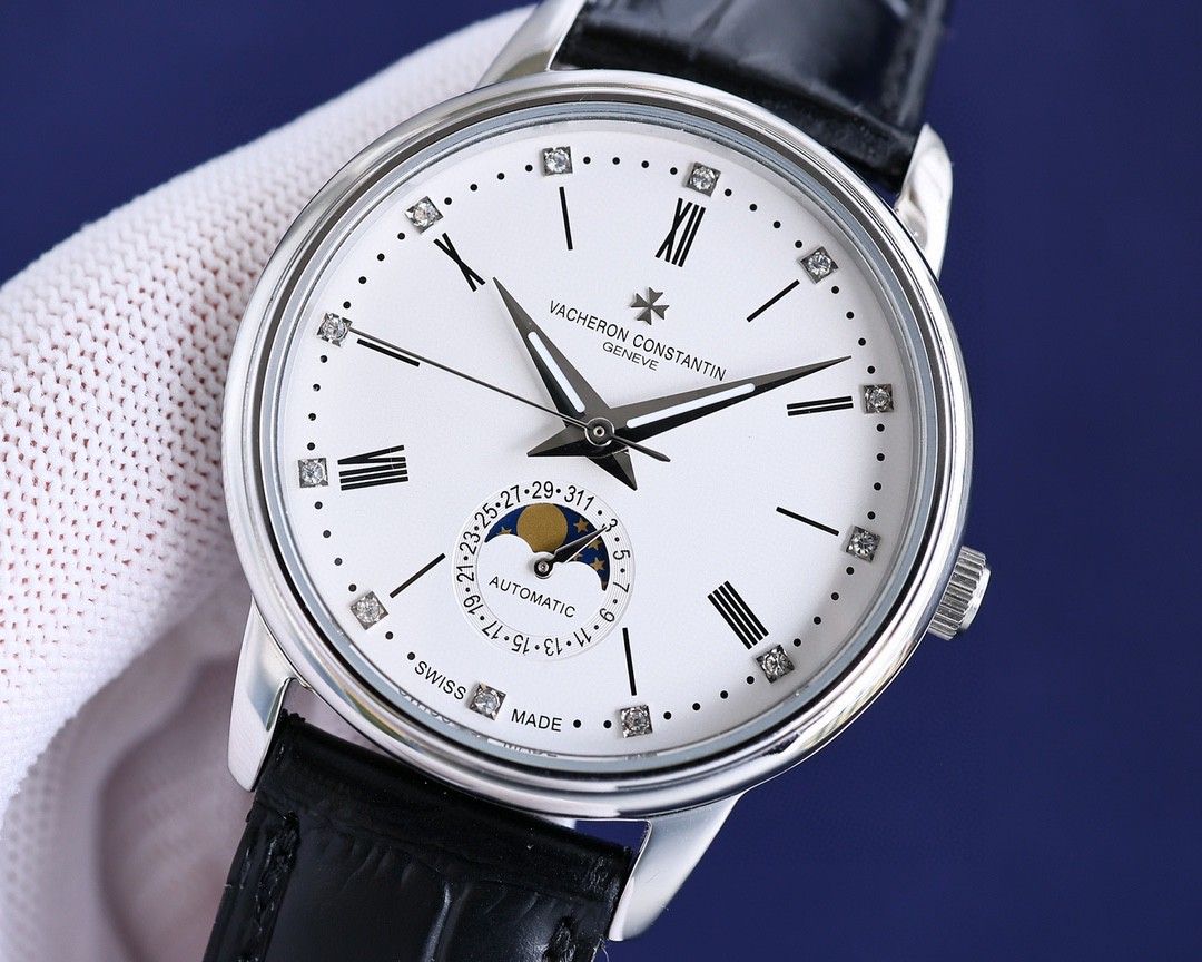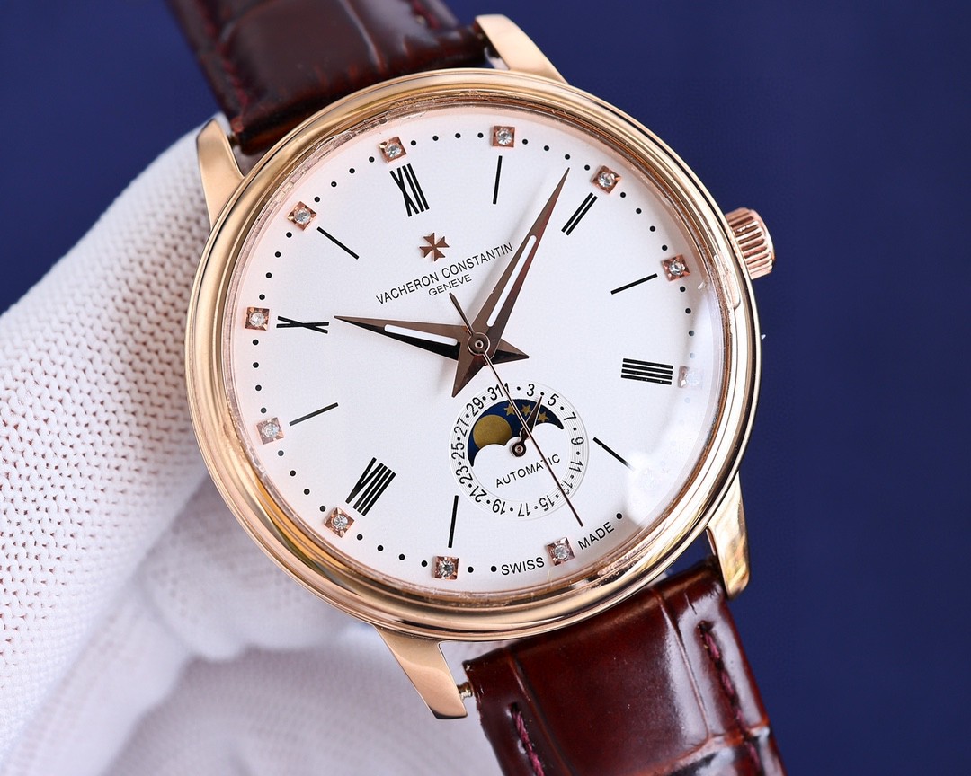 这款手表是AAAAA 1:1 质量 (非常棒). 使用了和原版一模一样的材料. 商标部分也保持了和江诗丹顿/Vacheron Constantin一样. 图片拍摄是实物手表拍摄, 您所收到的实物保证和我们图片一模一样.