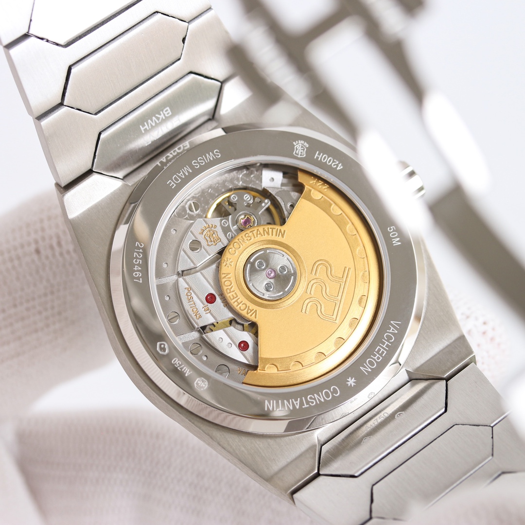 这款手表是AAAAA 1:1 质量 (非常棒). 使用了和原版一模一样的材料. 商标部分也保持了和江诗丹顿/Vacheron Constantin一样. 图片拍摄是实物手表拍摄, 您所收到的实物保证和我们图片一模一样.
