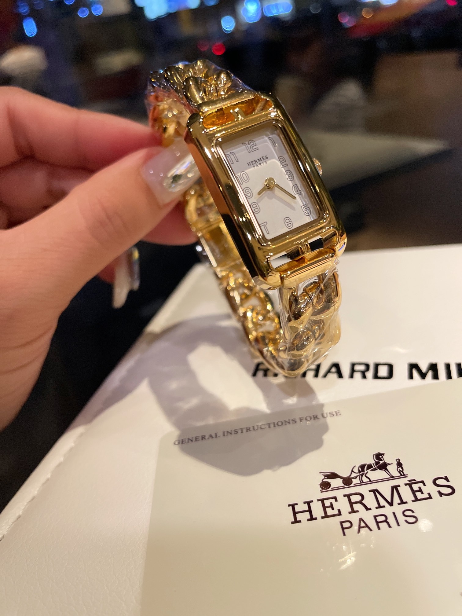 这款手表是AAAAA 1:1 质量 (非常棒). 使用了和原版一模一样的材料. 商标部分也保持了和爱马仕/Hermes一样. 图片拍摄是实物手表拍摄, 您所收到的实物保证和我们图片一模一样.