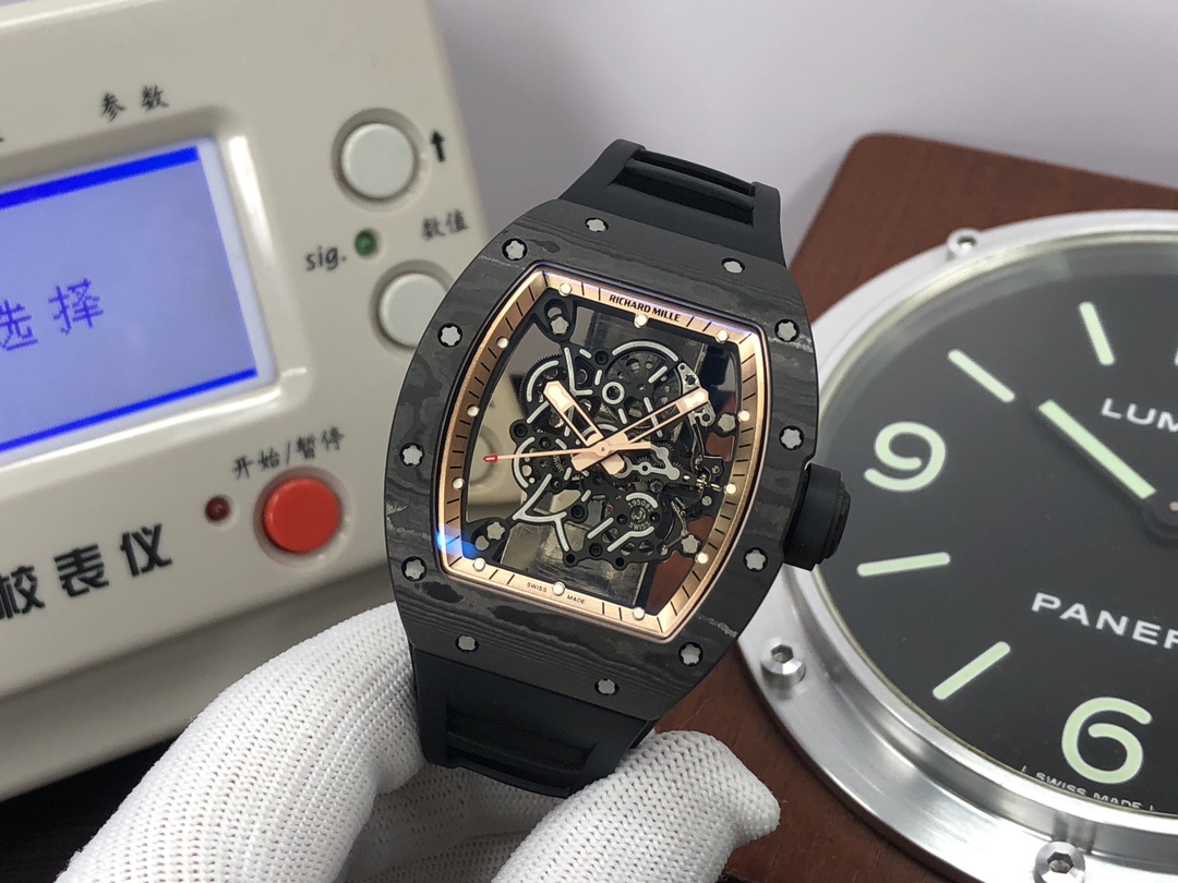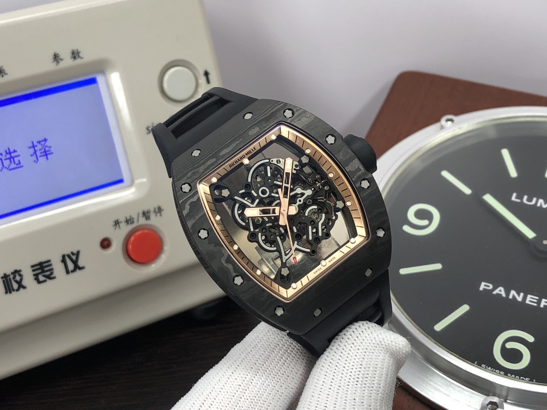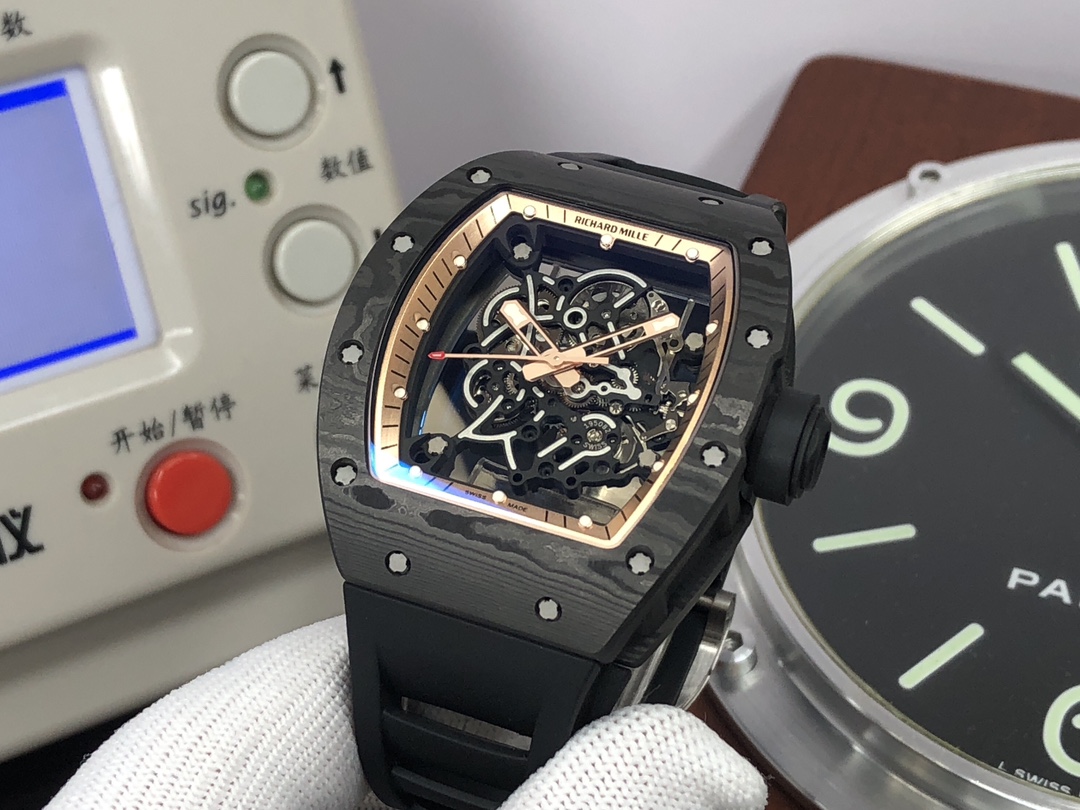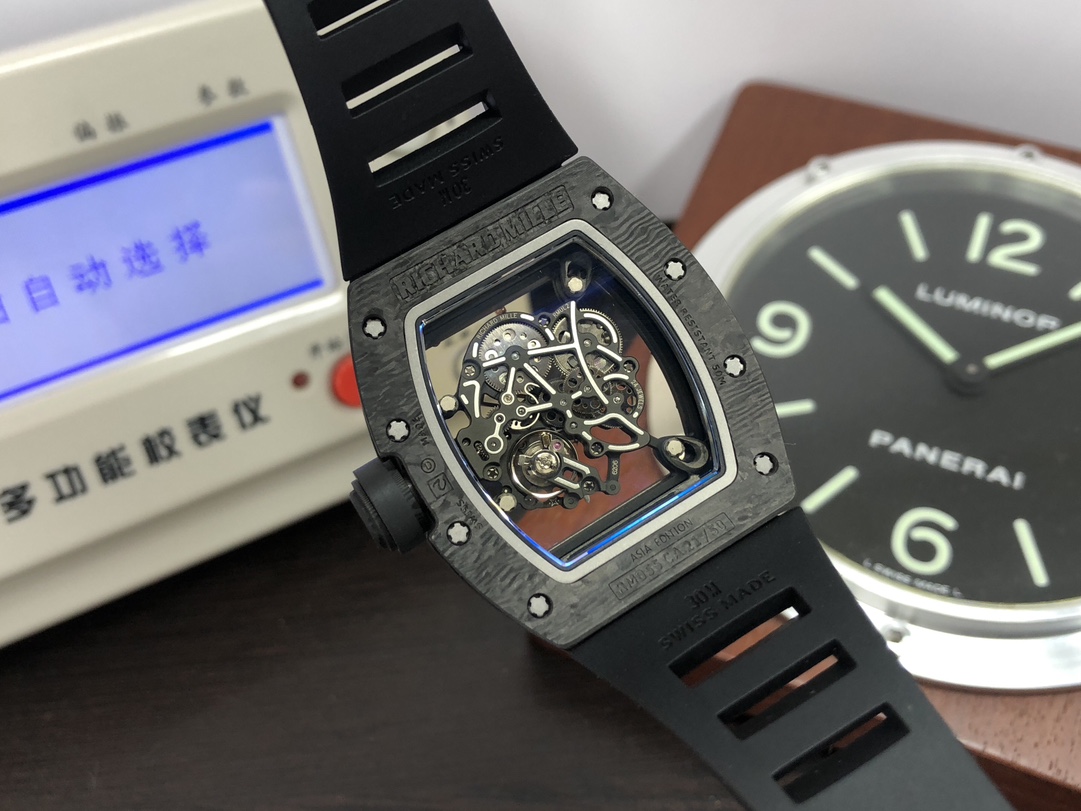这款手表是AAAAA 1:1 质量 (非常棒). 使用了和原版一模一样的材料. 商标部分也保持了和理查德·米尔/Richard Mille一样. 图片拍摄是实物手表拍摄, 您所收到的实物保证和我们图片一模一样.