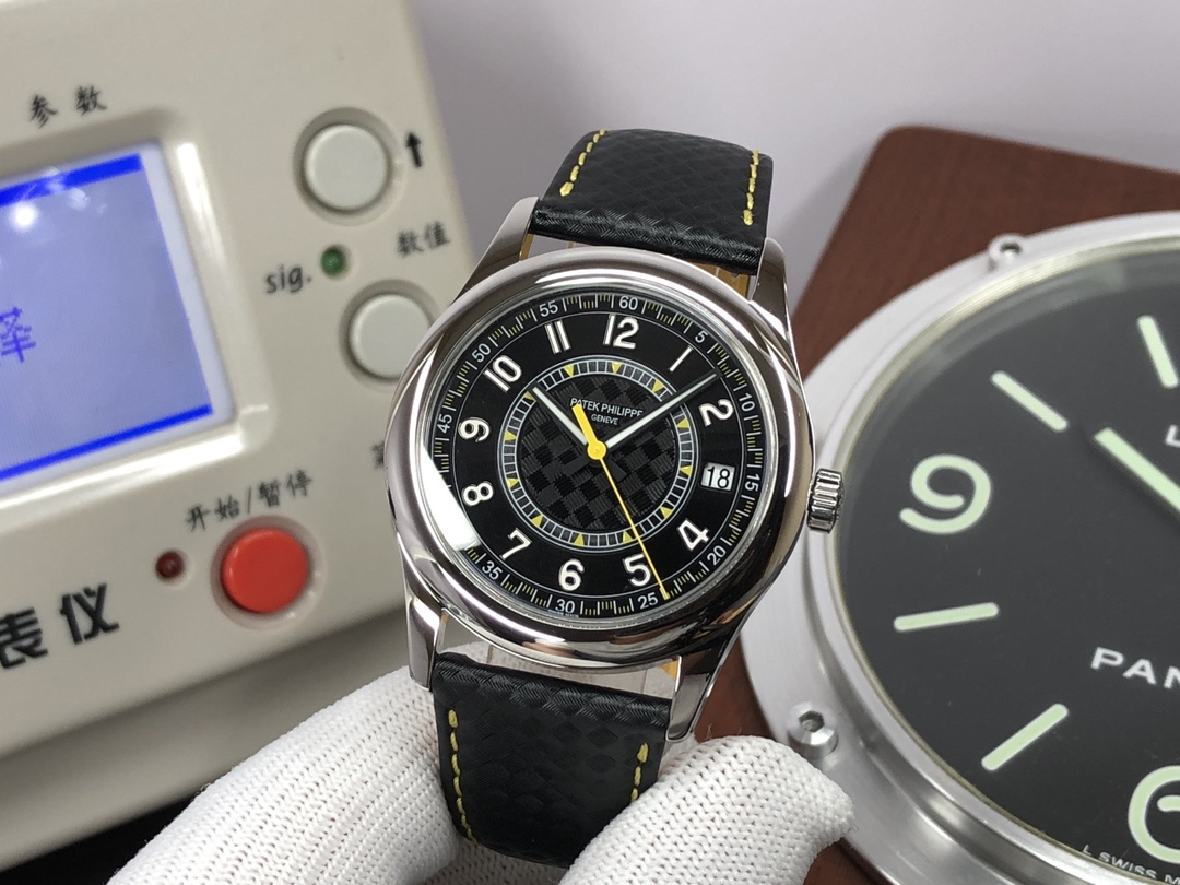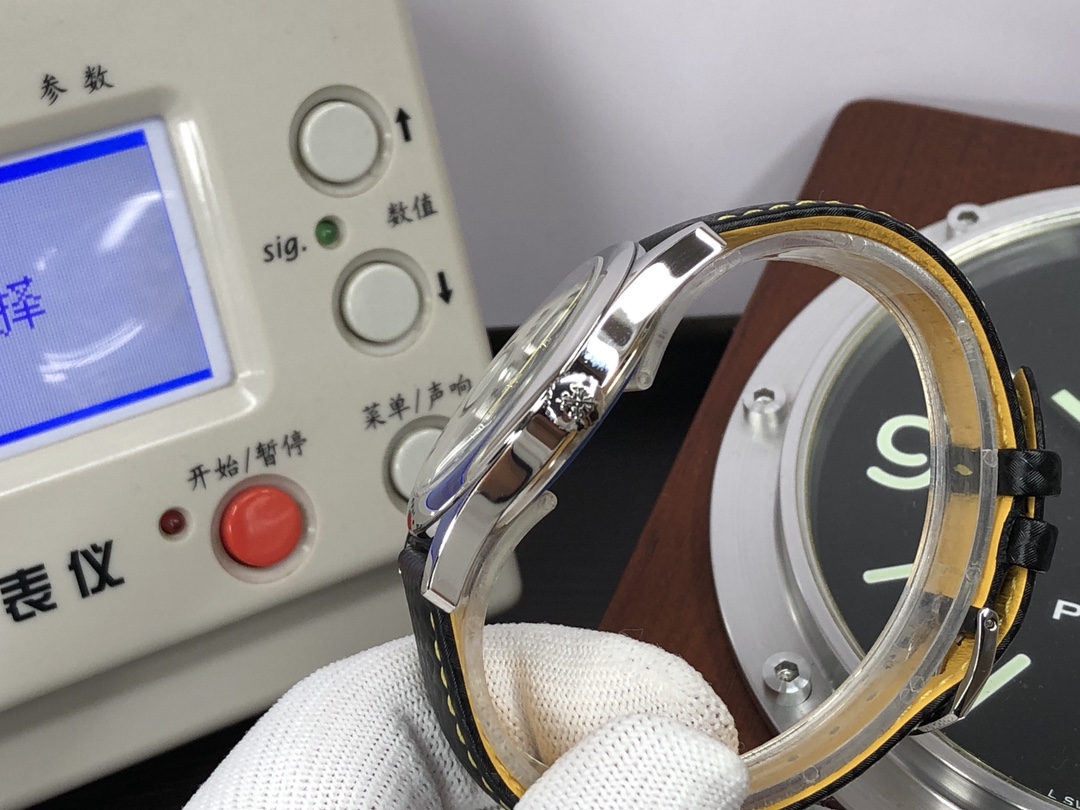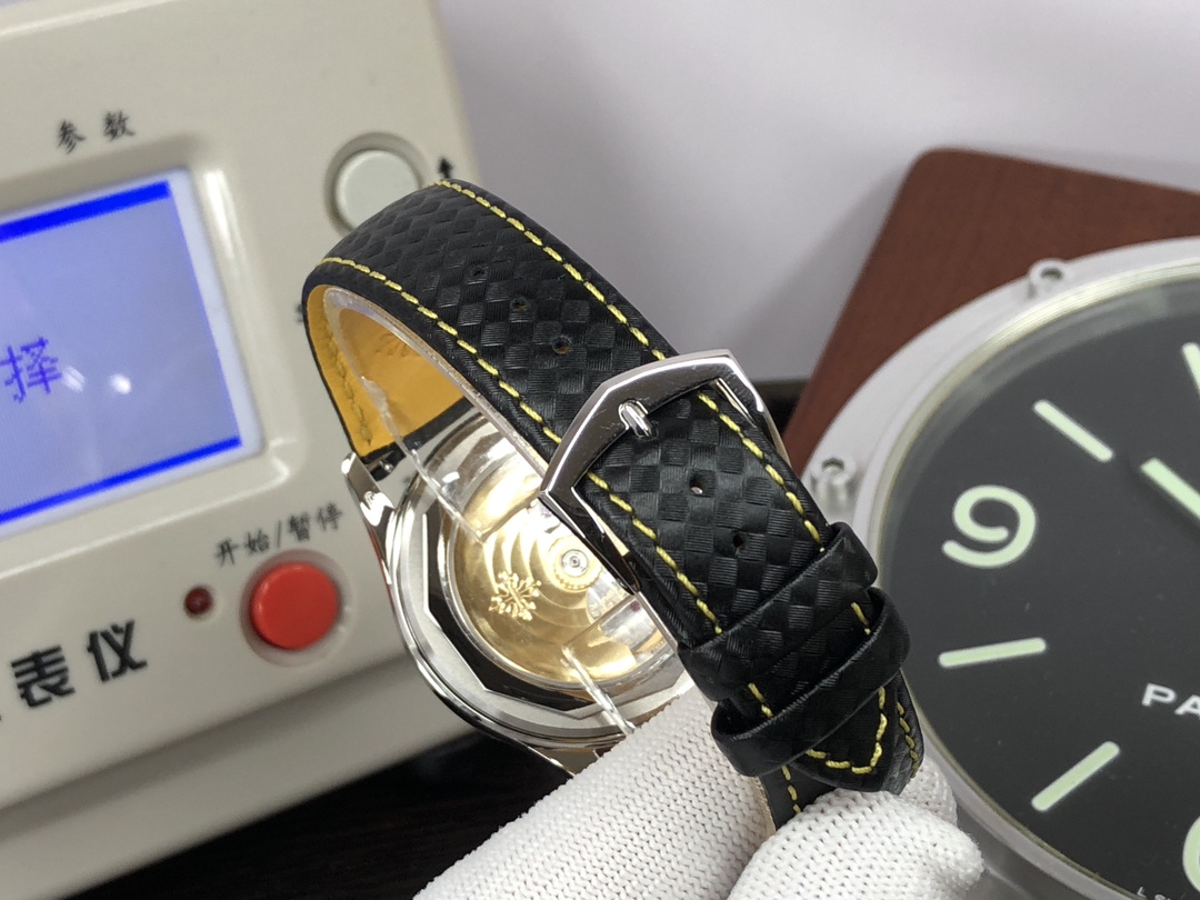 这款手表是AAAAA 1:1 质量 (非常棒). 使用了和原版一模一样的材料. 商标部分也保持了和百达翡丽/Patek Philippe一样. 图片拍摄是实物手表拍摄, 您所收到的实物保证和我们图片一模一样.