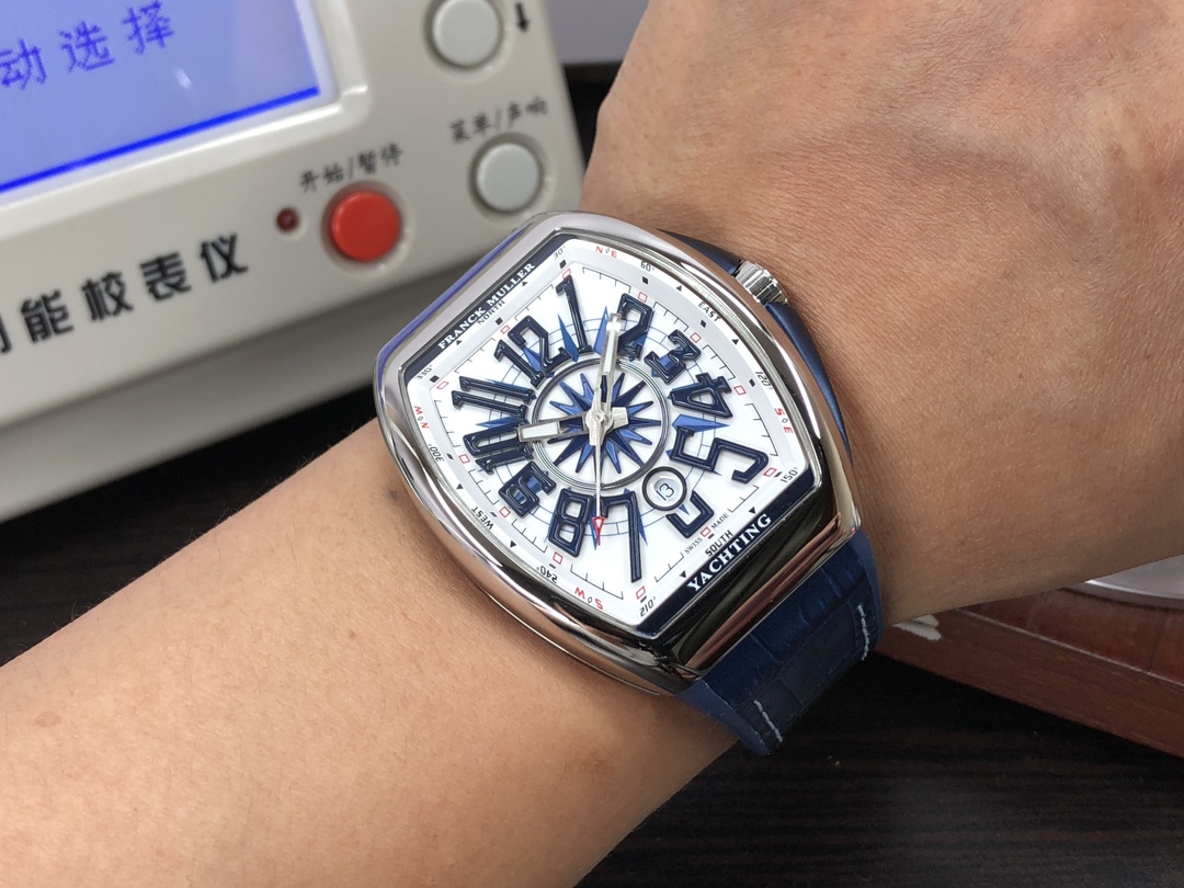 这款手表是AAAAA 1:1 质量 (非常棒). 使用了和原版一模一样的材料. 商标部分也保持了和Franck Mulle一样. 图片拍摄是实物手表拍摄, 您所收到的实物保证和我们图片一模一样.