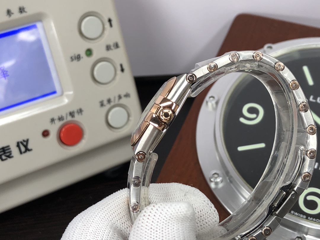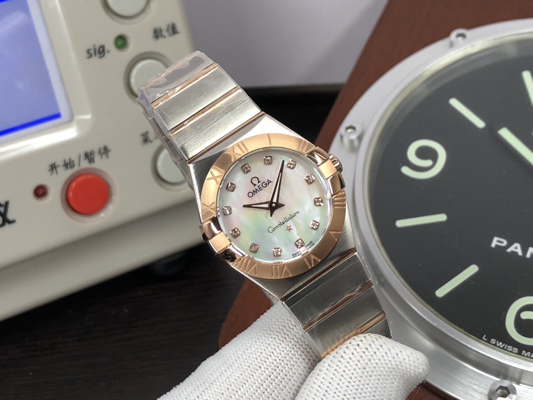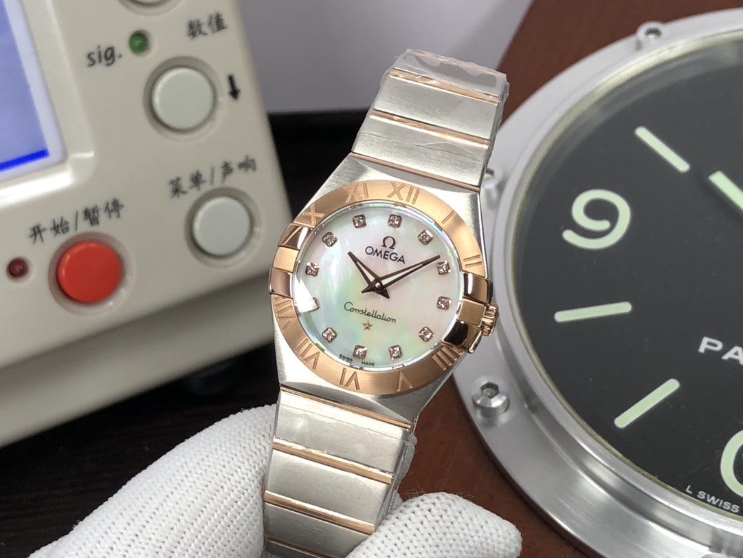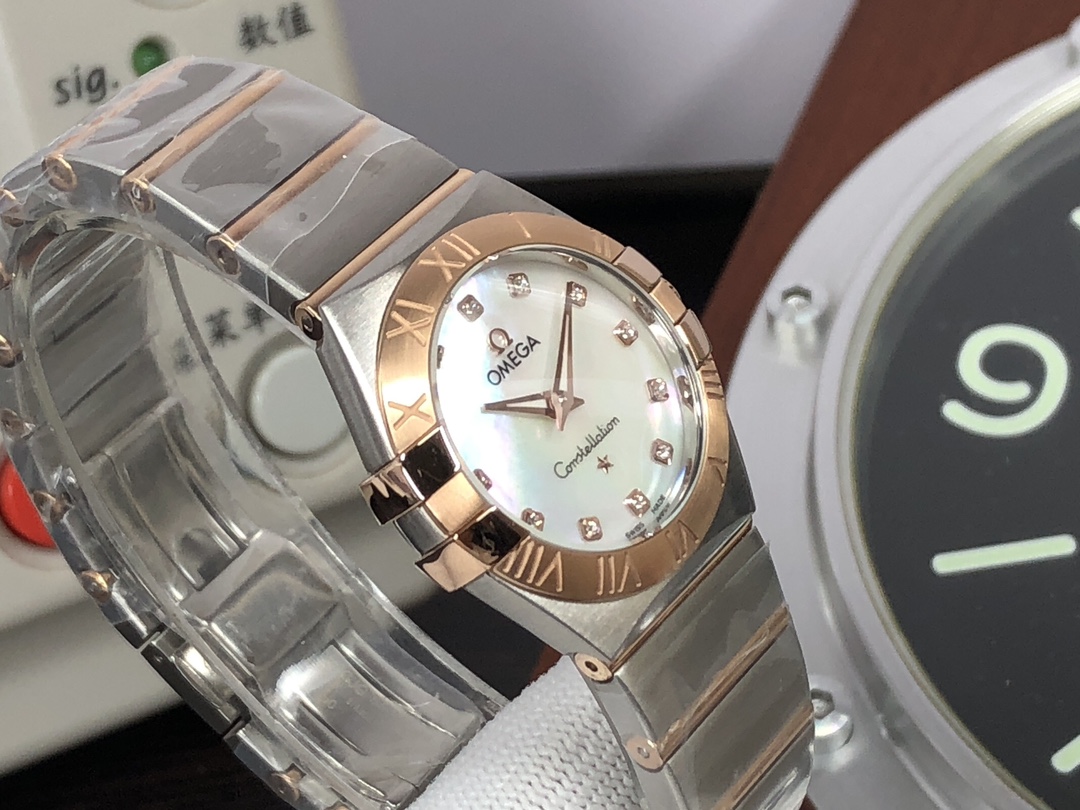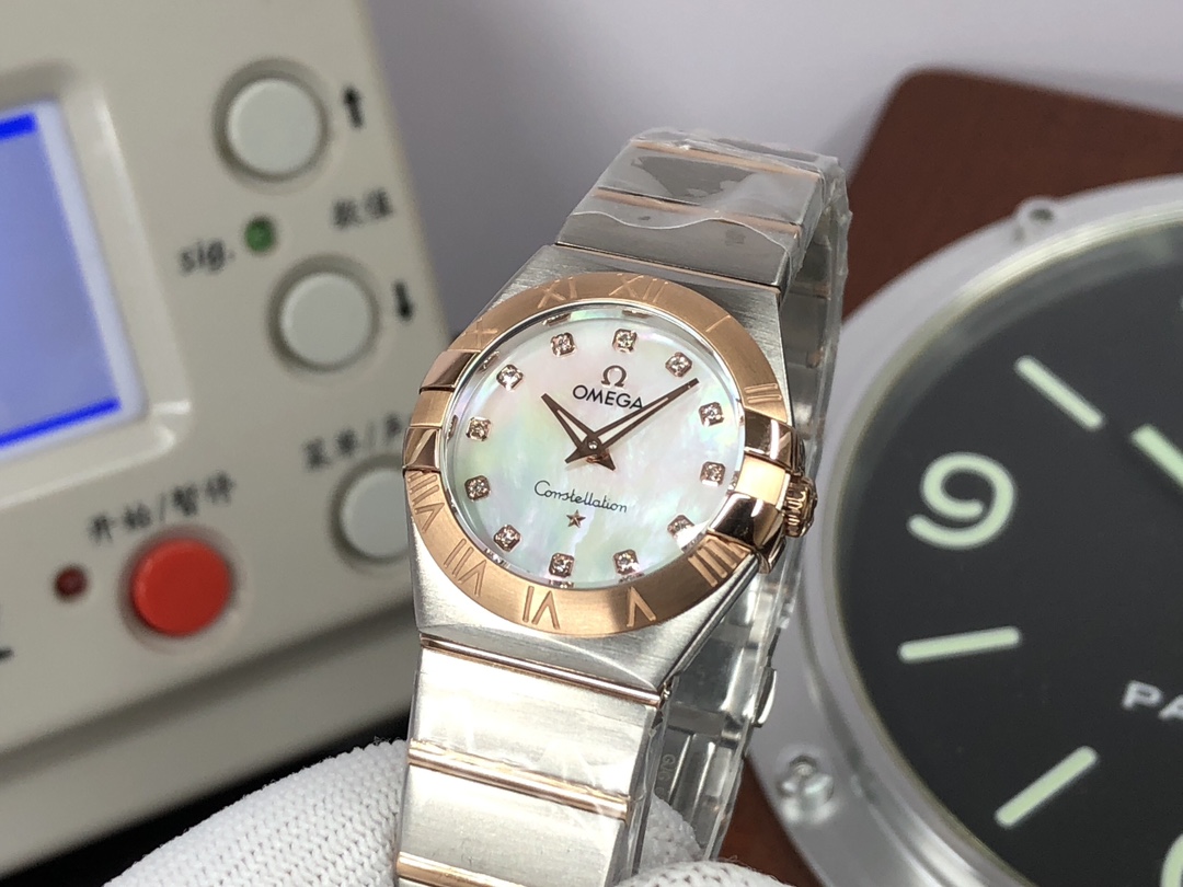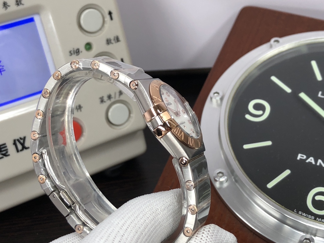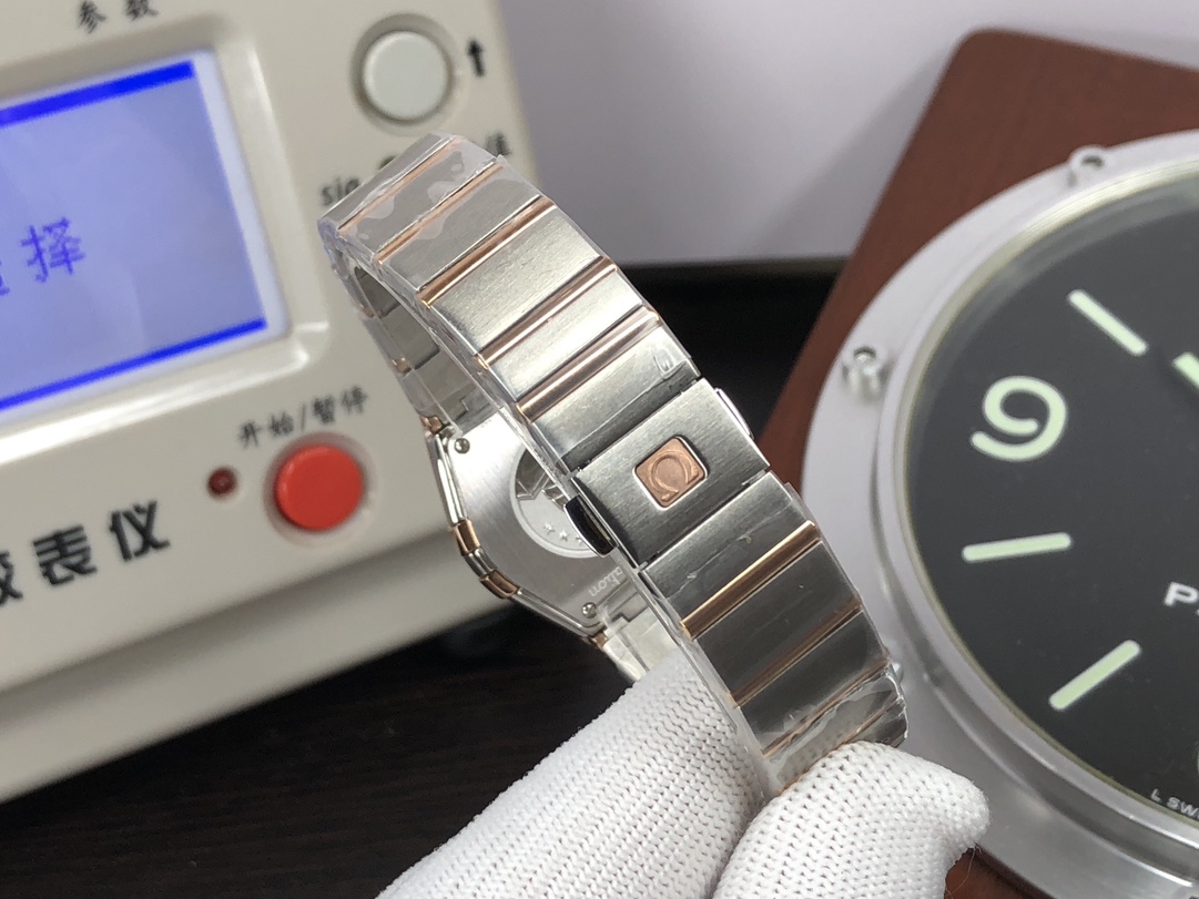 这款手表是AAAAA 1:1 质量 (非常棒). 使用了和原版一模一样的材料. 商标部分也保持了和欧米茄/Omega一样. 图片拍摄是实物手表拍摄, 您所收到的实物保证和我们图片一模一样.