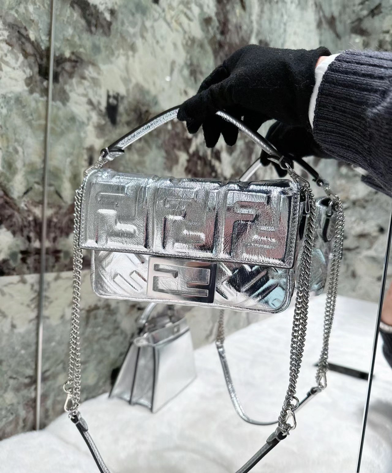 这款包包是AAAAA 1:1 质量 (非常棒). 使用了和原版一模一样的材料. 商标部分也保持了和芬迪/Fendi一样. 图片拍摄是实物包包拍摄, 您所收到的实物保证和我们图片一模一样.