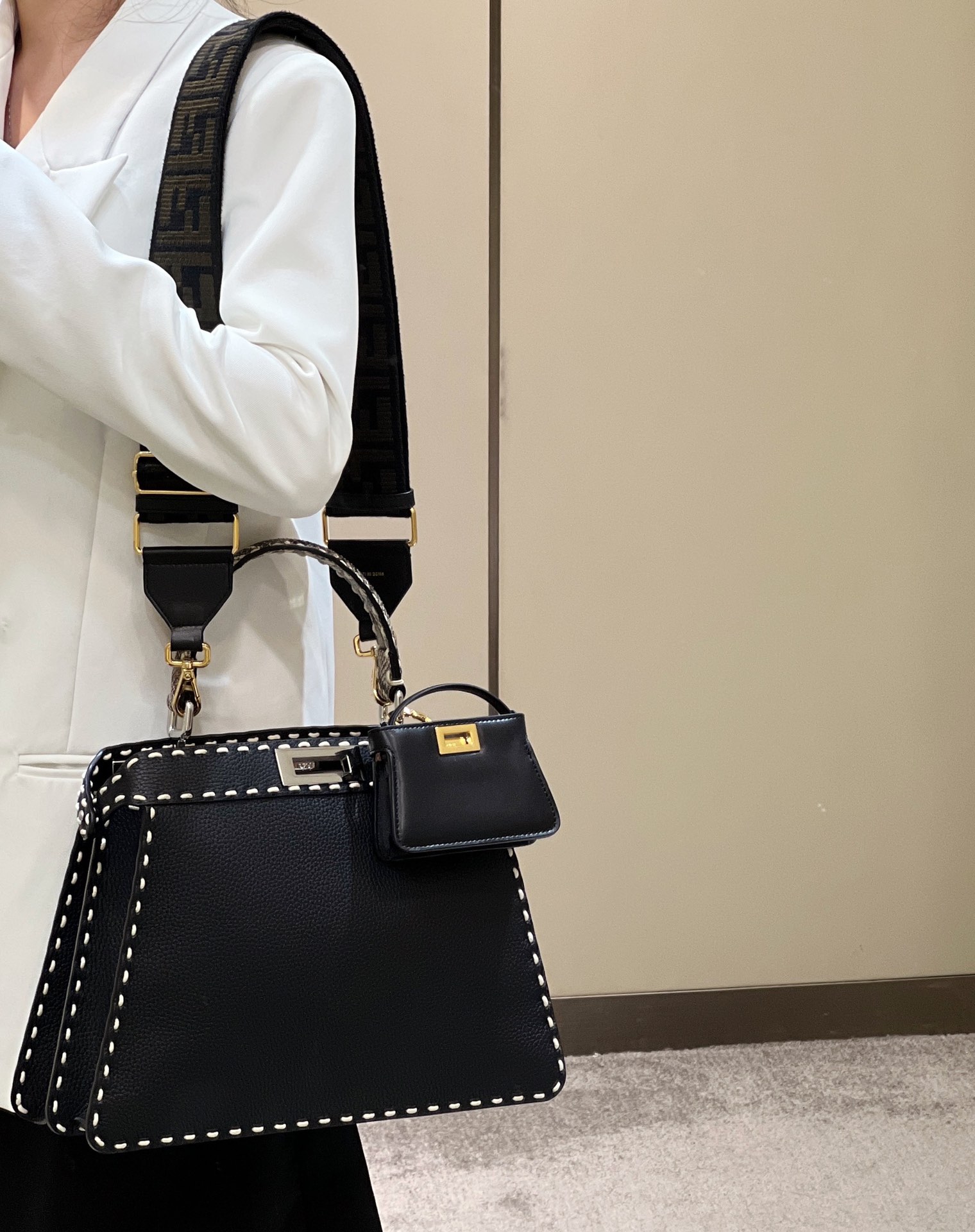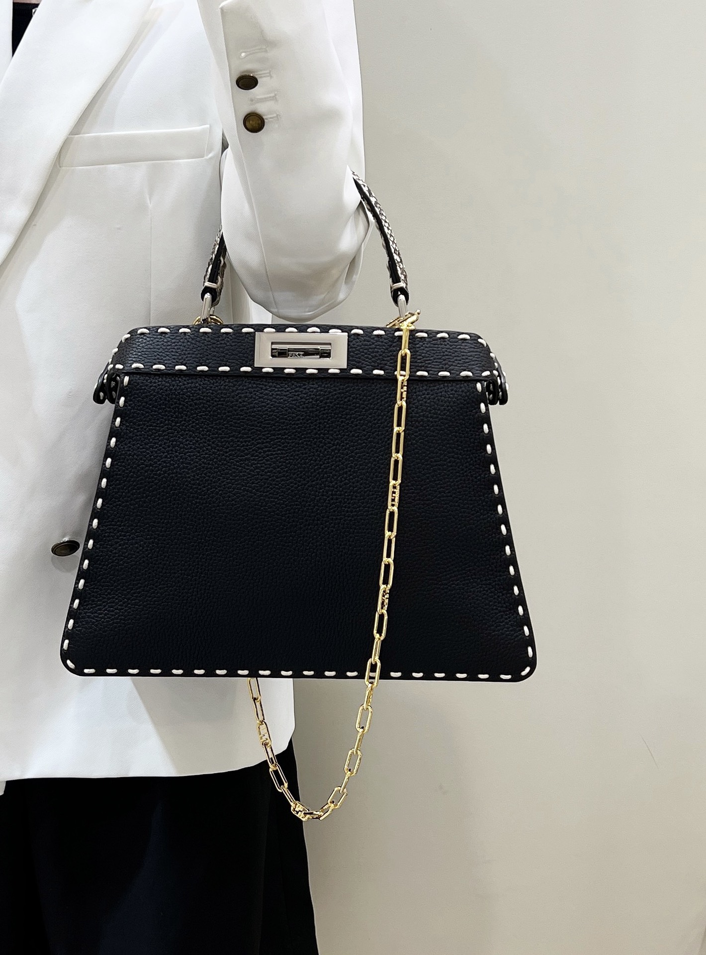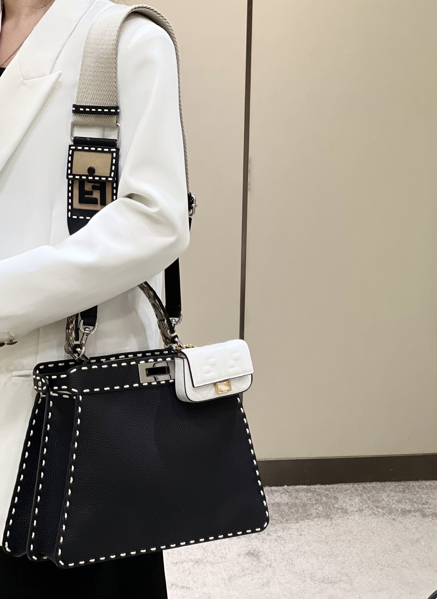 这款包包是AAAAA 1:1 质量 (非常棒). 使用了和原版一模一样的材料. 商标部分也保持了和芬迪/Fendi一样. 图片拍摄是实物包包拍摄, 您所收到的实物保证和我们图片一模一样.