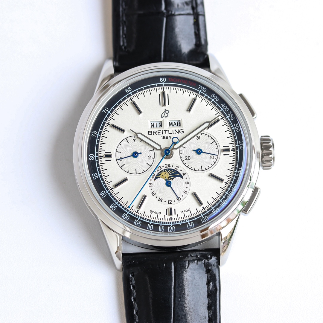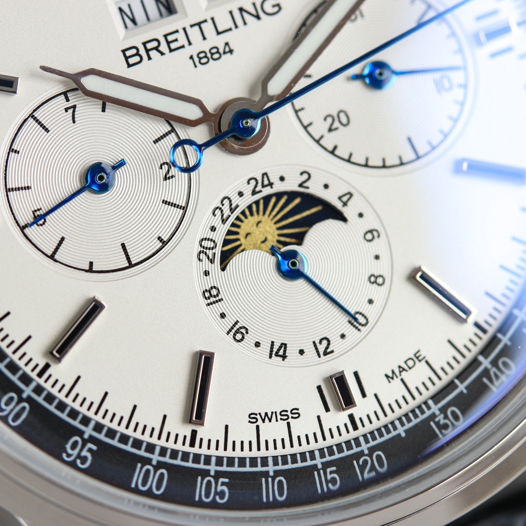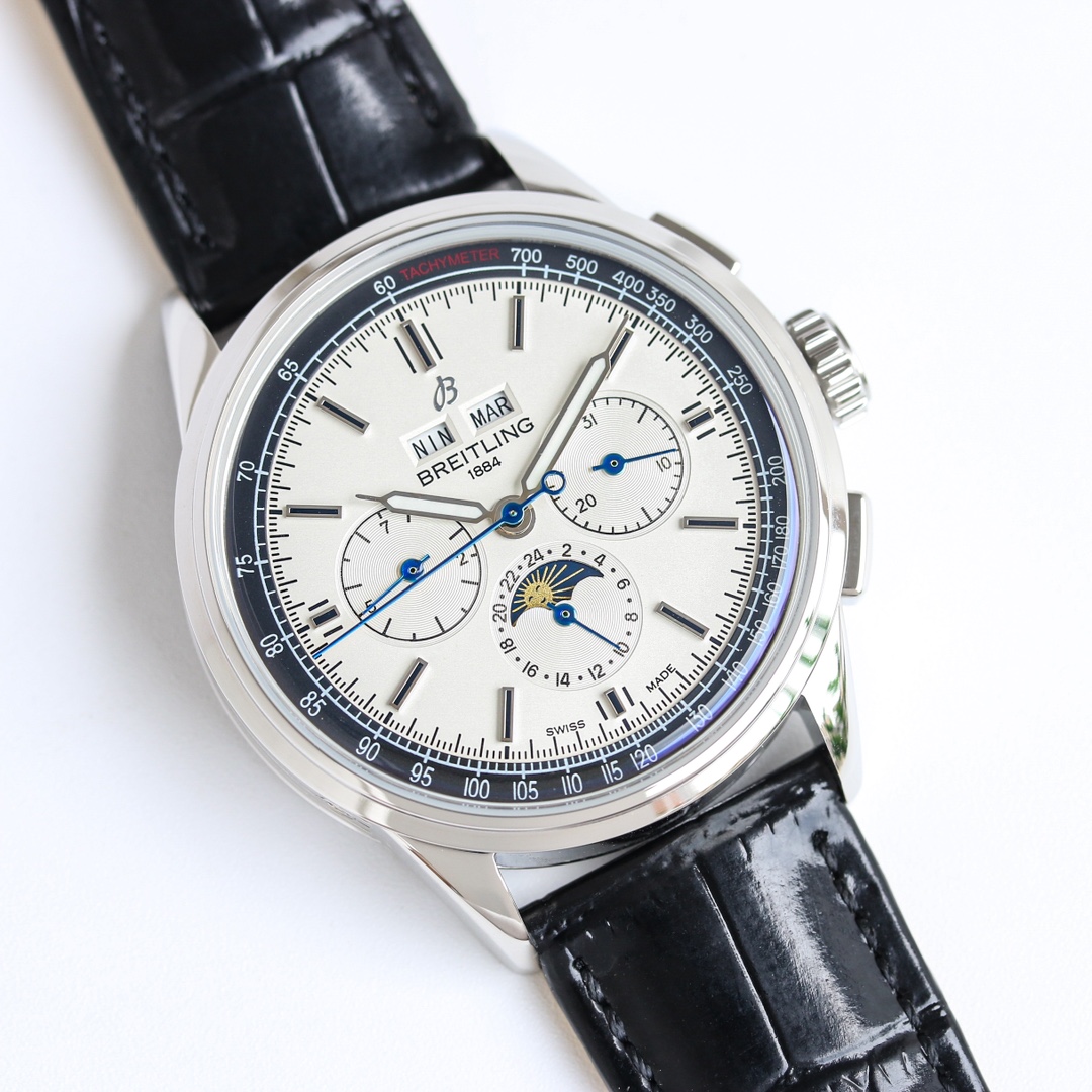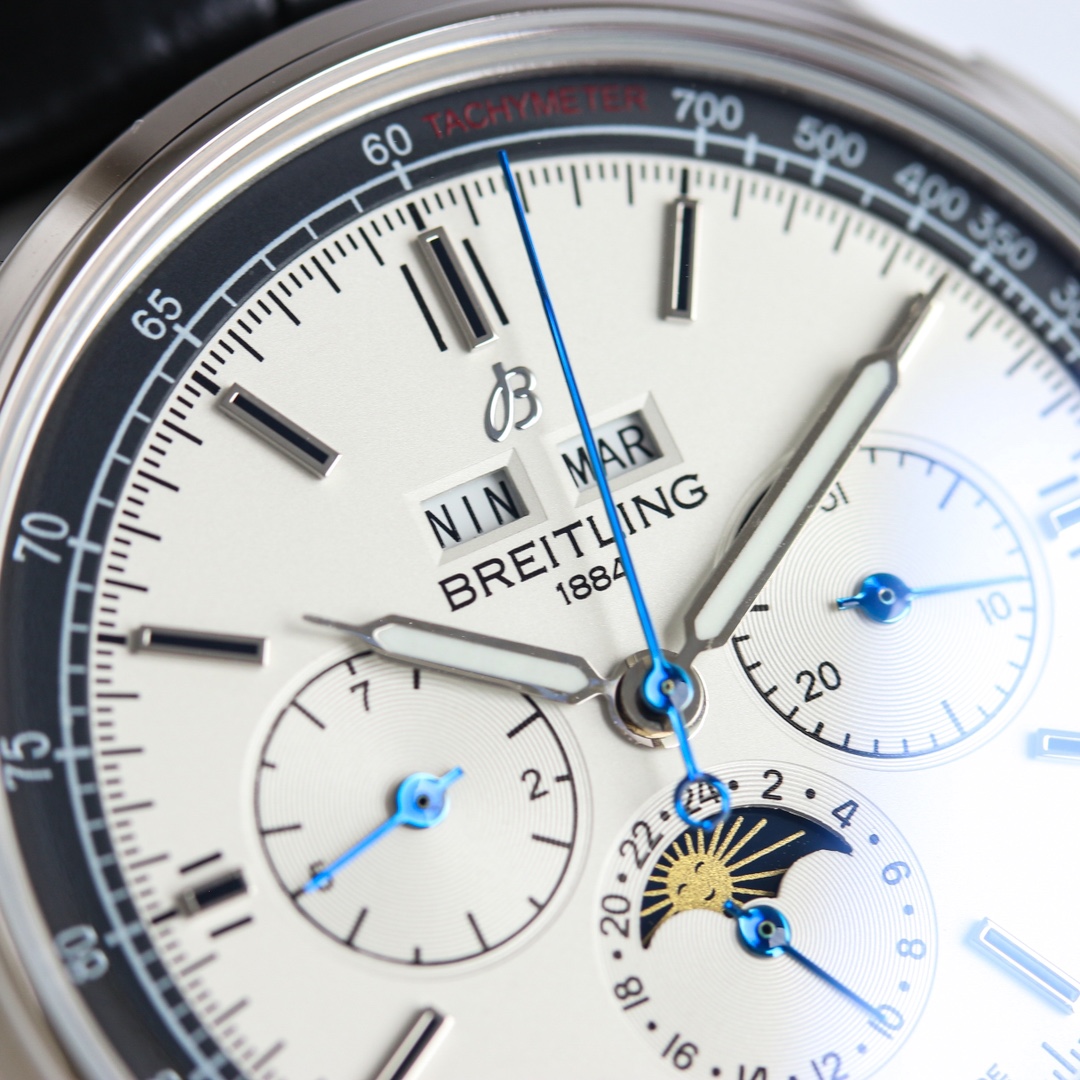 这款手表是AAAAA 1:1 质量 (非常棒). 使用了和原版一模一样的材料. 商标部分也保持了和Breitling一样. 图片拍摄是实物手表拍摄, 您所收到的实物保证和我们图片一模一样.
