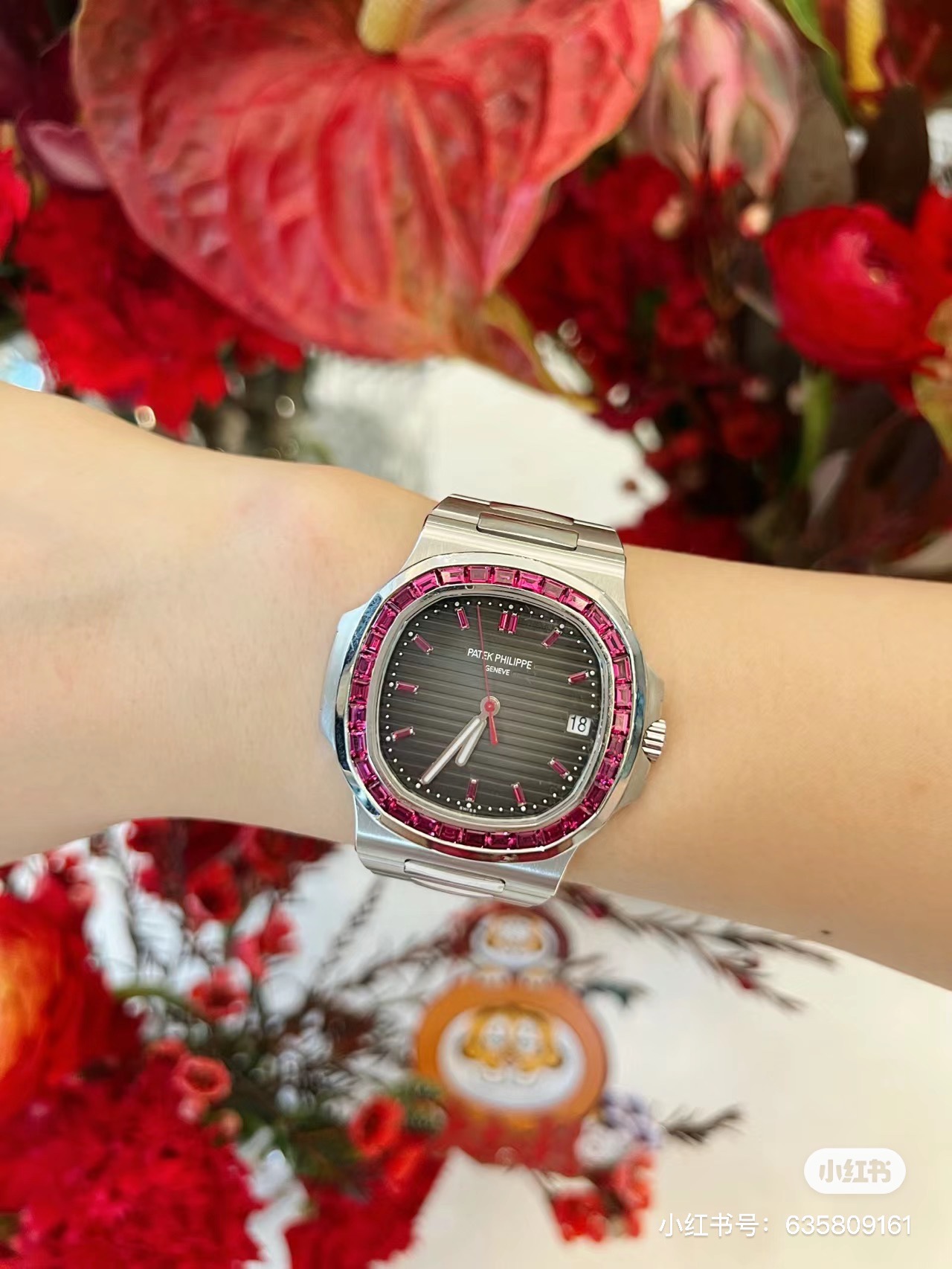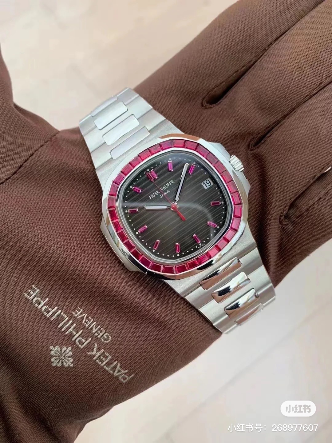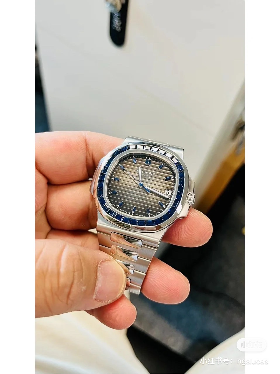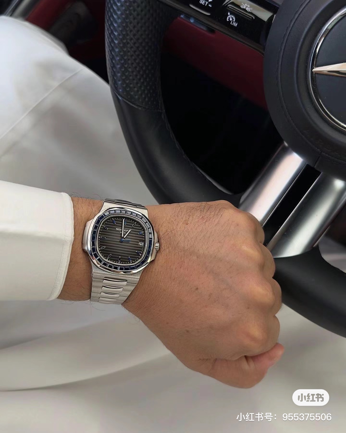 这款手表是AAAAA 1:1 质量 (非常棒). 使用了和原版一模一样的材料. 商标部分也保持了和百达翡丽/Patek Philippe一样. 图片拍摄是实物手表拍摄, 您所收到的实物保证和我们图片一模一样.