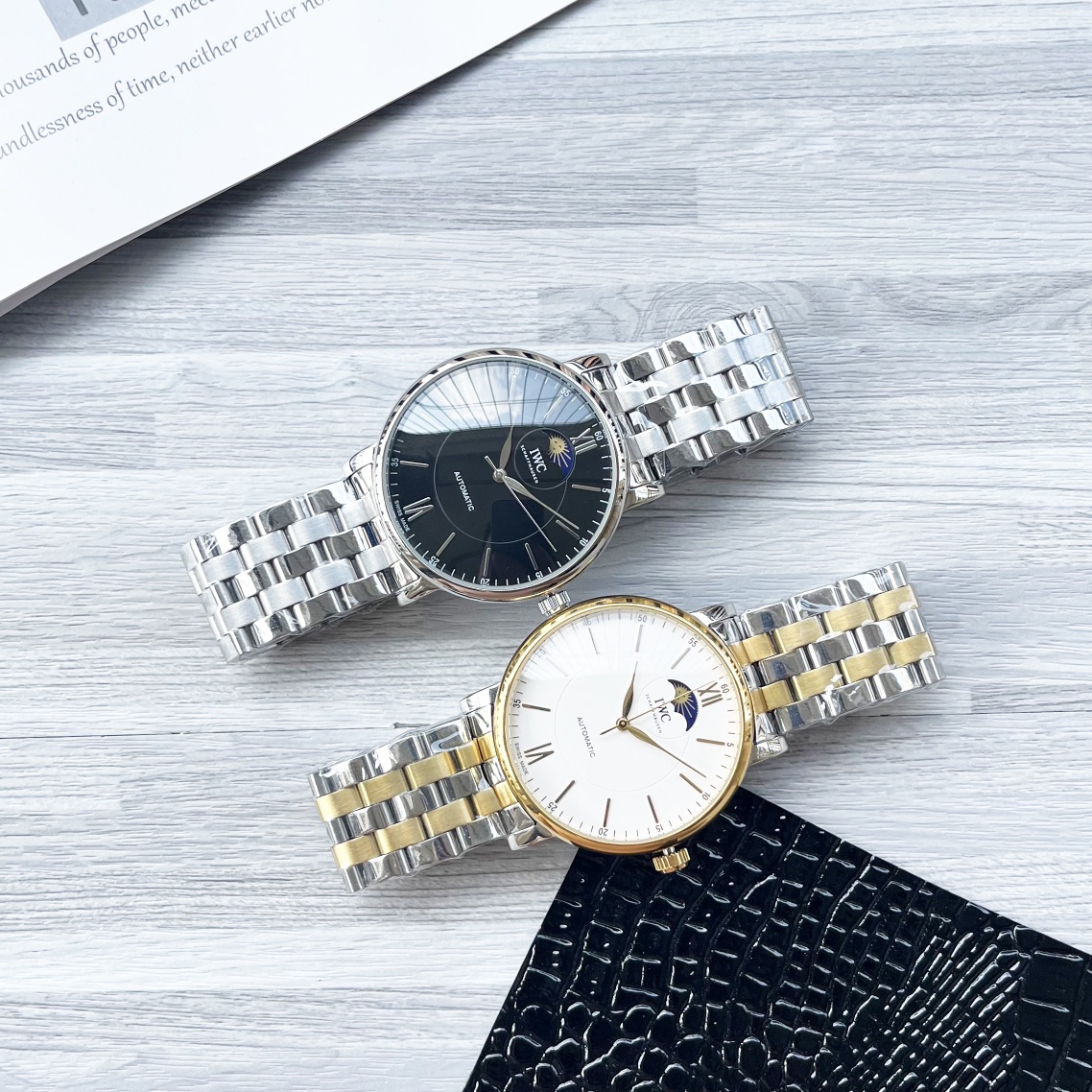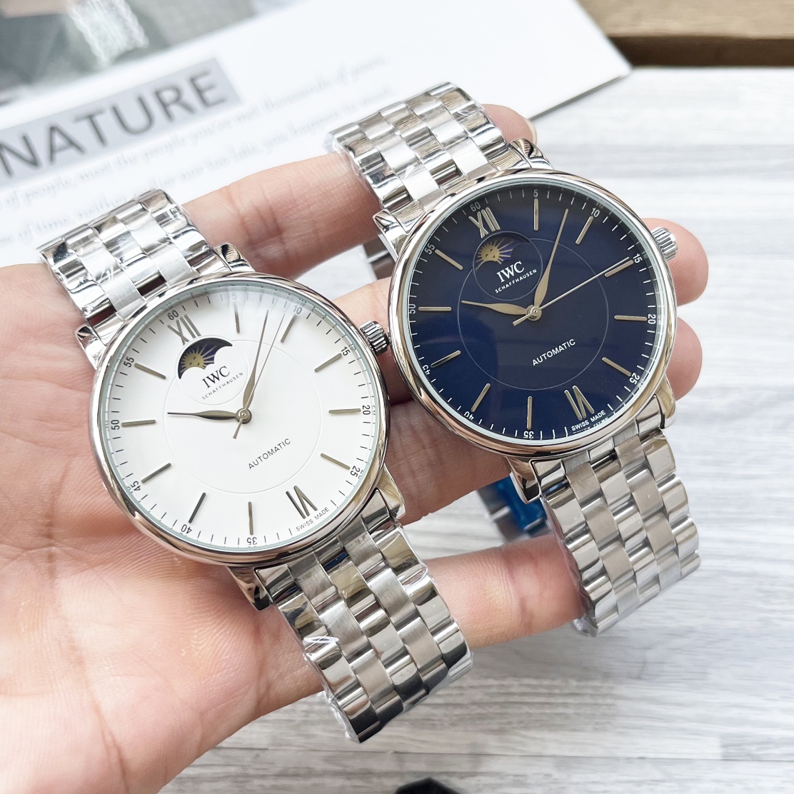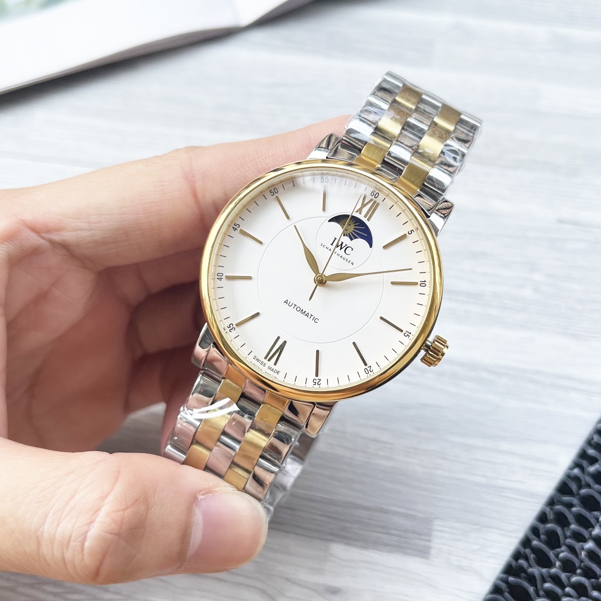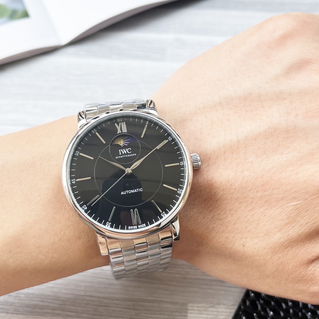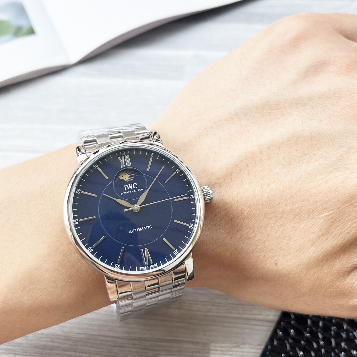 这款手表是AAAAA 1:1 质量 (非常棒). 使用了和原版一模一样的材料. 商标部分也保持了和万国表/IWC Schaffhausen一样. 图片拍摄是实物手表拍摄, 您所收到的实物保证和我们图片一模一样.