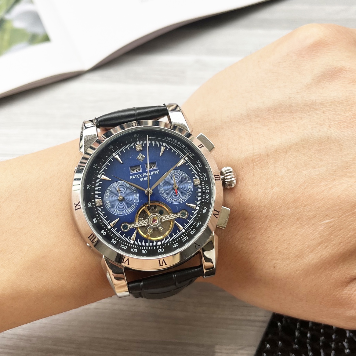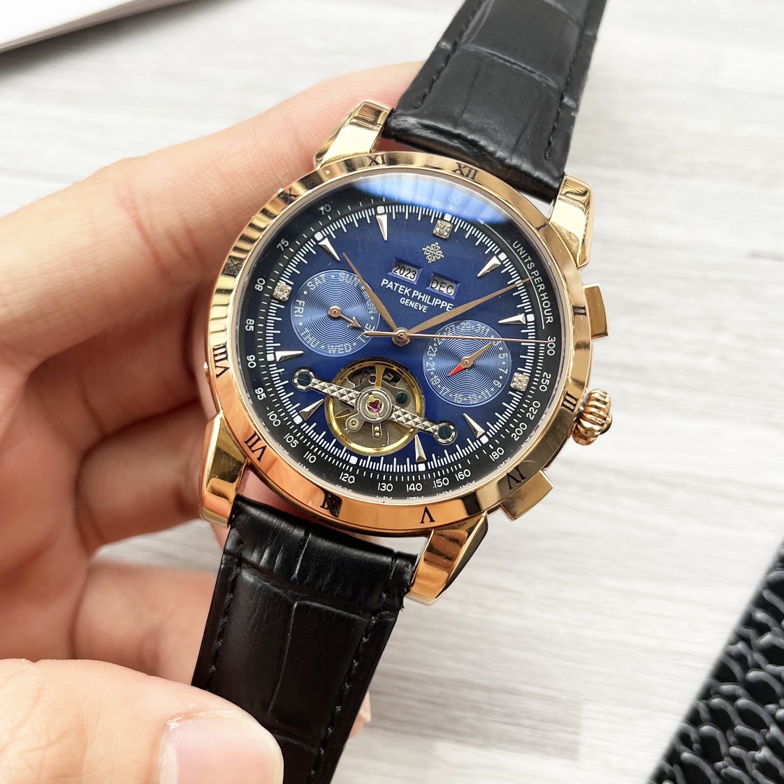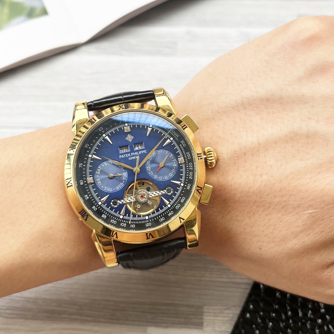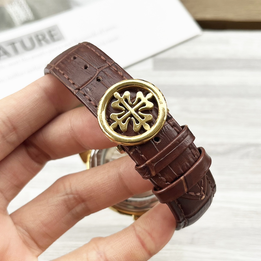 这款手表是AAAAA 1:1 质量 (非常棒). 使用了和原版一模一样的材料. 商标部分也保持了和百达翡丽/Patek Philippe一样. 图片拍摄是实物手表拍摄, 您所收到的实物保证和我们图片一模一样.