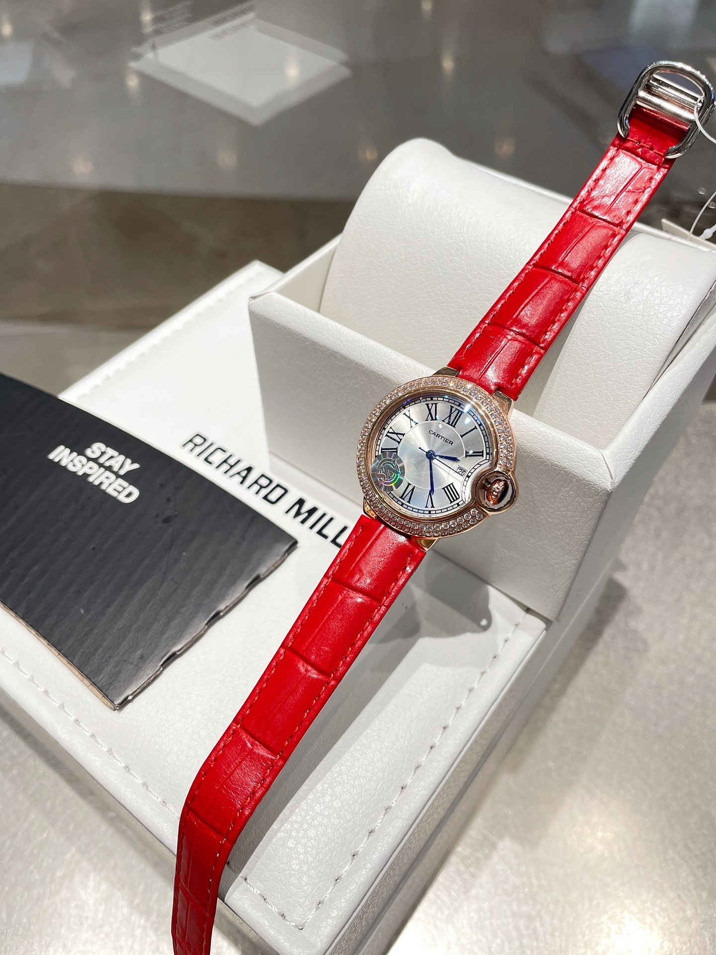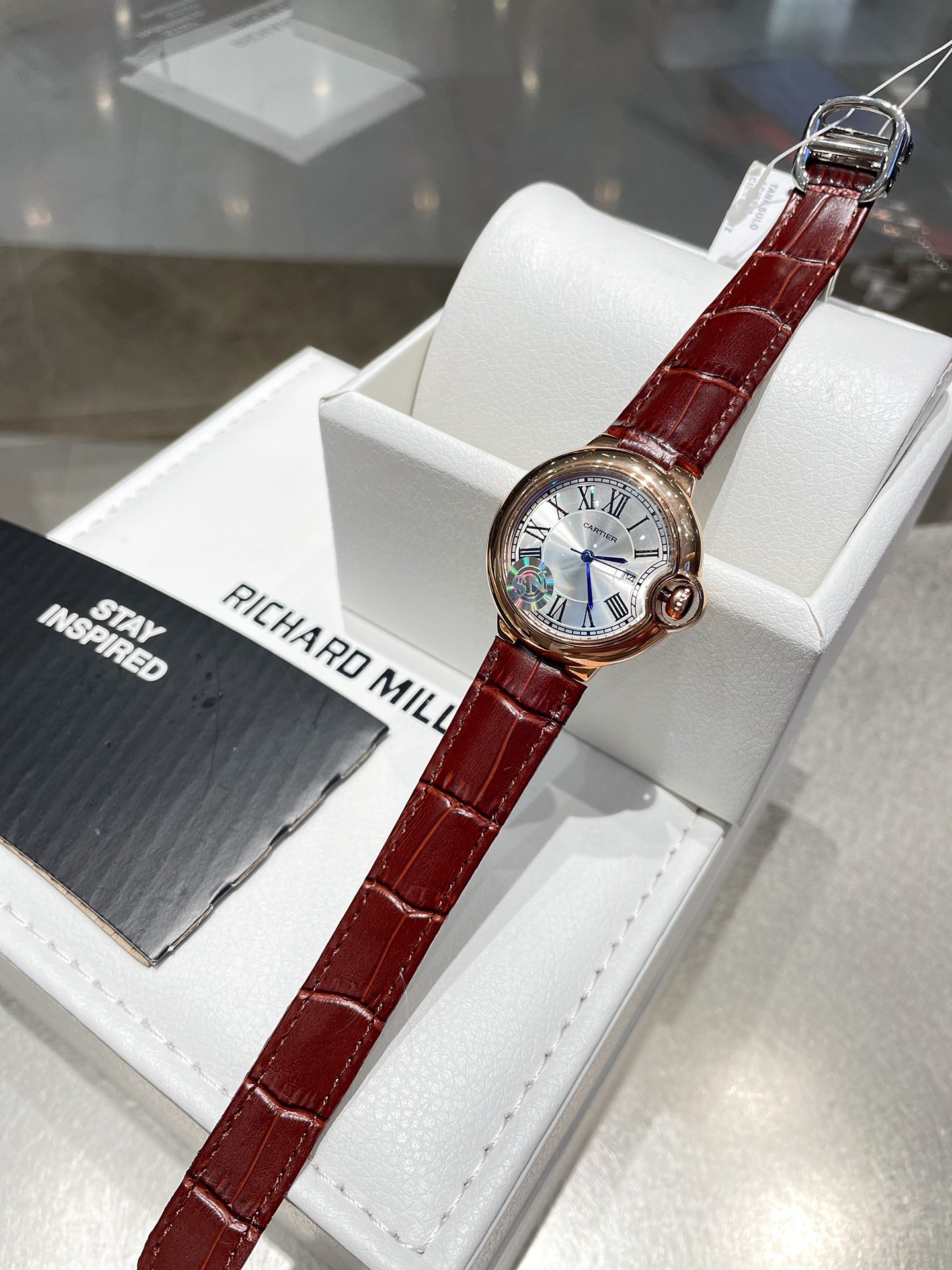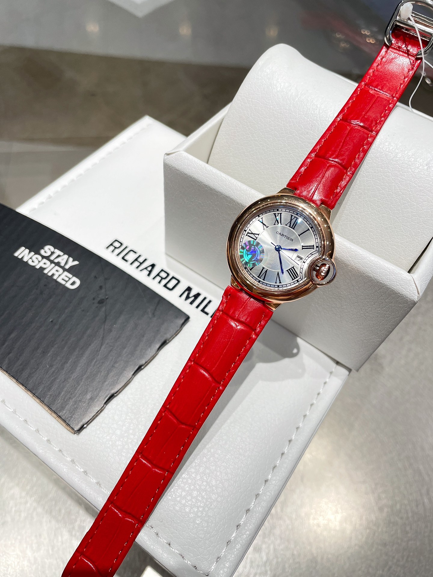 这款手表是AAAAA 1:1 质量 (非常棒). 使用了和原版一模一样的材料. 商标部分也保持了和卡地亚/Cartier一样. 图片拍摄是实物手表拍摄, 您所收到的实物保证和我们图片一模一样.