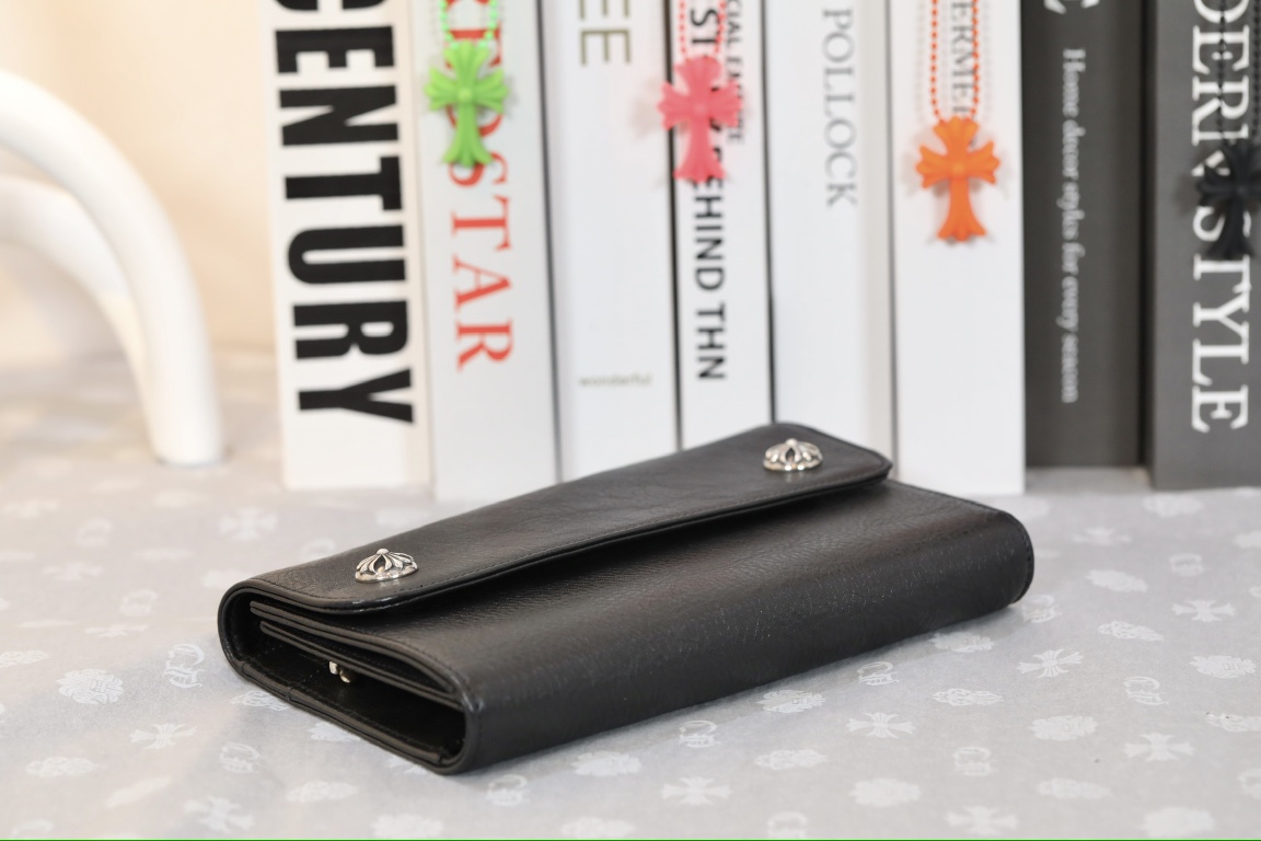 这款钱包是AAAAA 1:1 质量 (非常棒). 使用了和原版一模一样的材料. 商标部分也保持了和克罗心/Chrome Hearts一样. 图片拍摄是实物钱包拍摄, 您所收到的实物保证和我们图片一模一样.