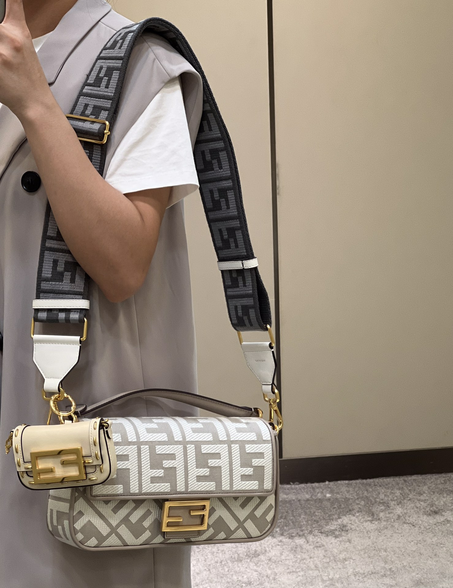 这款包包是AAAAA 1:1 质量 (非常棒). 使用了和原版一模一样的材料. 商标部分也保持了和芬迪/Fendi一样. 图片拍摄是实物包包拍摄, 您所收到的实物保证和我们图片一模一样.