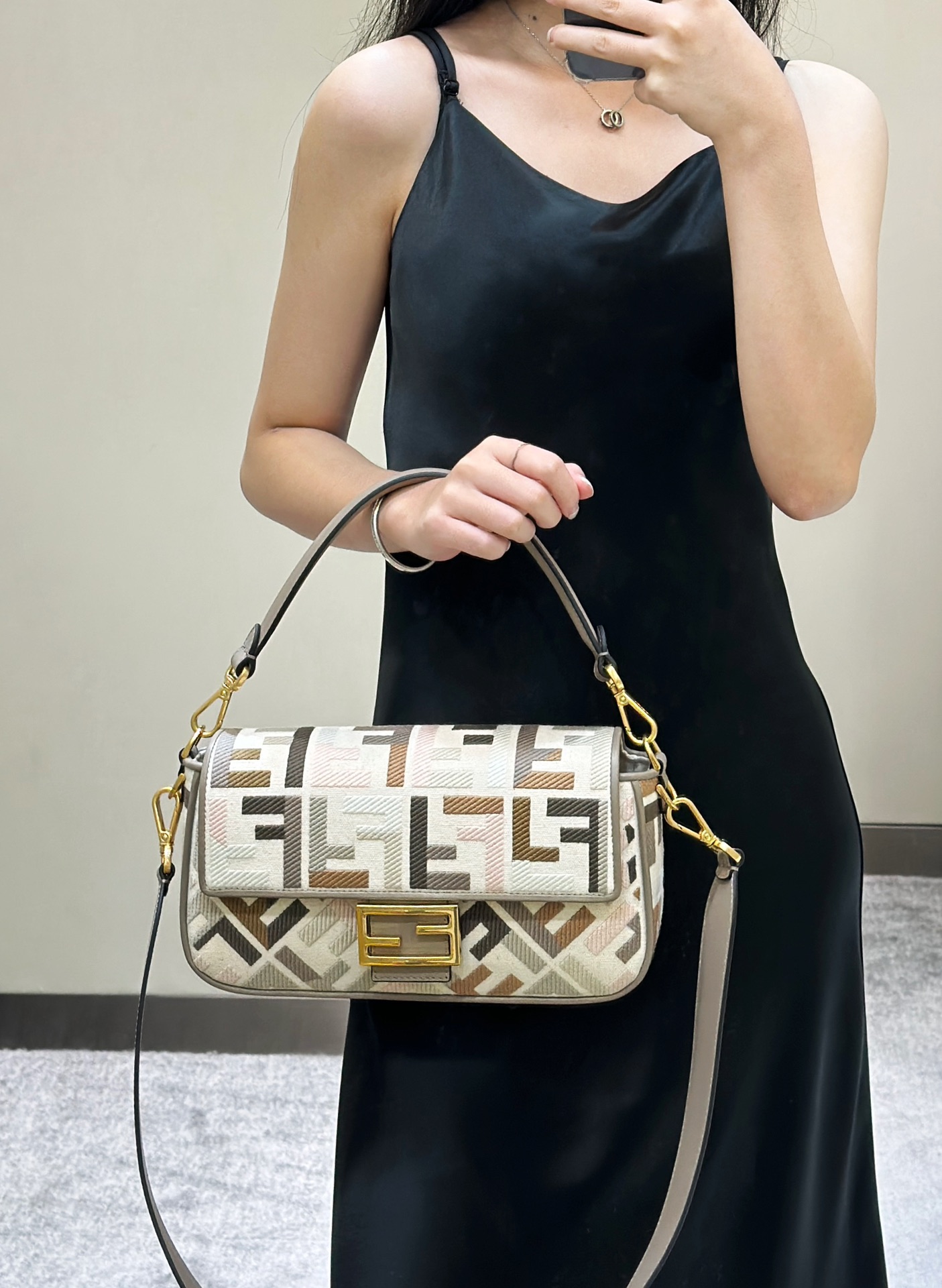 这款包包是AAAAA 1:1 质量 (非常棒). 使用了和原版一模一样的材料. 商标部分也保持了和芬迪/Fendi一样. 图片拍摄是实物包包拍摄, 您所收到的实物保证和我们图片一模一样.
