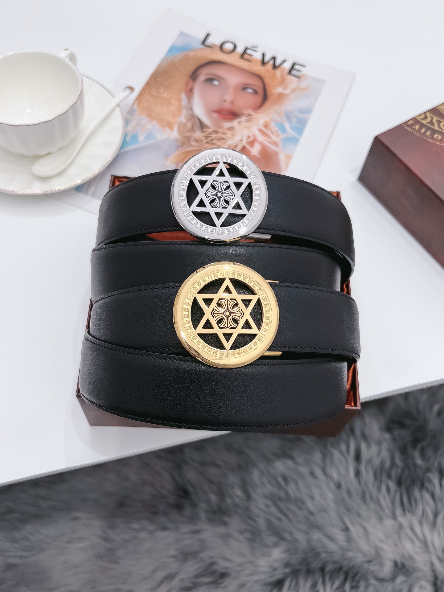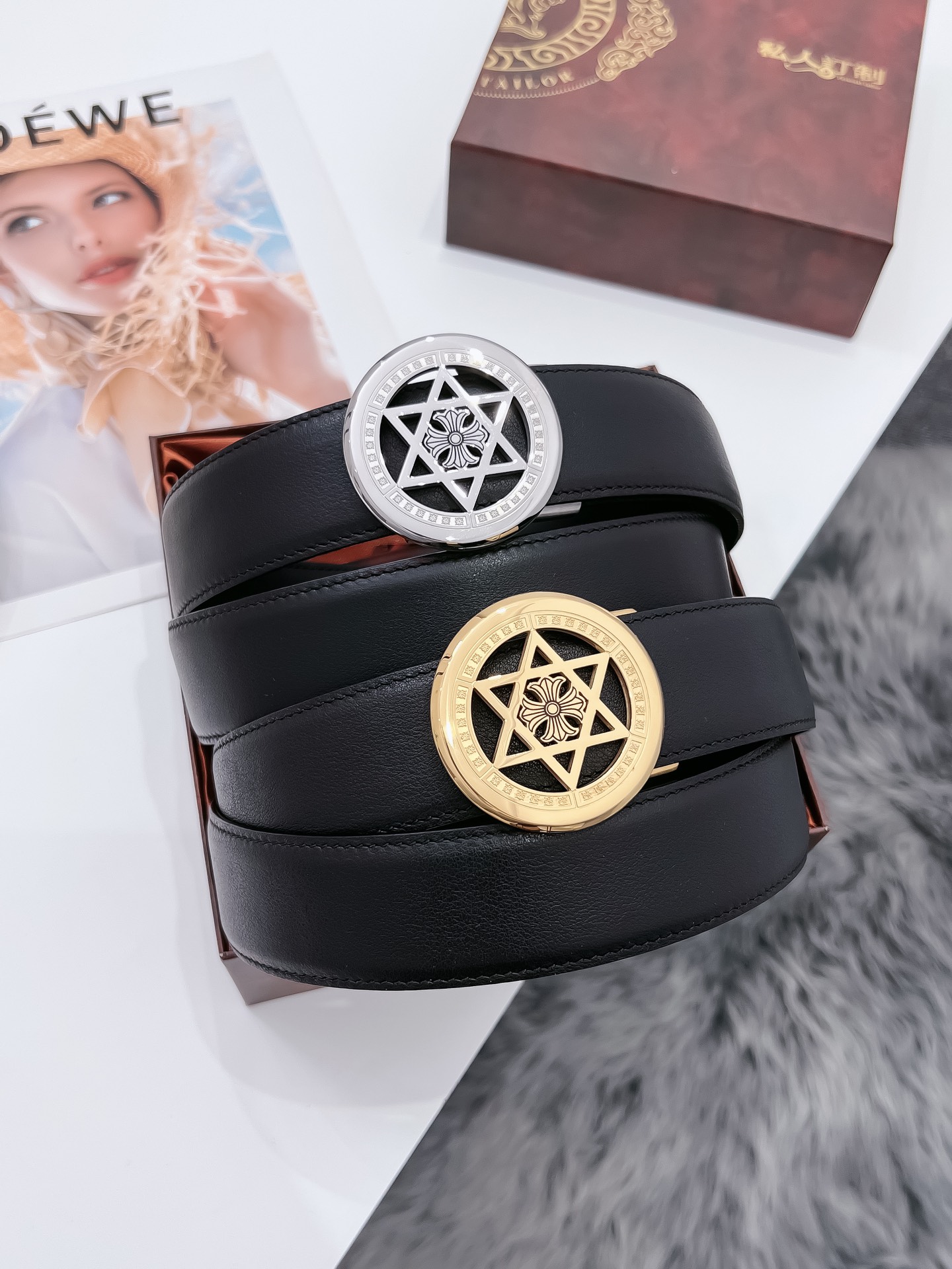 这款皮带是AAAAA 1:1 质量 (非常棒). 使用了和原版一模一样的材料. 商标部分也保持了和克罗心/Chrome Hearts一样. 图片拍摄是实物皮带拍摄, 您所收到的实物保证和我们图片一模一样.