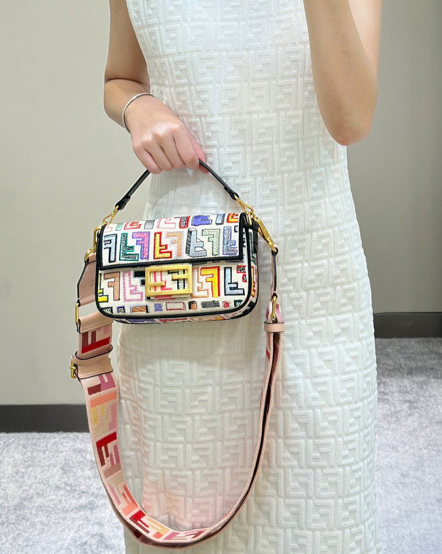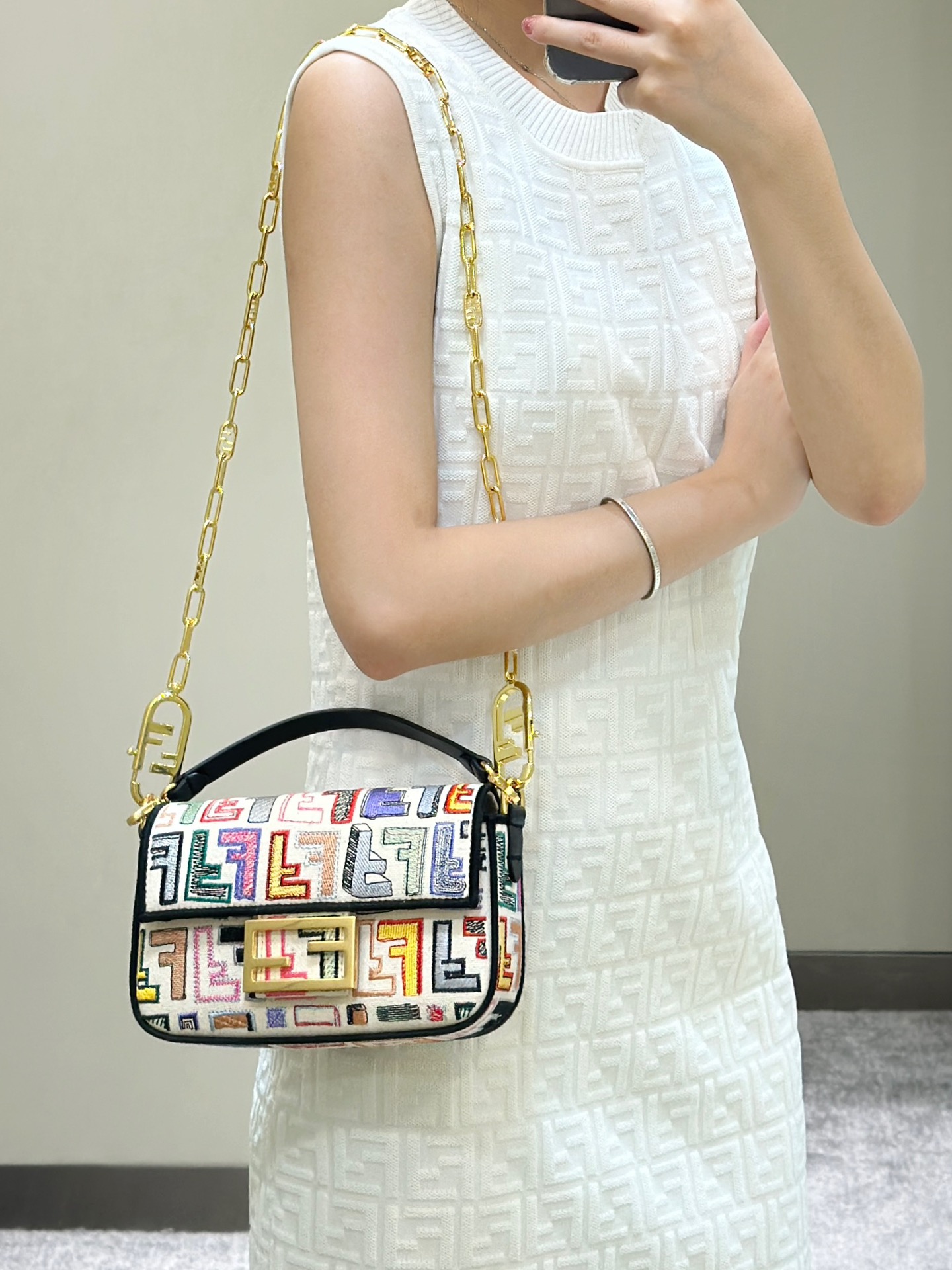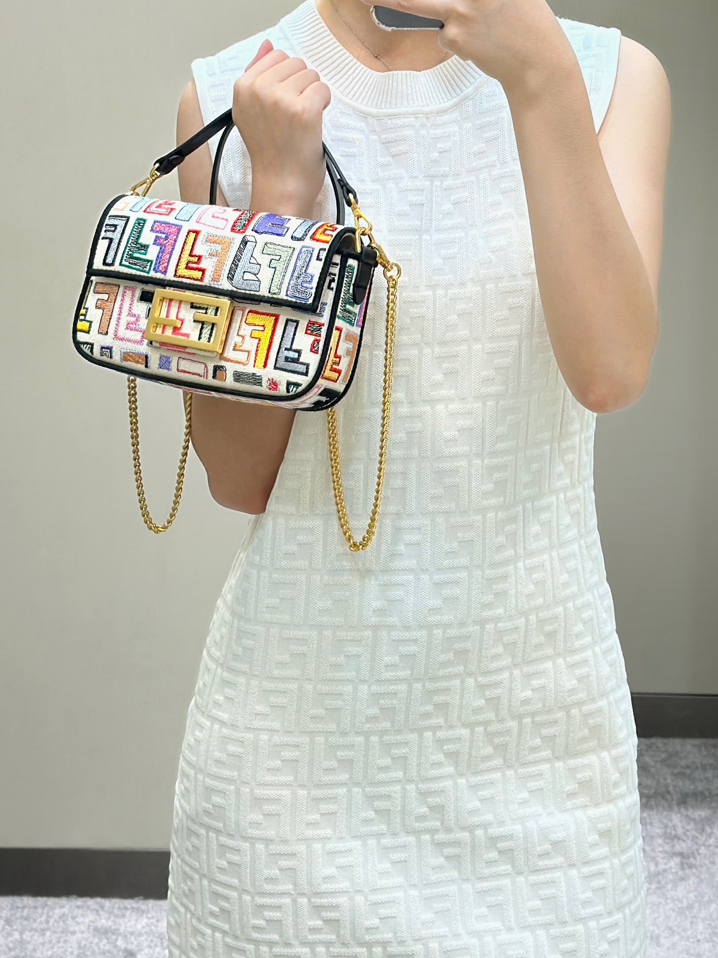 这款包包是AAAAA 1:1 质量 (非常棒). 使用了和原版一模一样的材料. 商标部分也保持了和芬迪/Fendi一样. 图片拍摄是实物包包拍摄, 您所收到的实物保证和我们图片一模一样.
