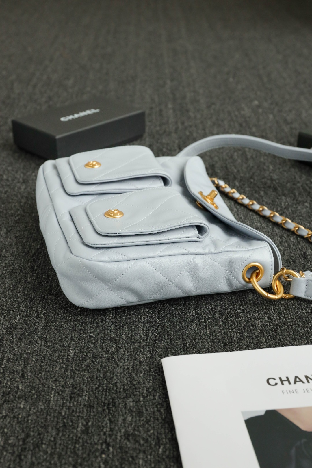 这款包包是AAAAA 1:1 质量 (非常棒). 使用了和原版一模一样的材料. 商标部分也保持了和香奈儿/Chanel一样. 图片拍摄是实物包包拍摄, 您所收到的实物保证和我们图片一模一样.
