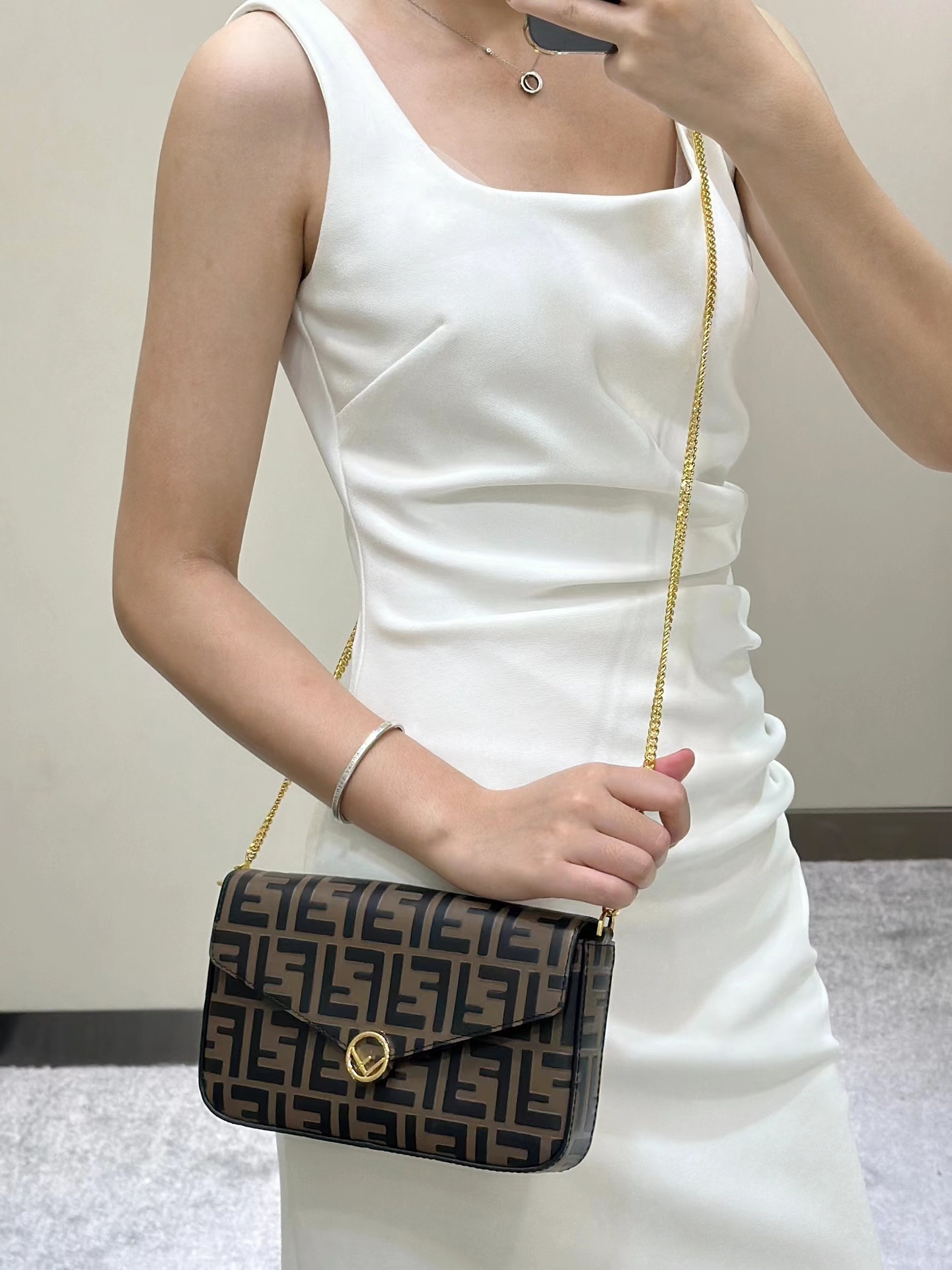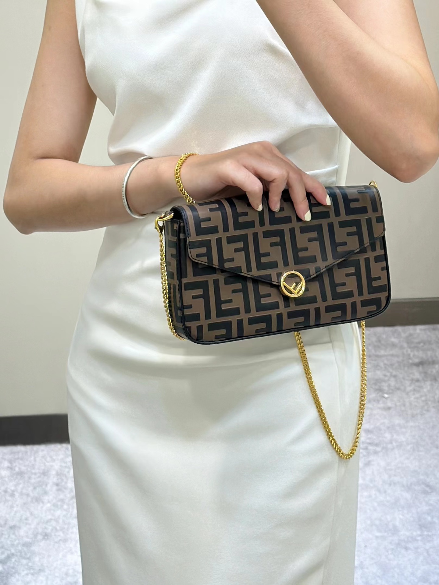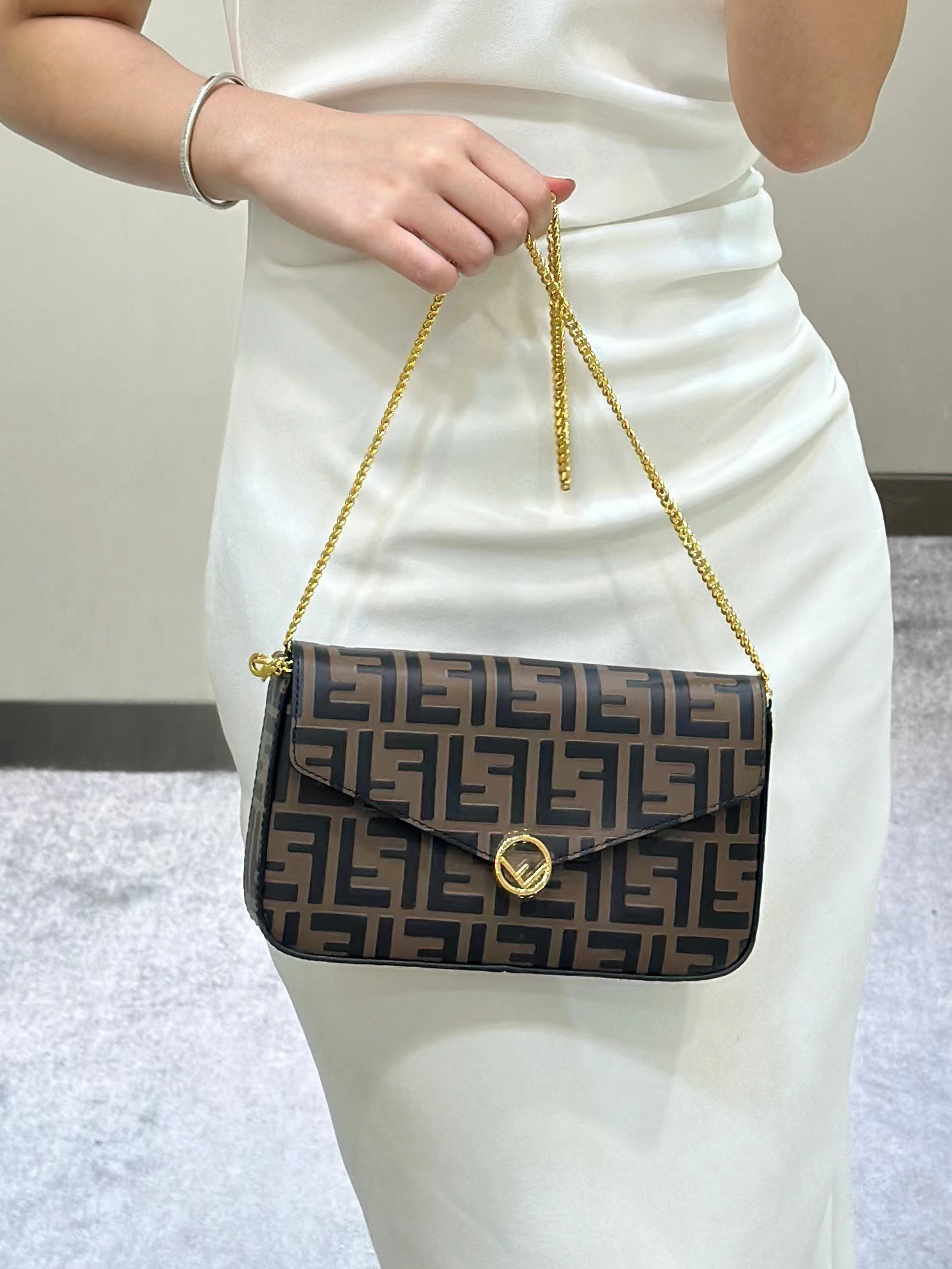 这款包包是AAAAA 1:1 质量 (非常棒). 使用了和原版一模一样的材料. 商标部分也保持了和芬迪/Fendi一样. 图片拍摄是实物包包拍摄, 您所收到的实物保证和我们图片一模一样.