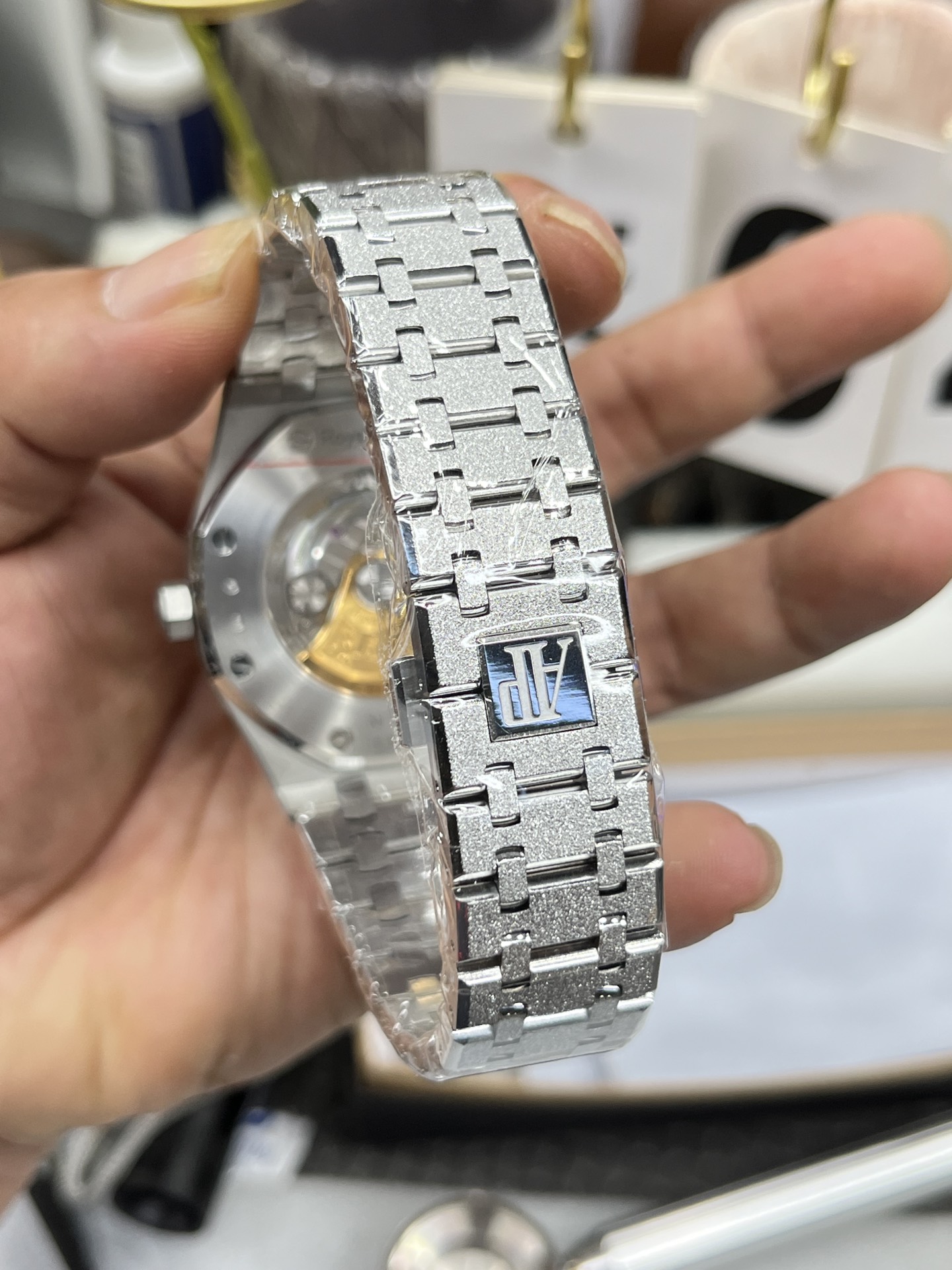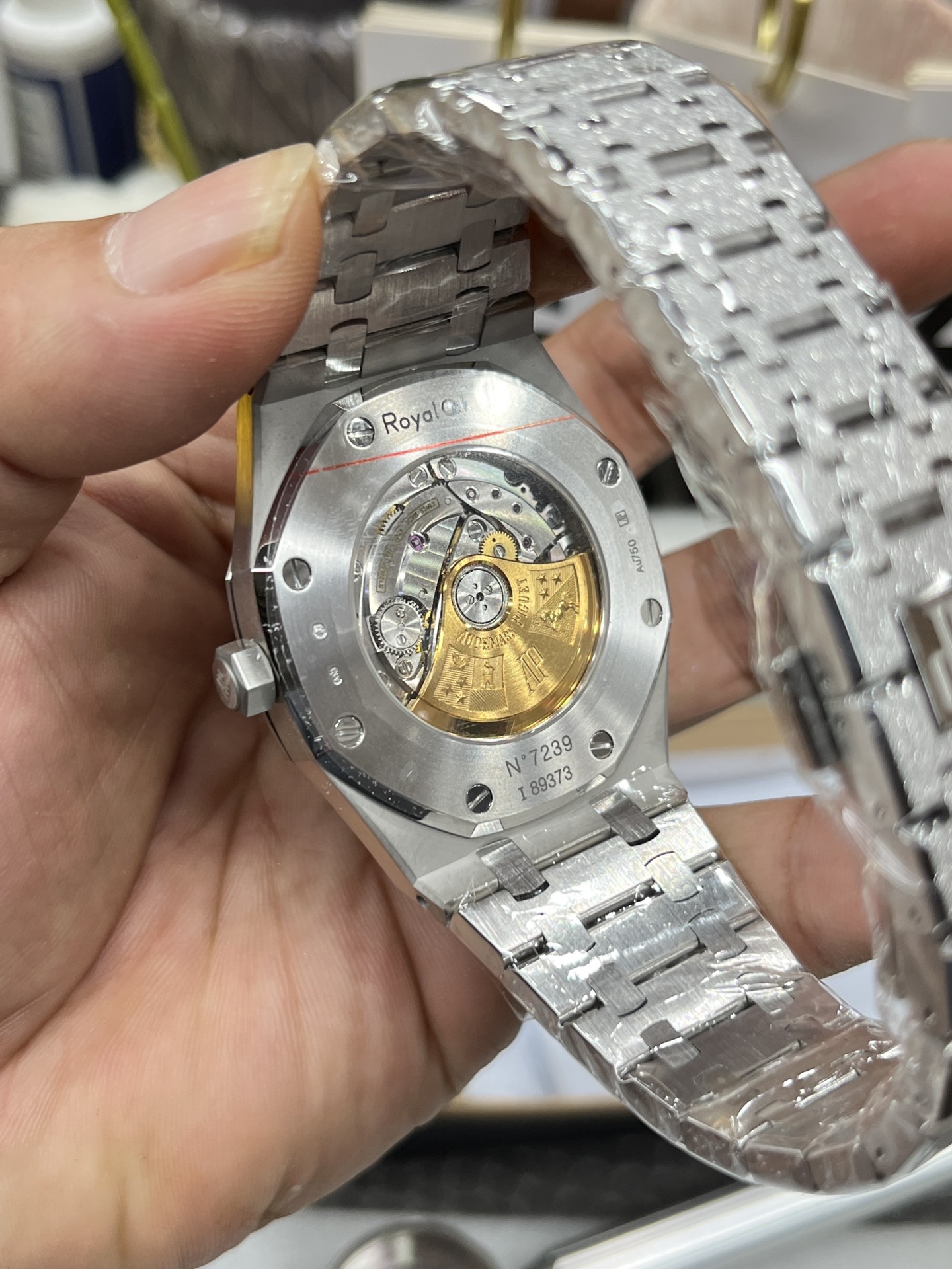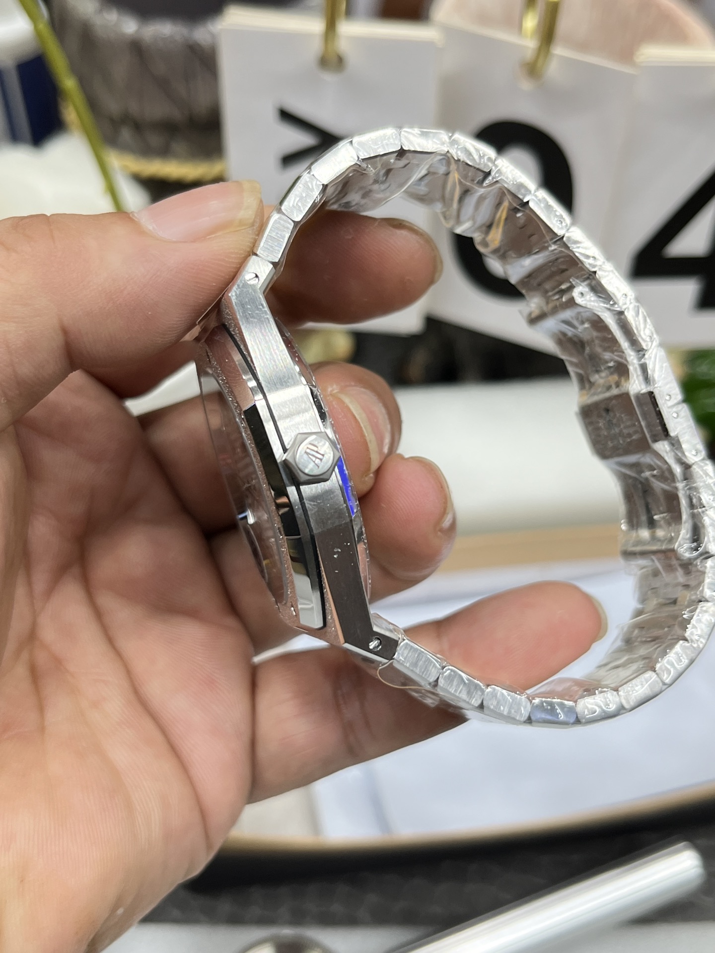 这款手表是AAAAA 1:1 质量 (非常棒). 使用了和原版一模一样的材料. 商标部分也保持了和爱彼/Audemars Piguet一样. 图片拍摄是实物手表拍摄, 您所收到的实物保证和我们图片一模一样.