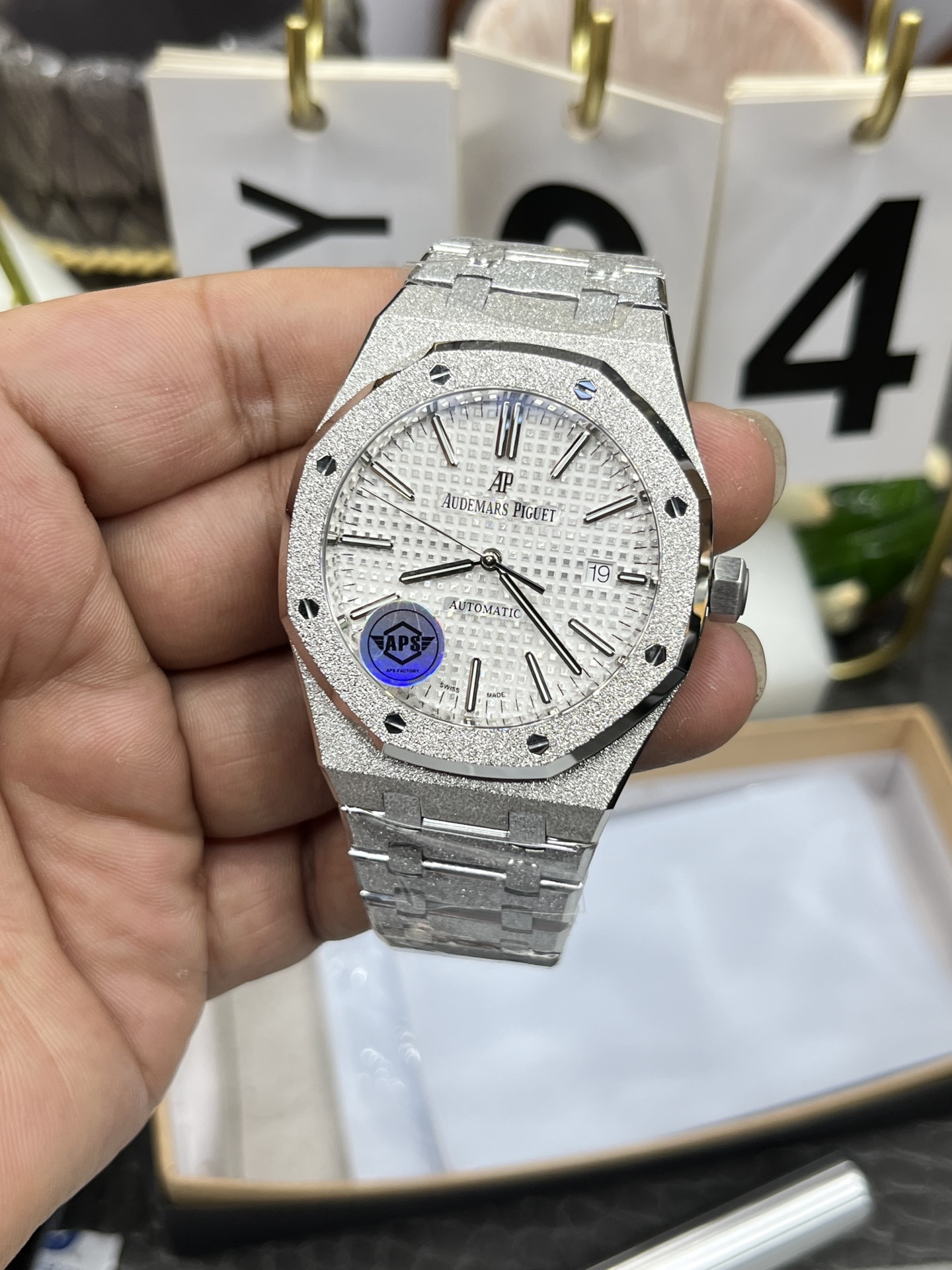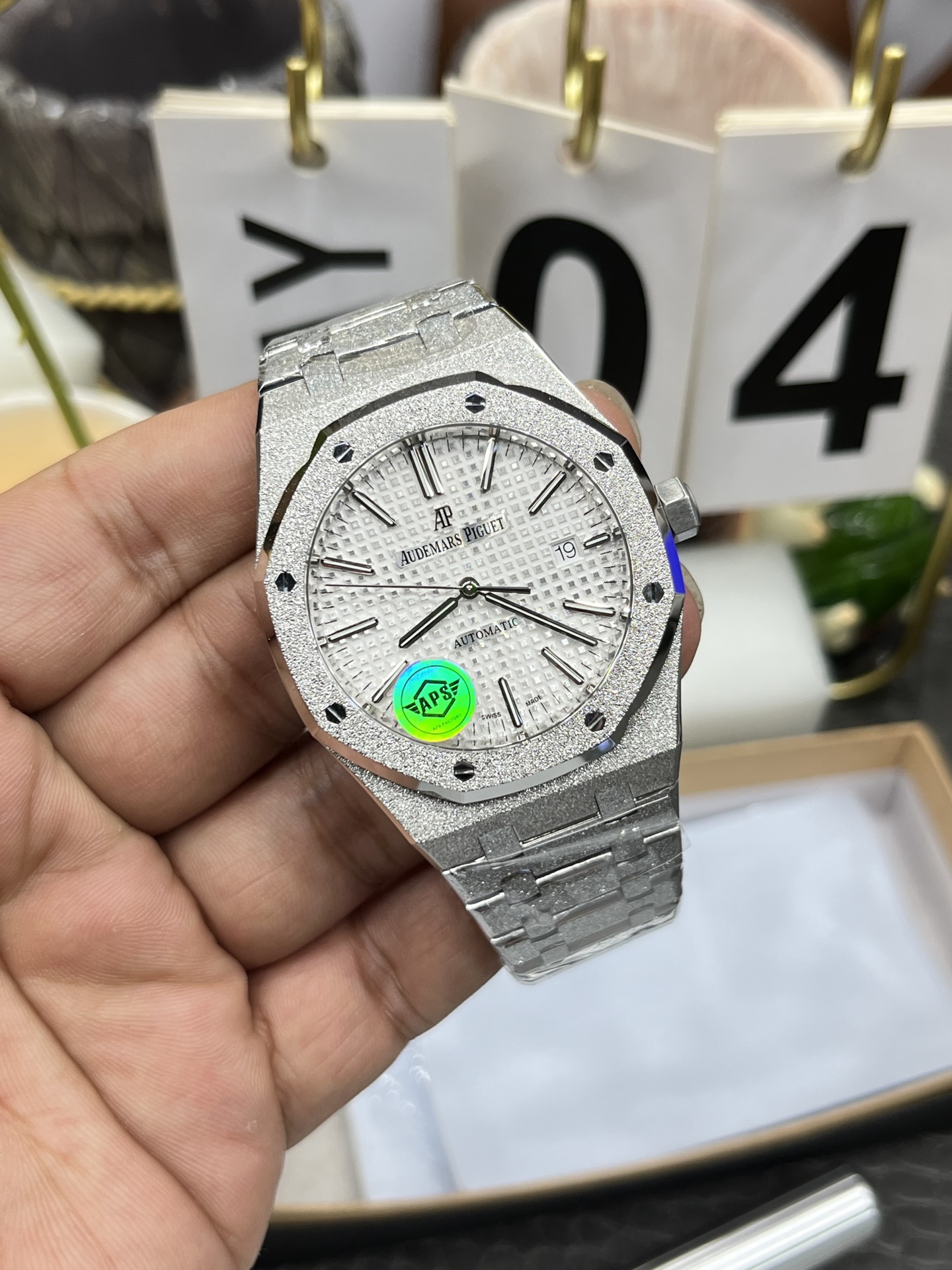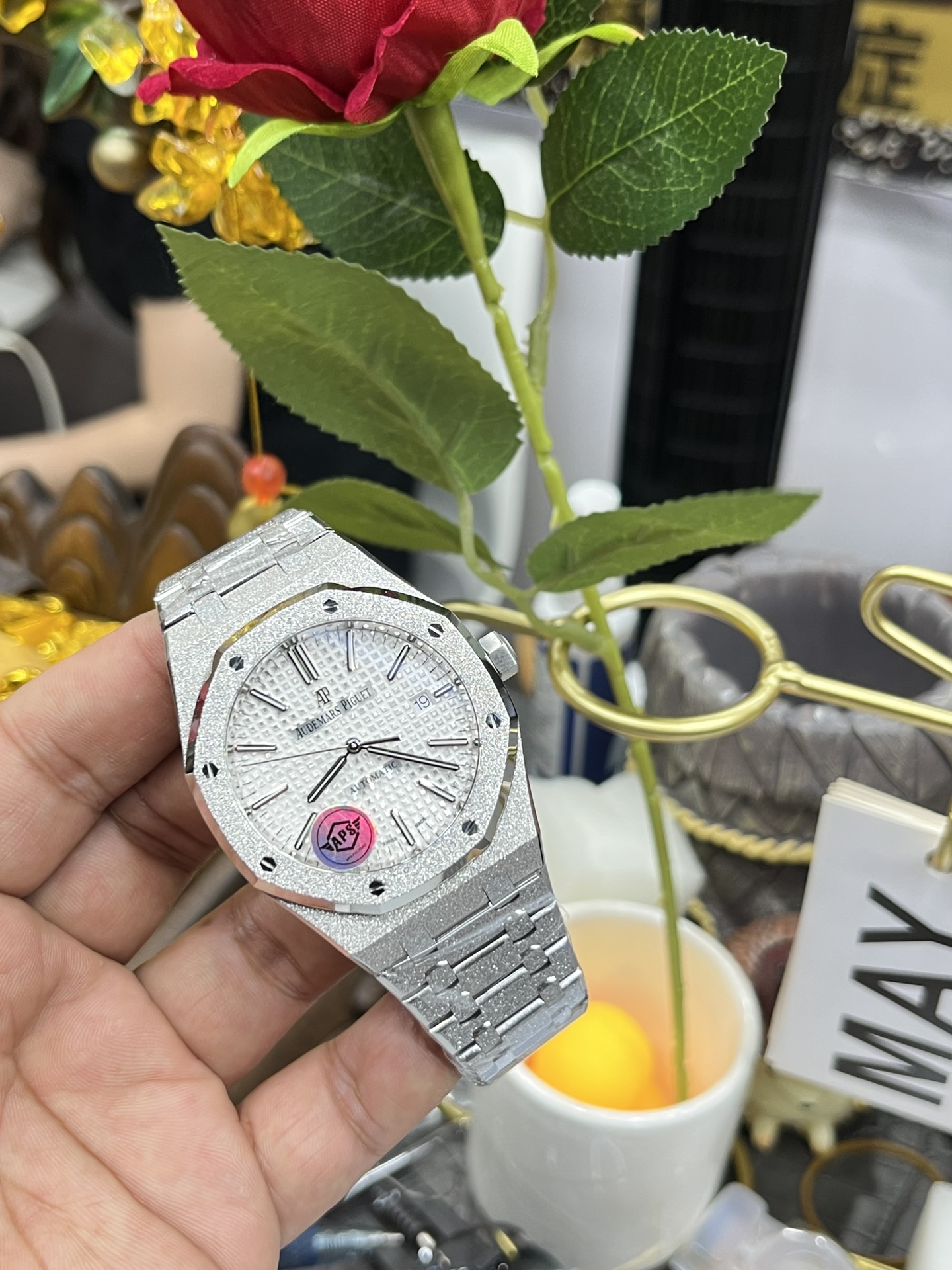 这款手表是AAAAA 1:1 质量 (非常棒). 使用了和原版一模一样的材料. 商标部分也保持了和爱彼/Audemars Piguet一样. 图片拍摄是实物手表拍摄, 您所收到的实物保证和我们图片一模一样.